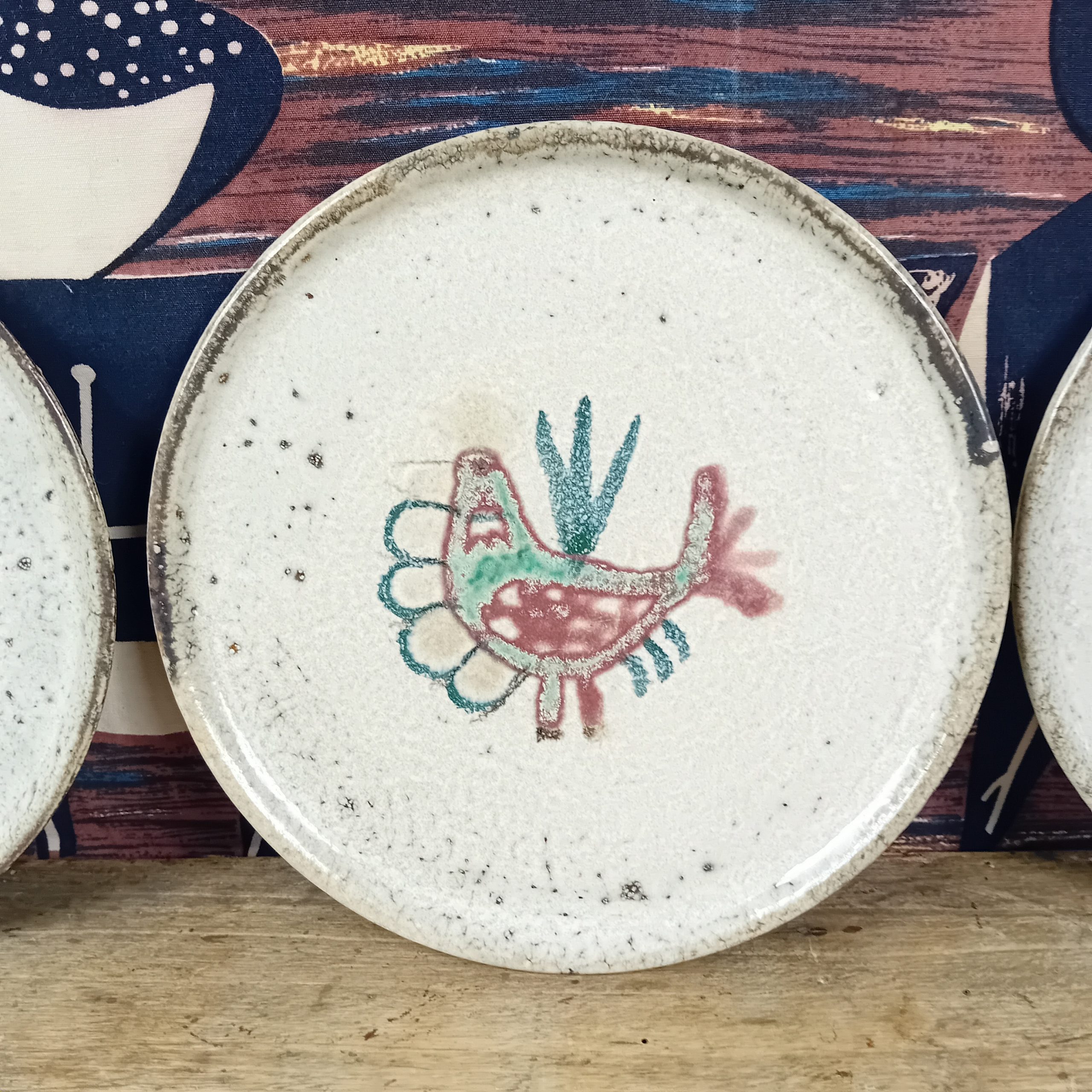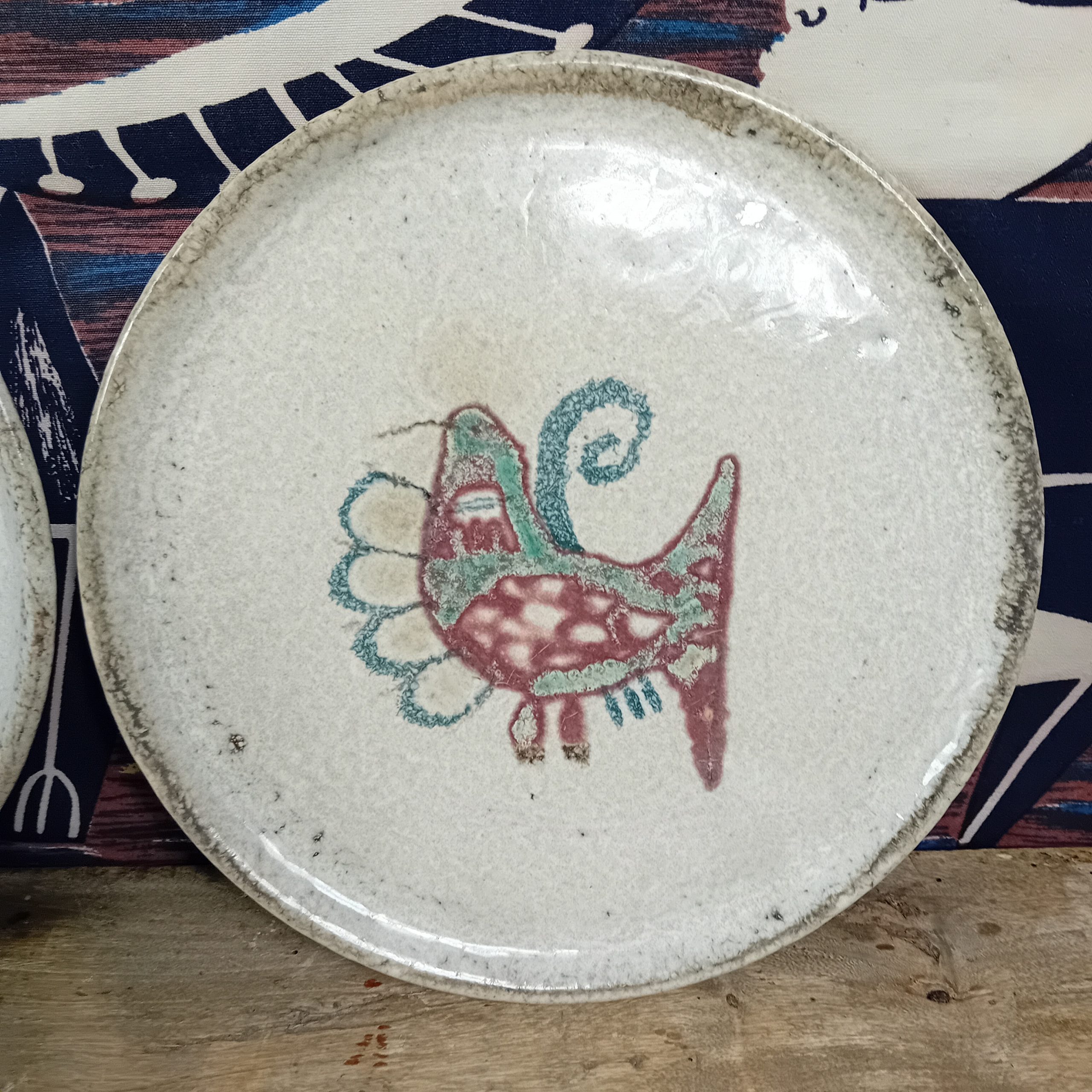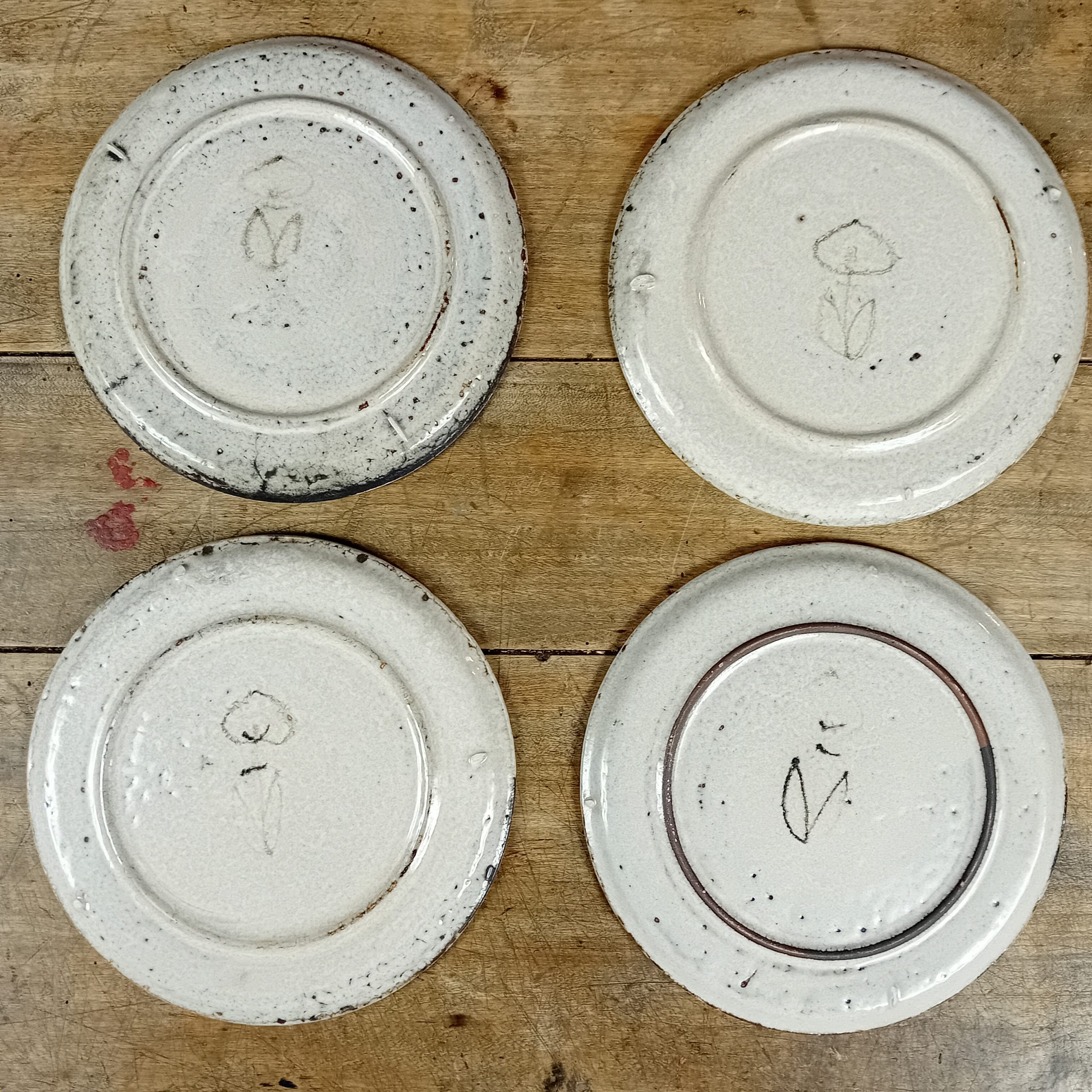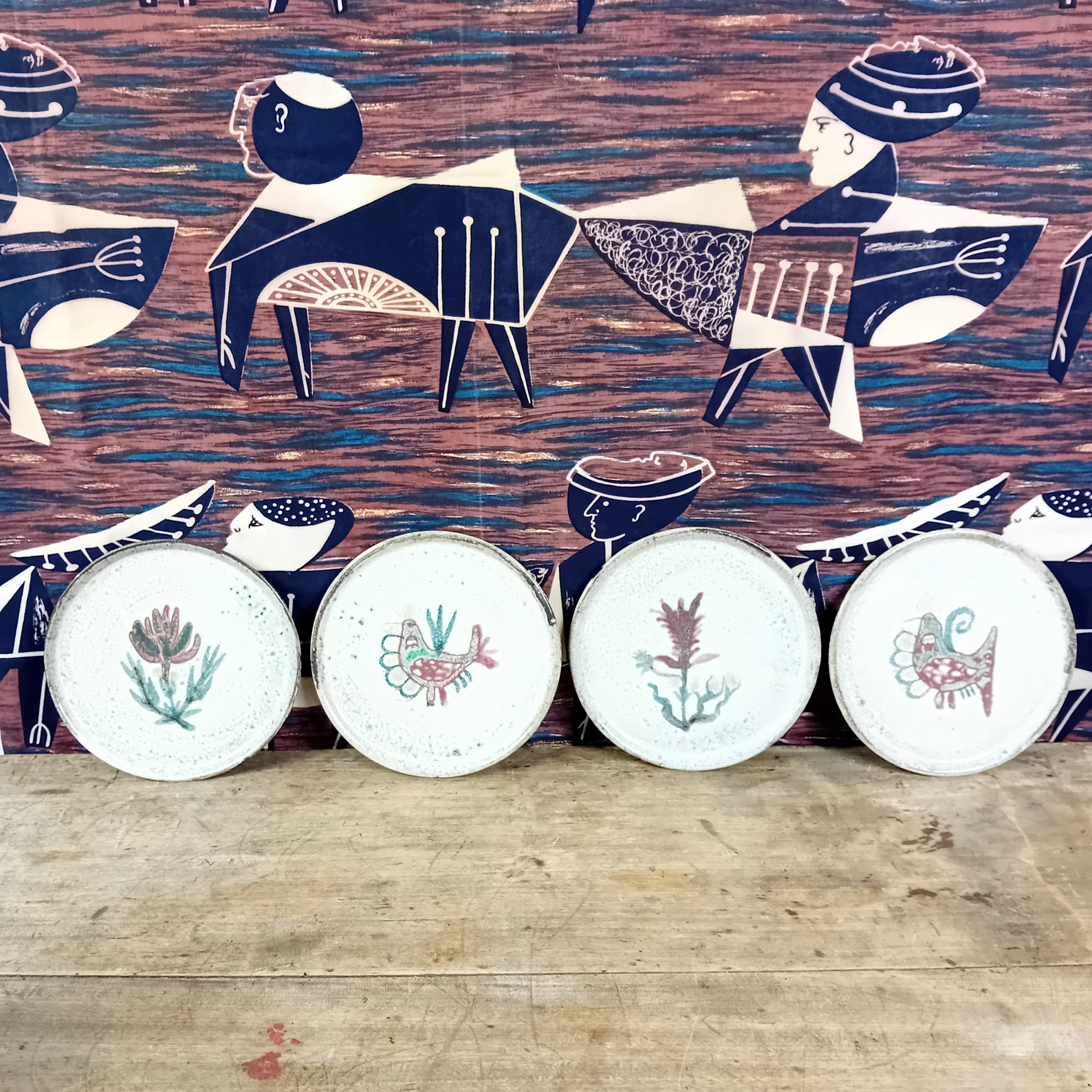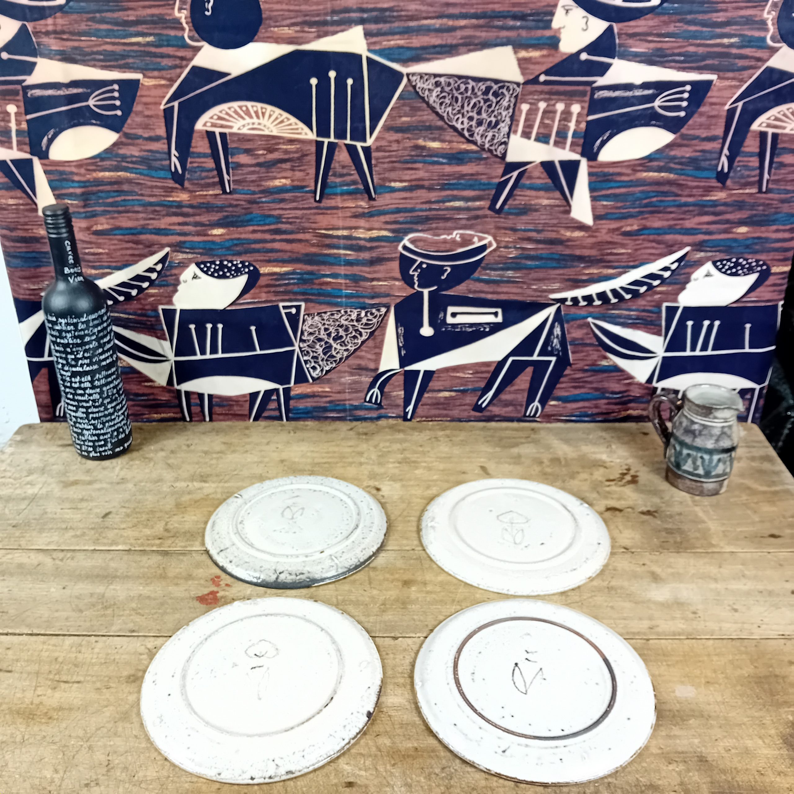 Un ensemble de 4 assiettes Atelier Le Murier à Vallauris, fondée par Micheline et Gustave Raynaud en 1955.