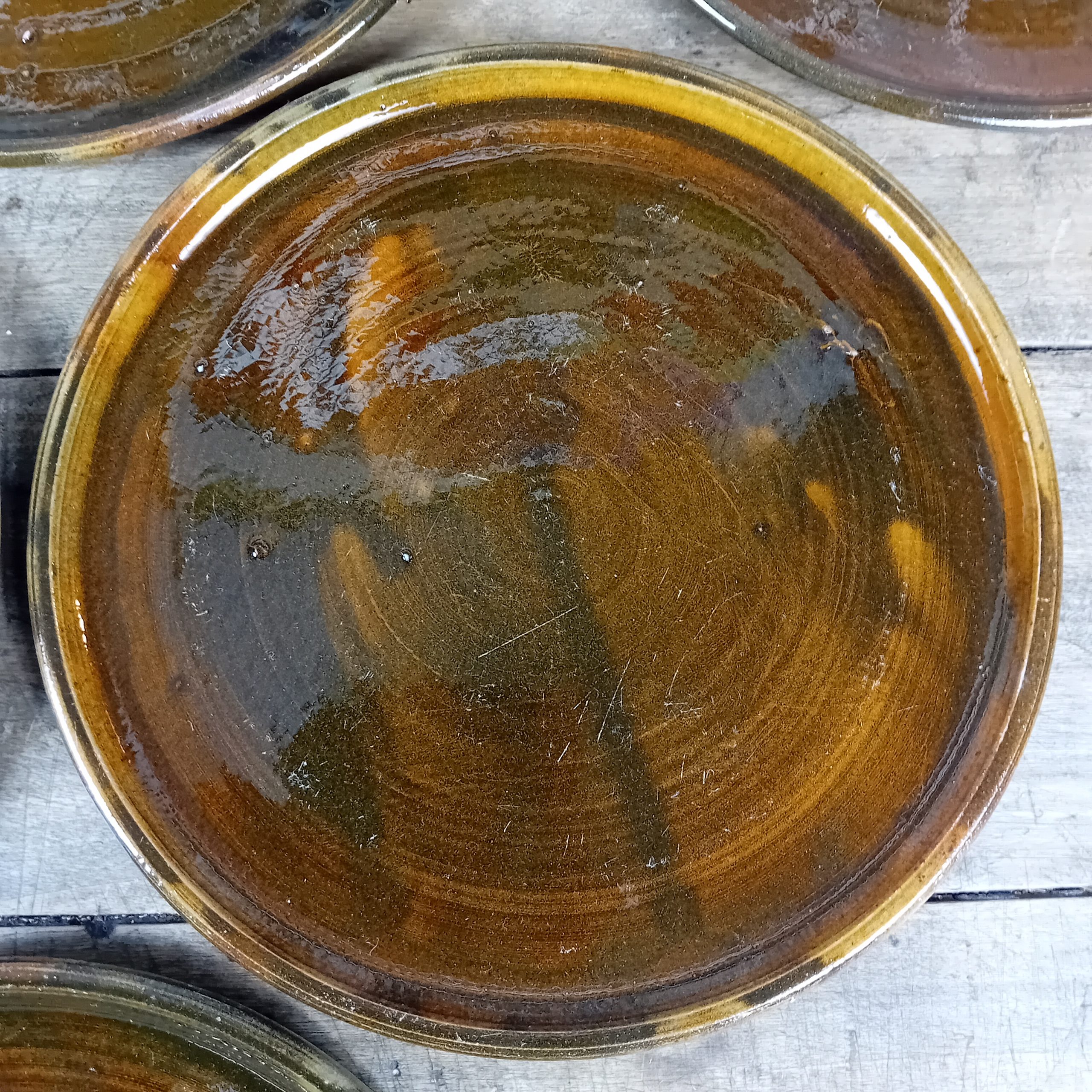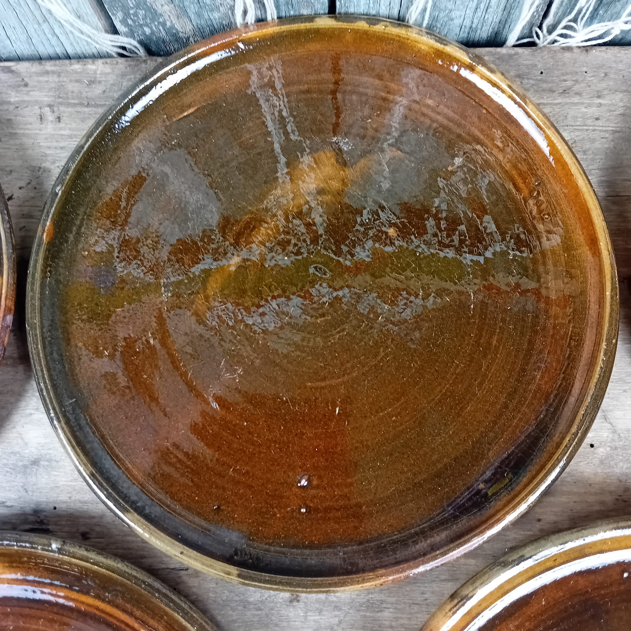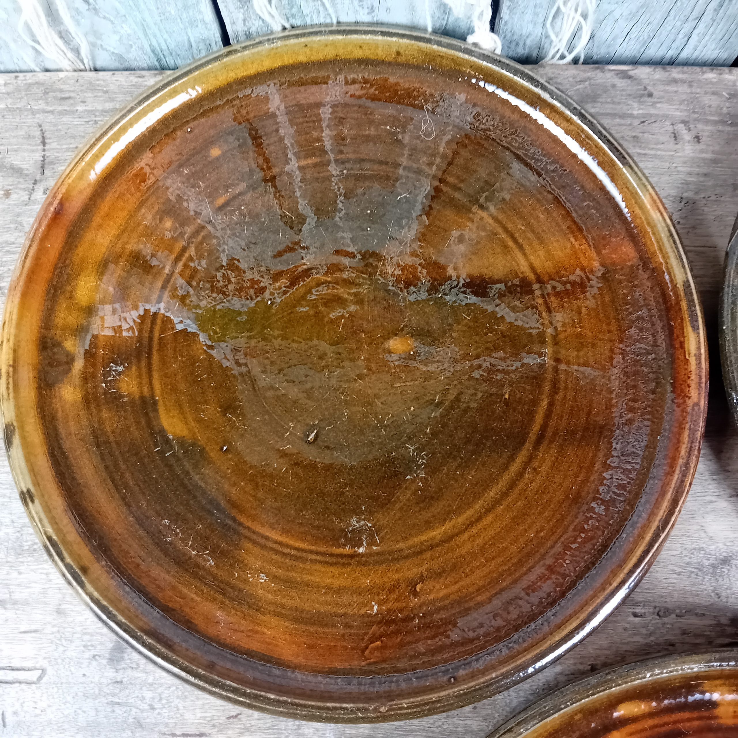 Superbes couleurs du vert au brun en nuances sur une poterie brute et imparfaite. Beaucoup de cachet.