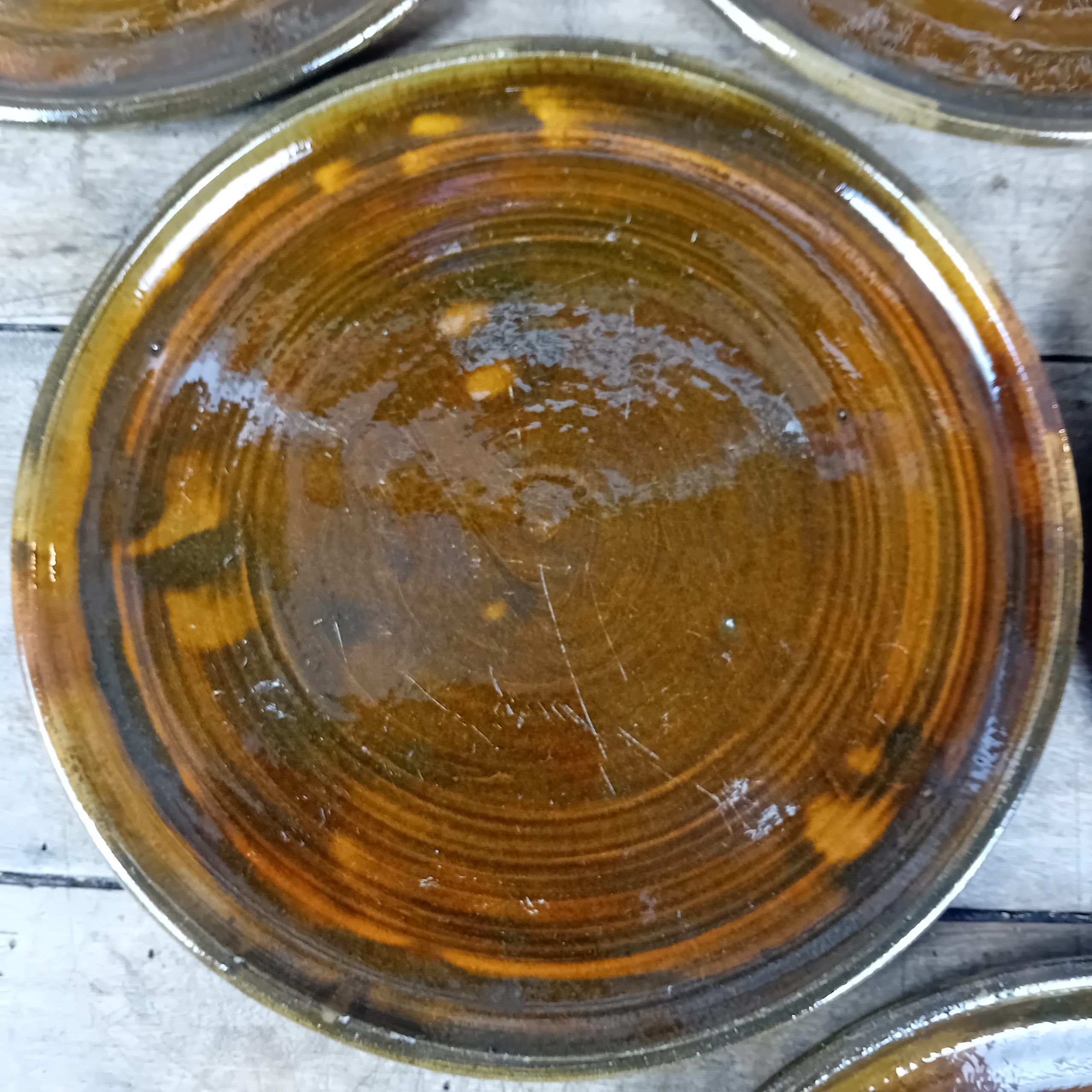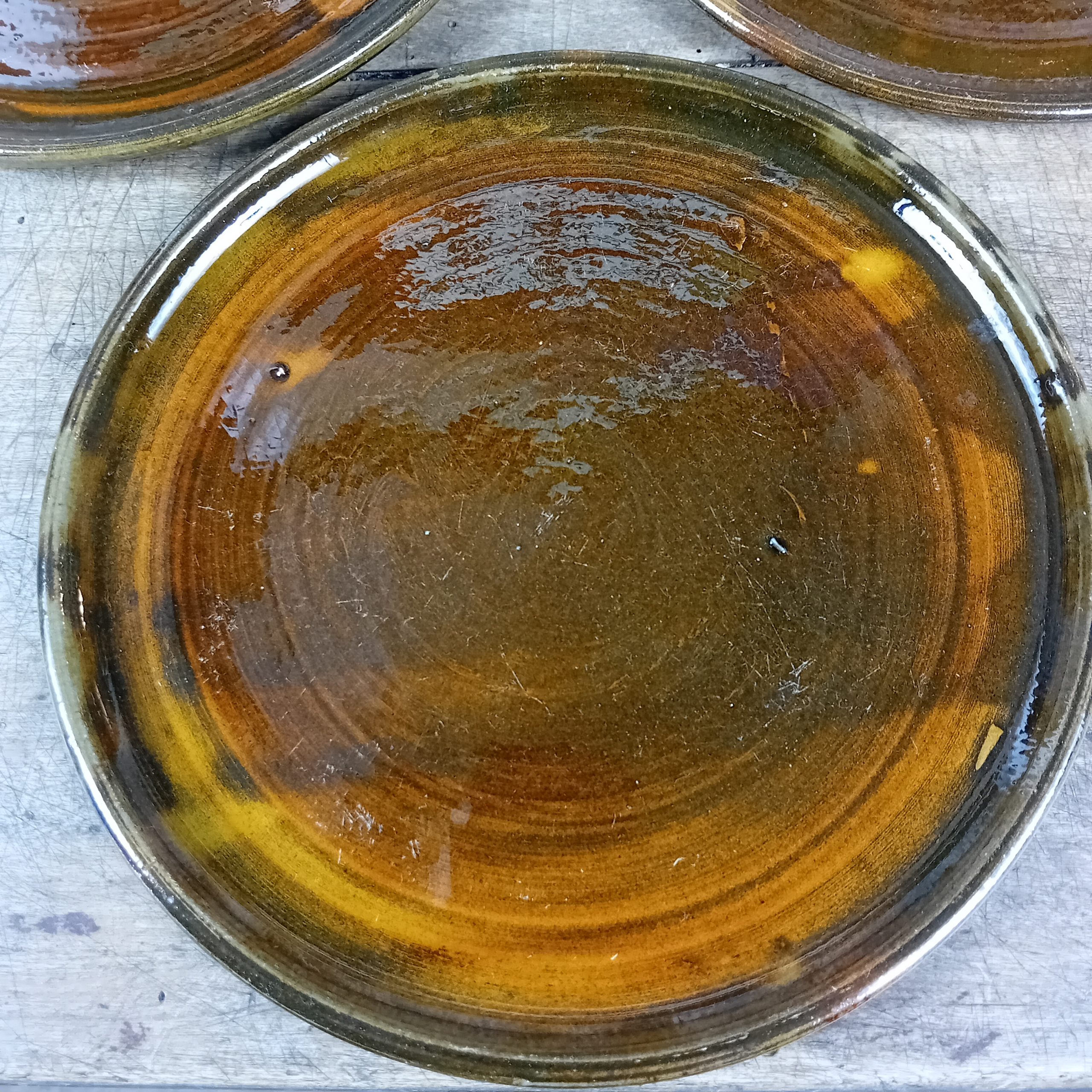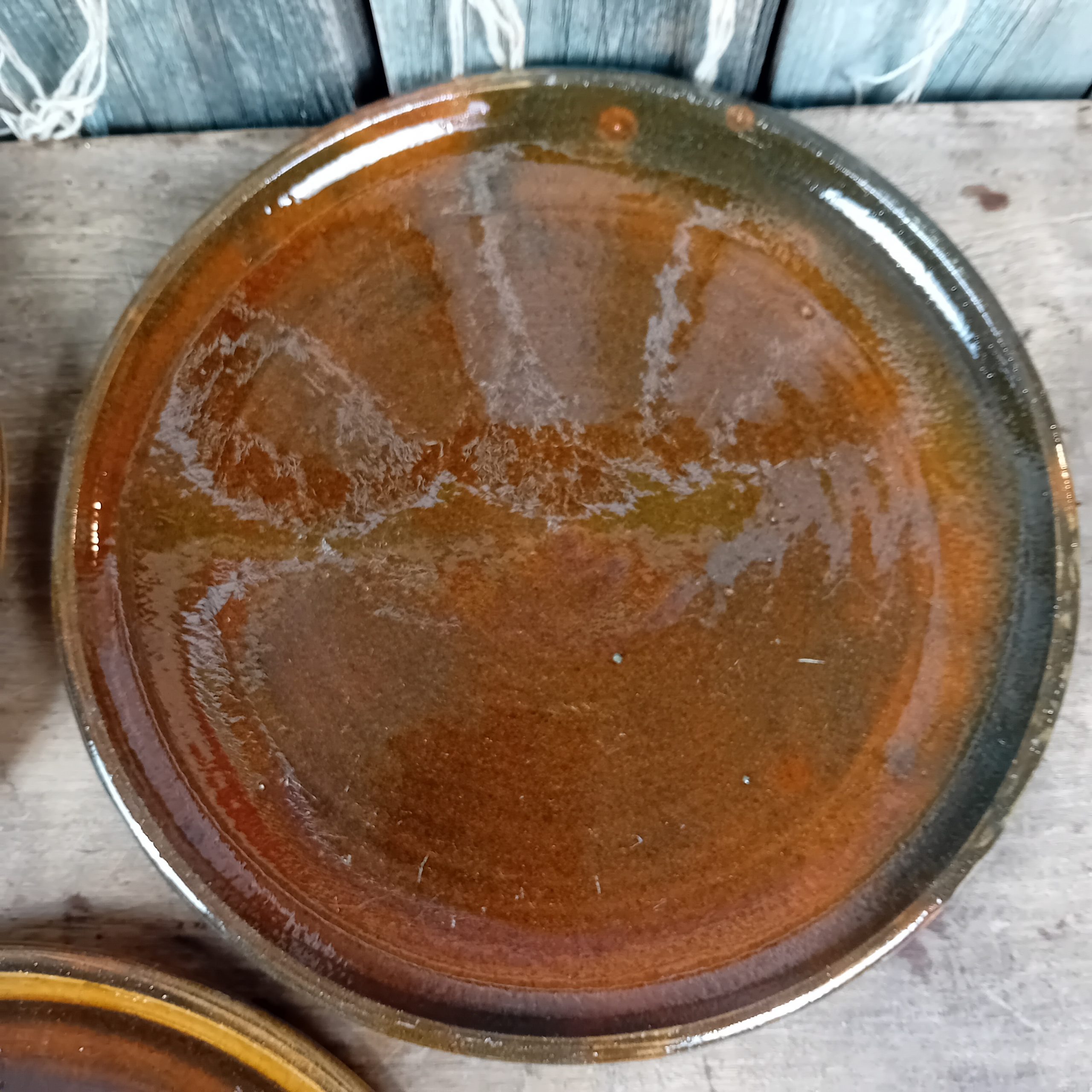 Superbes couleurs du vert au brun en nuances sur une poterie brute et imparfaite. Beaucoup de cachet.