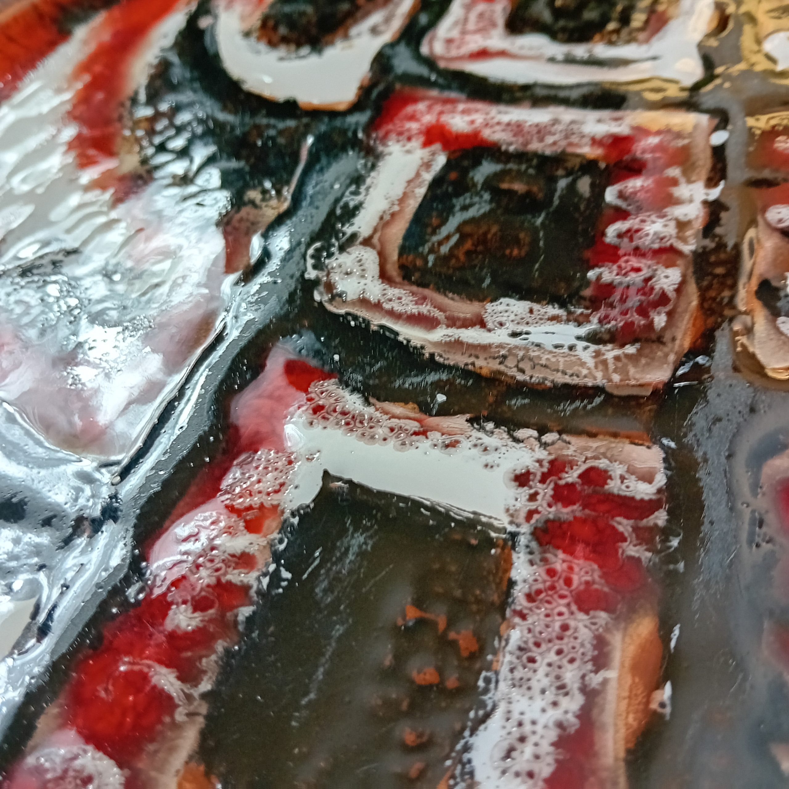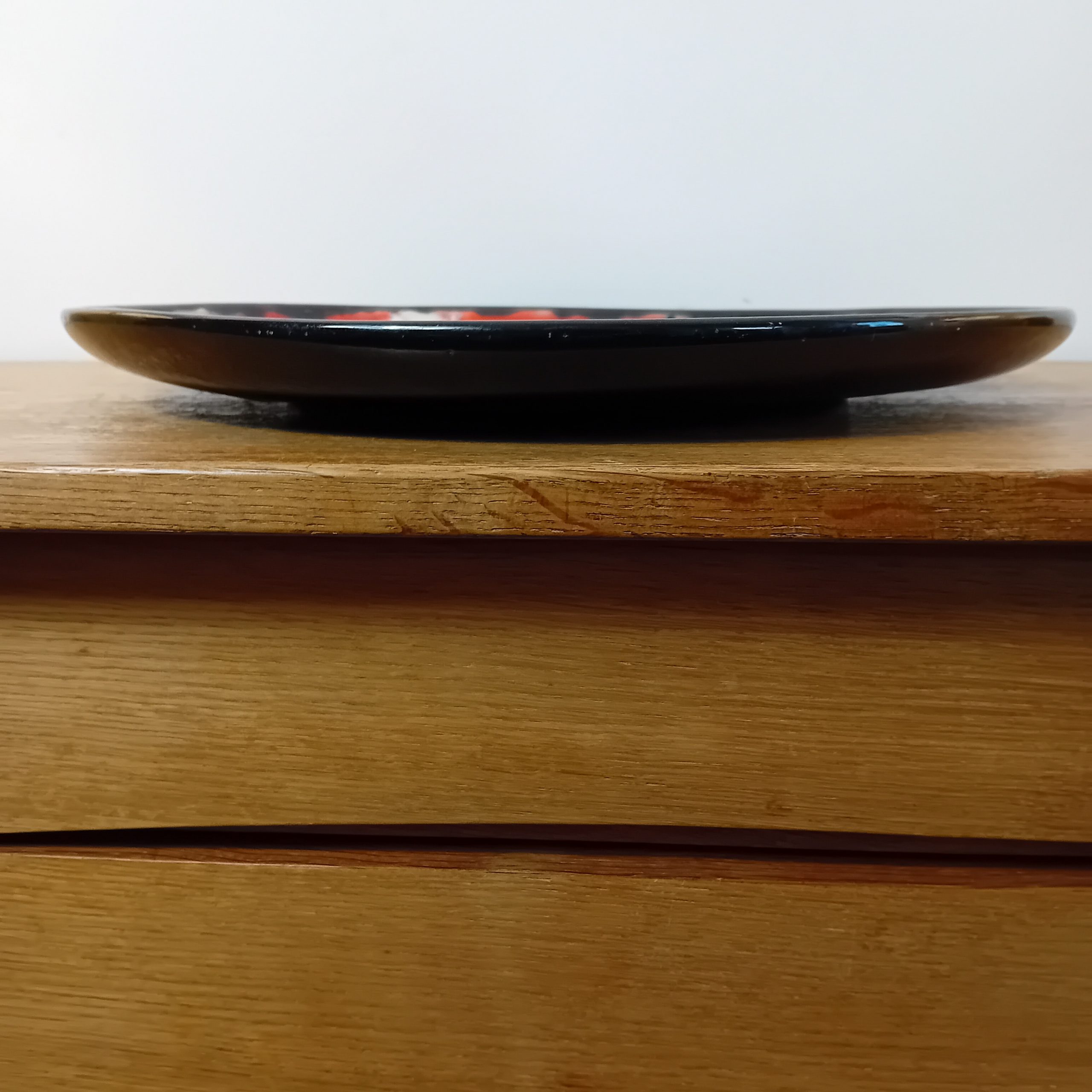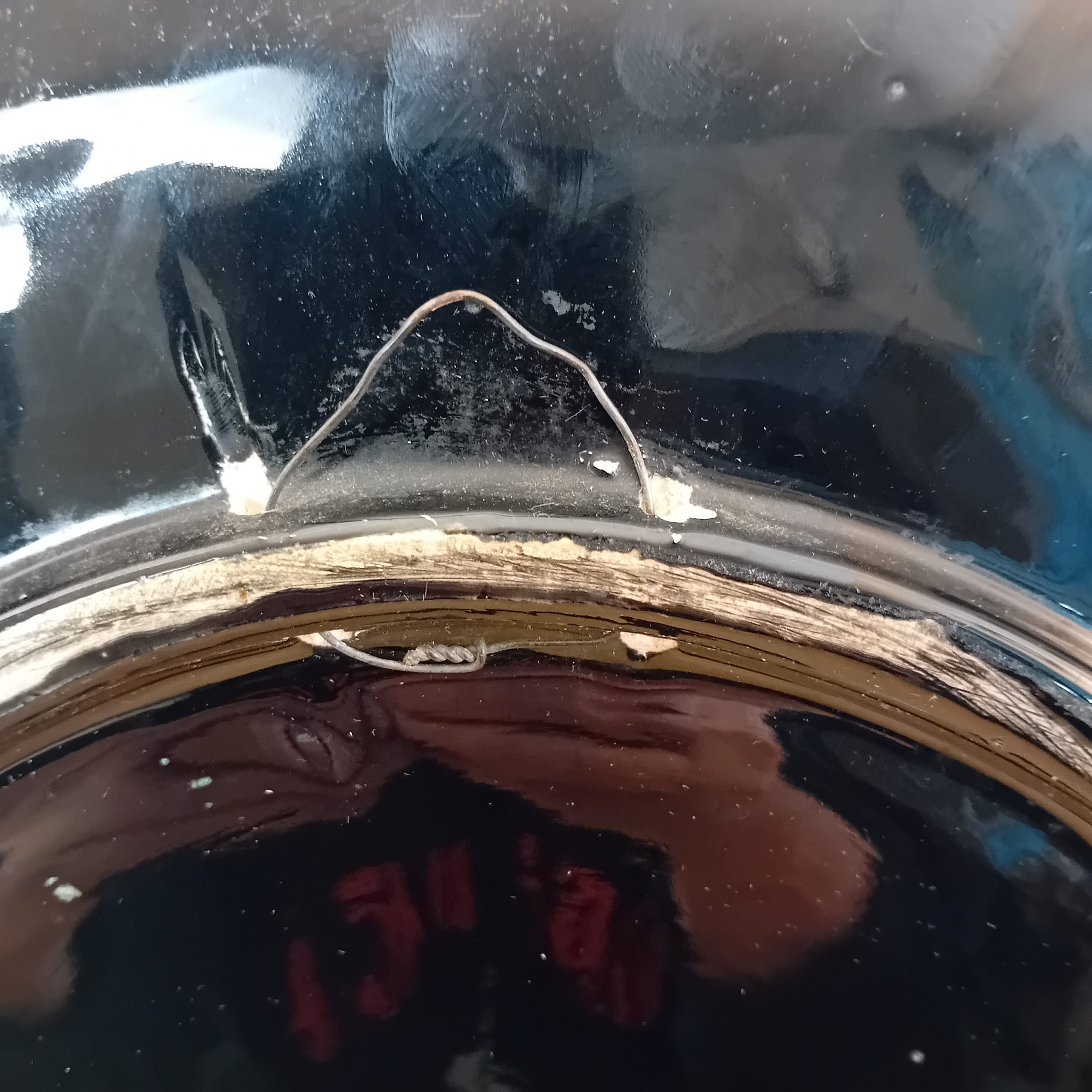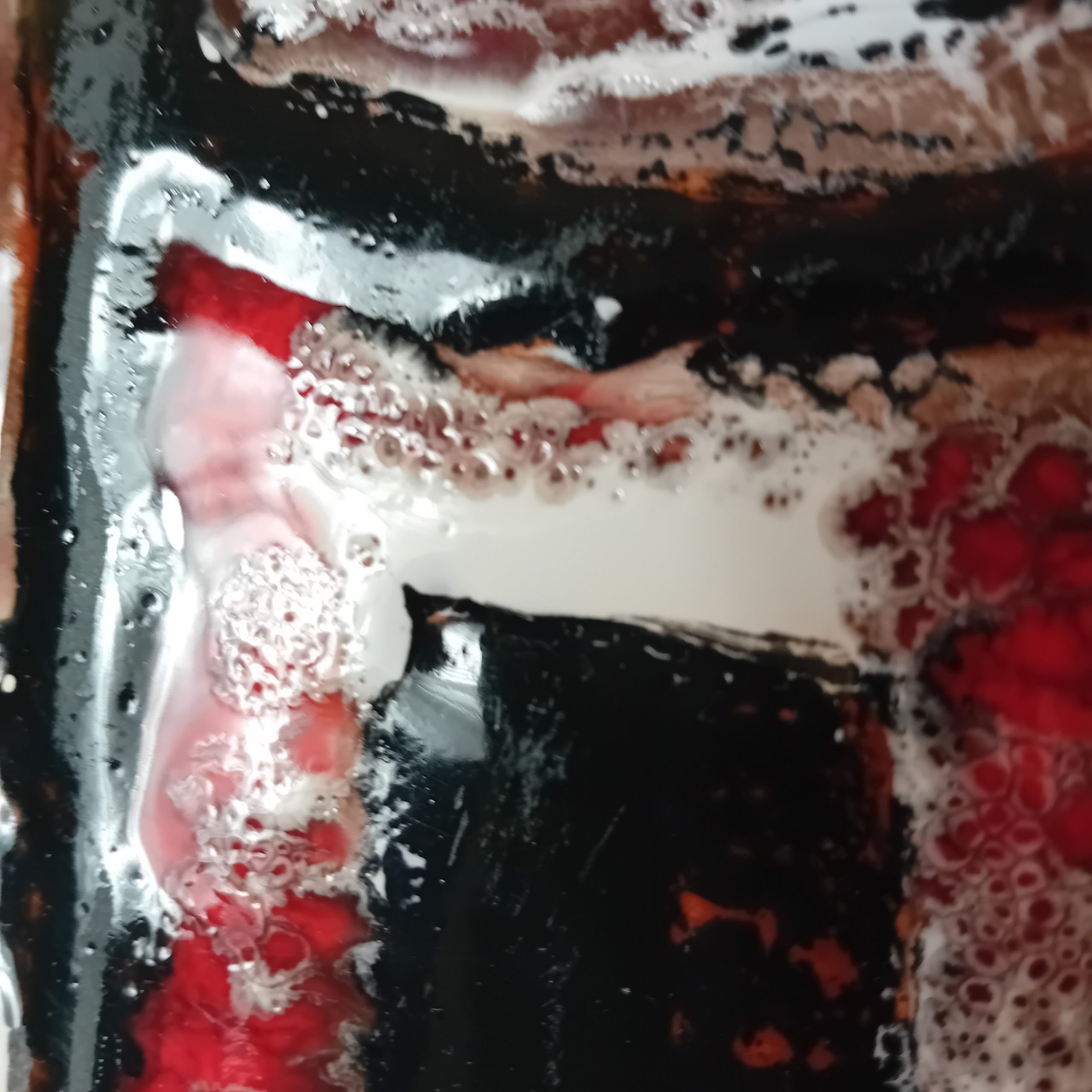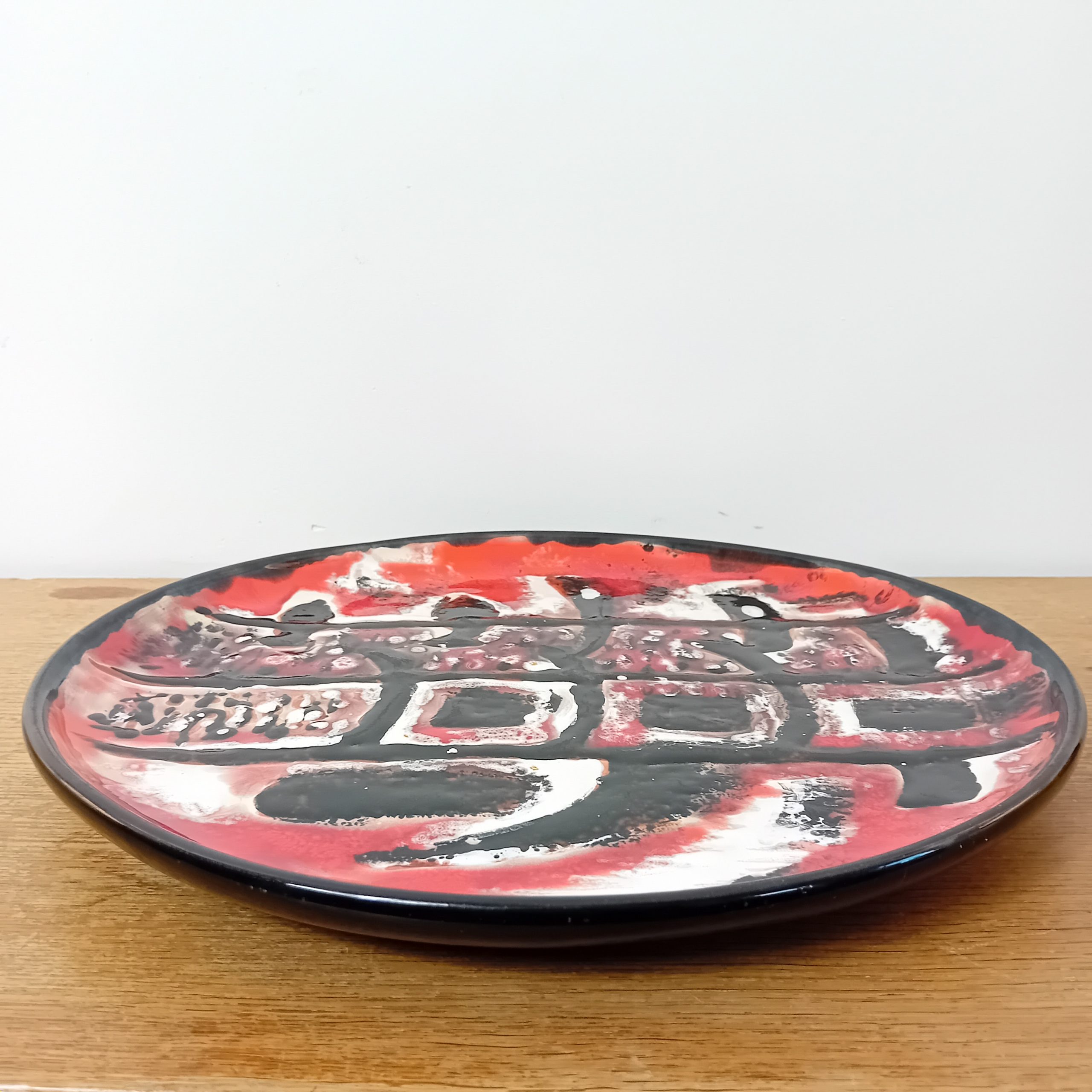Emaillage rouge brillant, blanc et noir en relief par endroit.