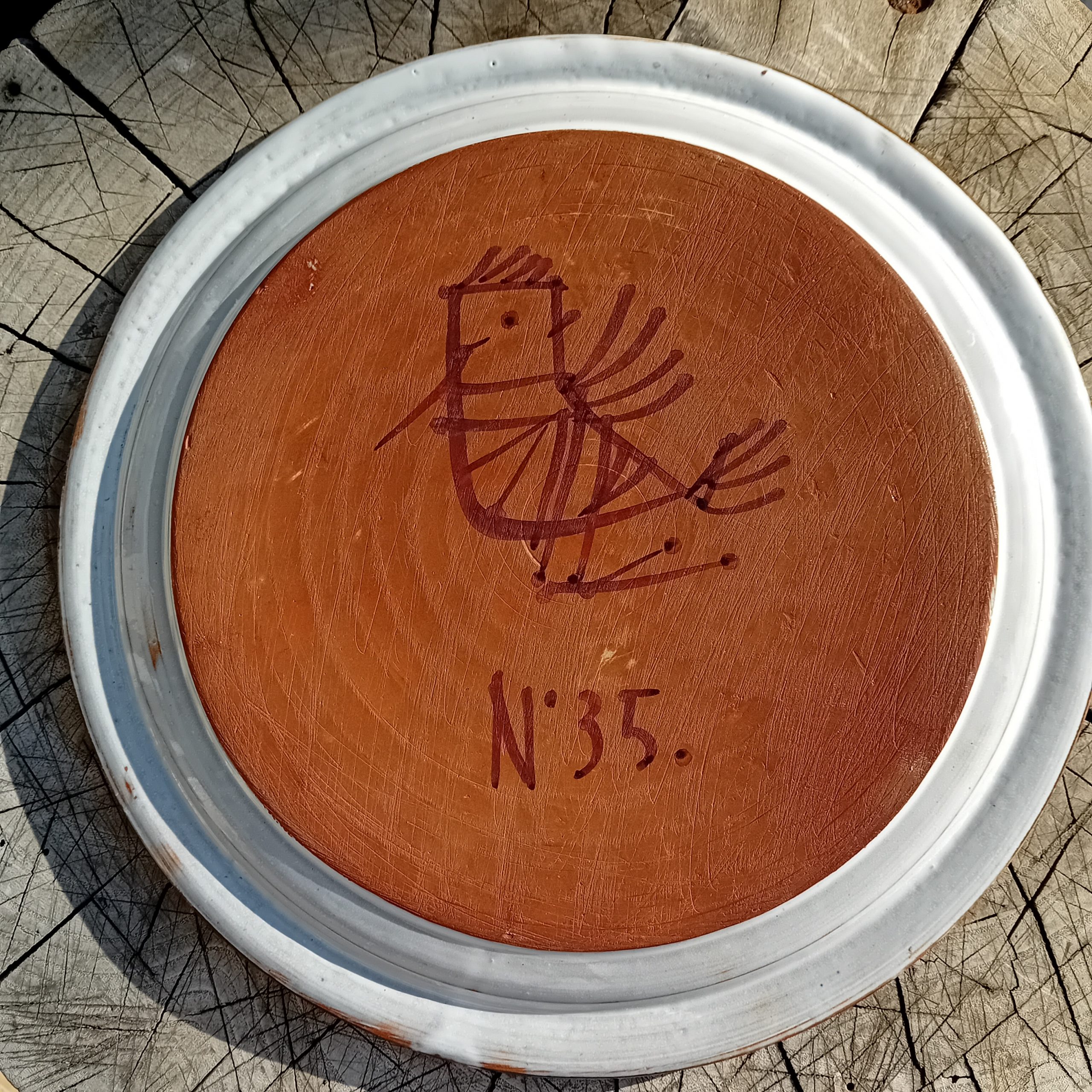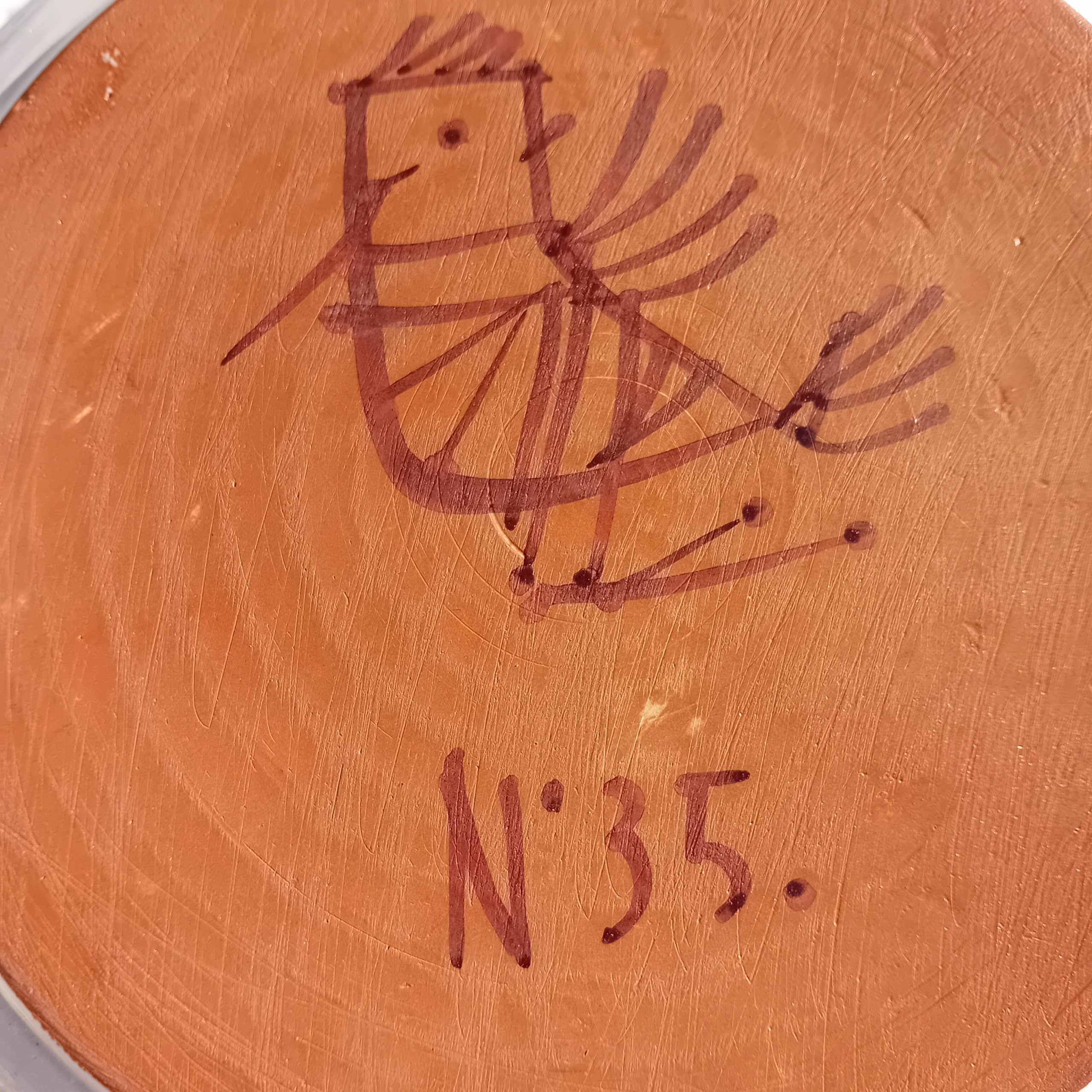 On y trouve le célèbre oiseau dessiné d’un trait libre, la signature de Michel Barbier, emblématique des productions de l’atelier Le Mûrier à Vallauris.