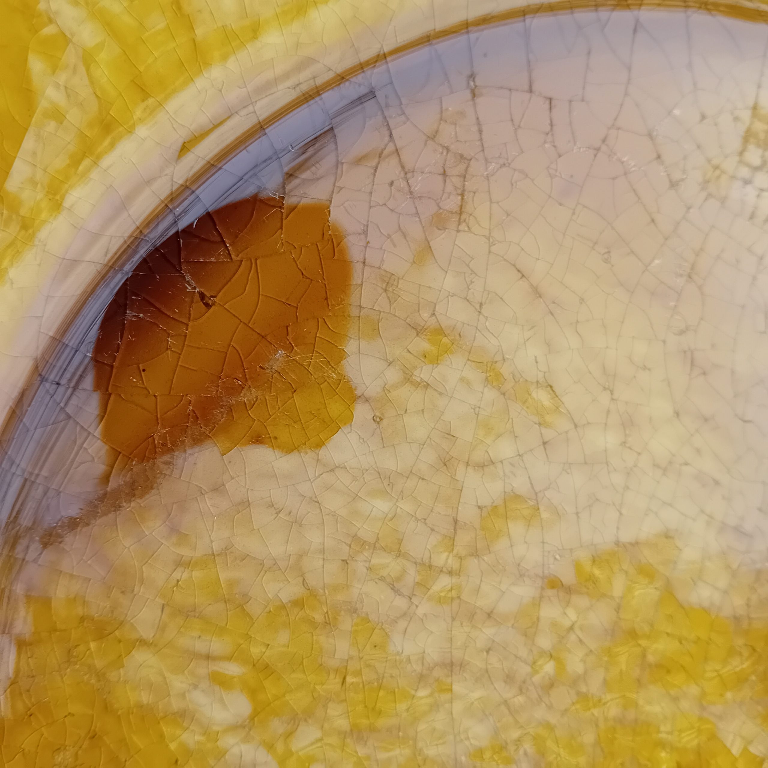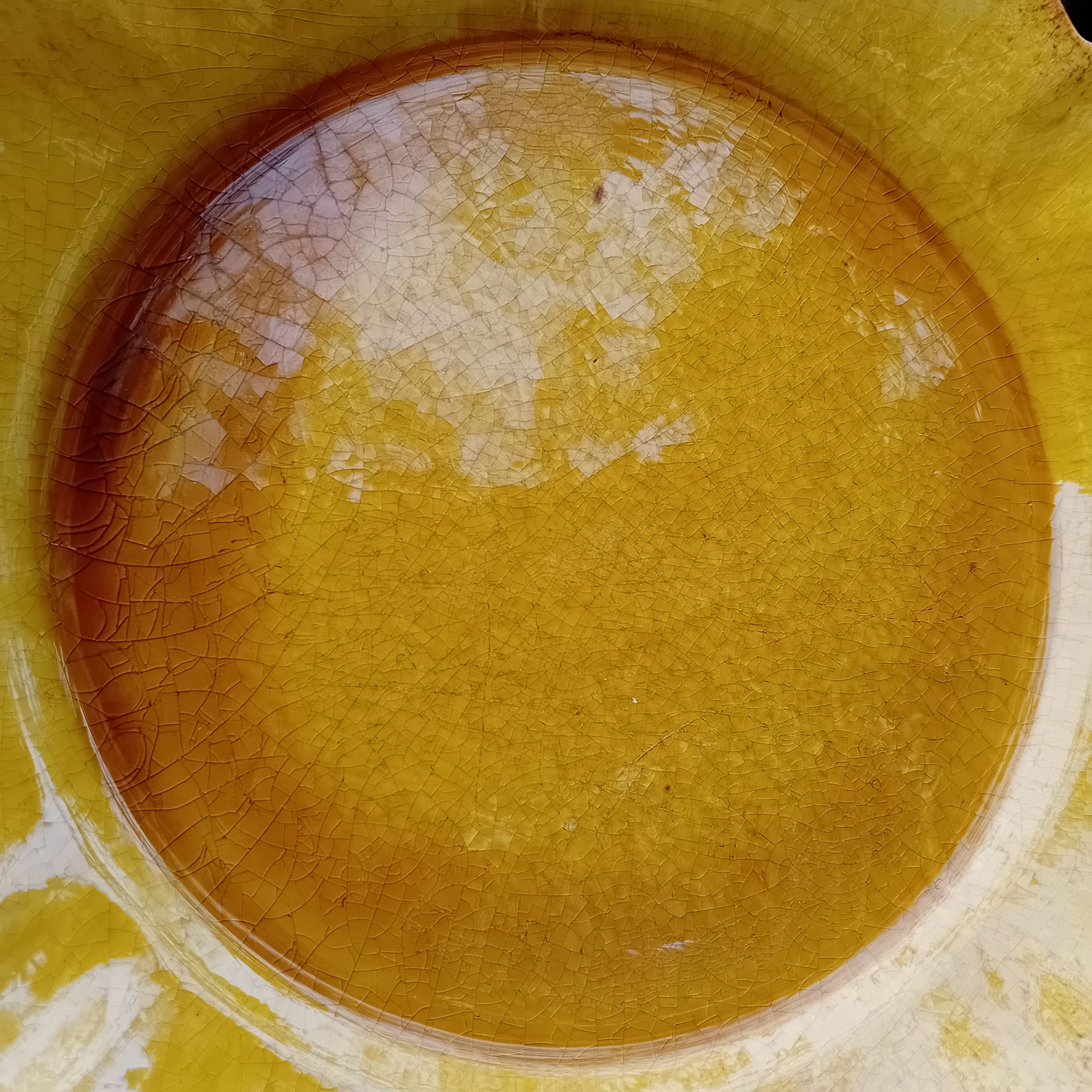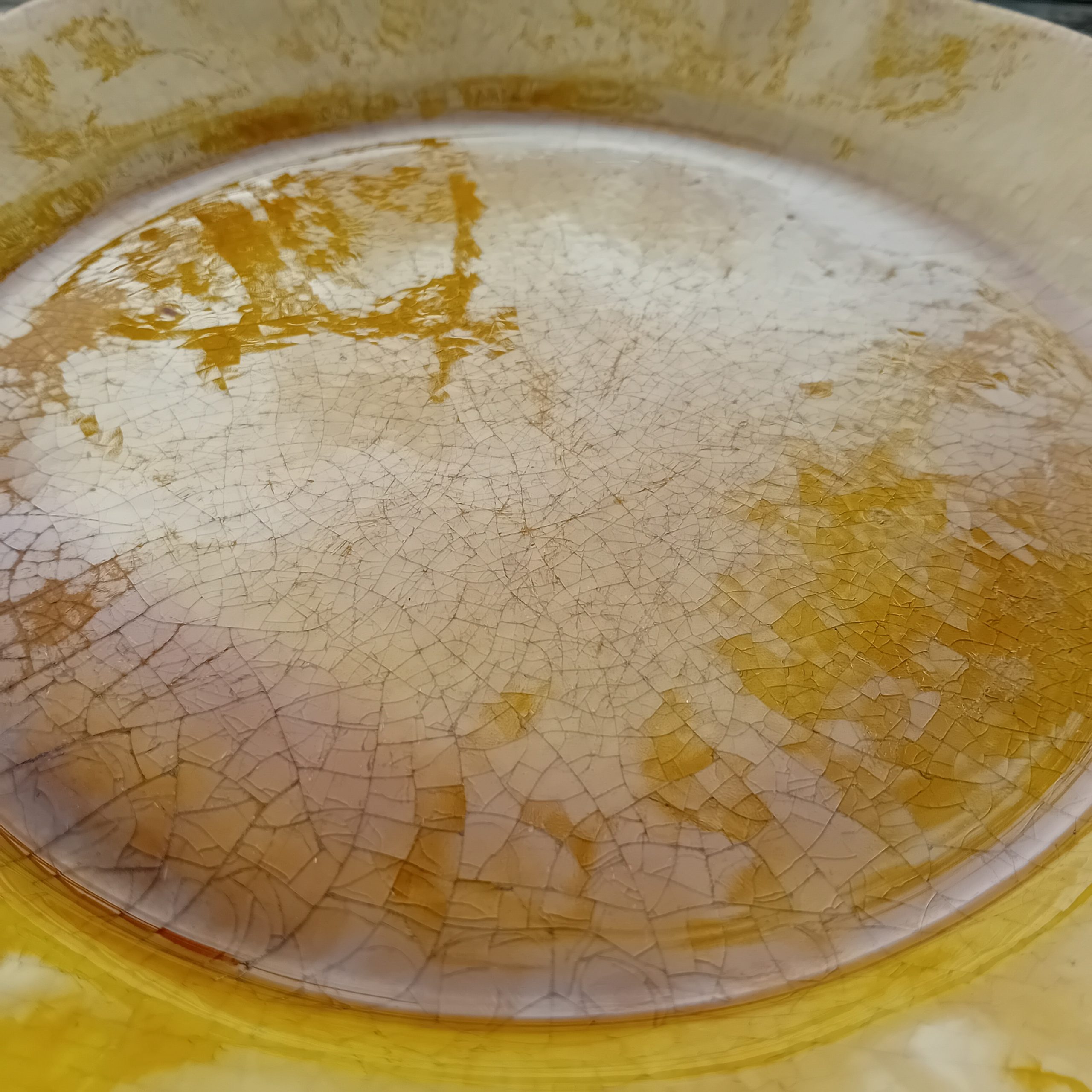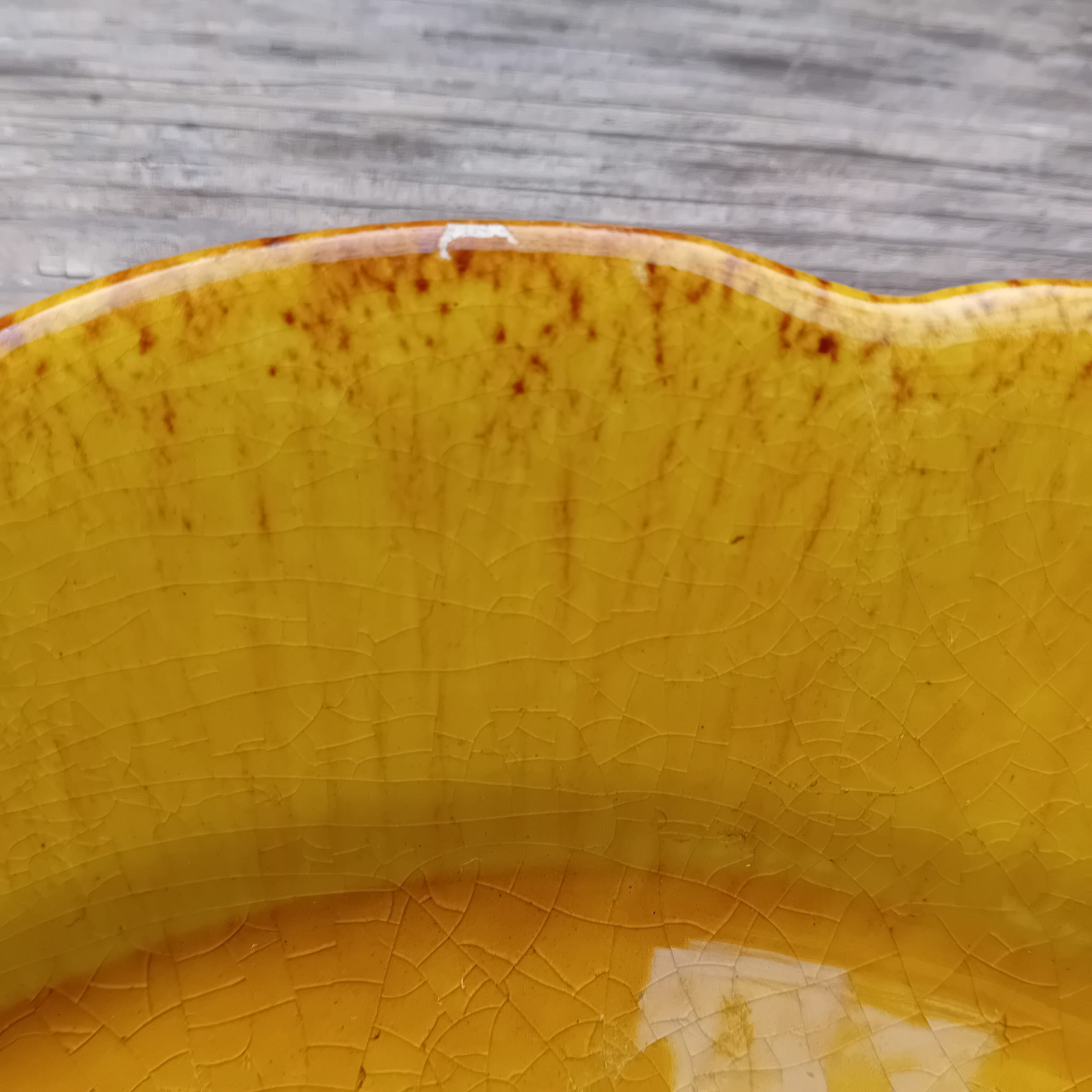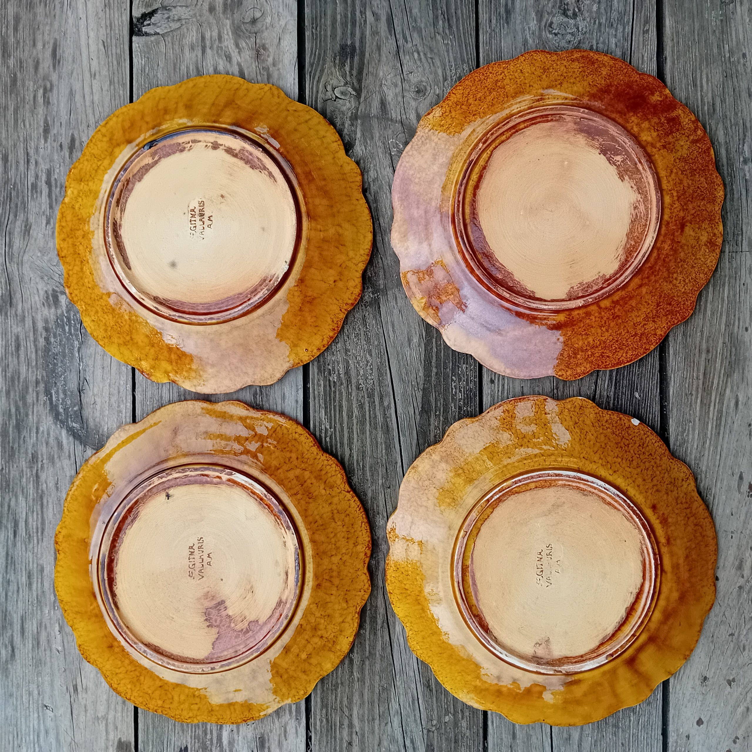 Ensuite, les assiettes présentent une glaçure couleur miel, parfois appelée “pain brûlé”, animée par une craquelure fine et régulière. Selon la cuisson, l’émail révèle de subtiles variations de teinte. Ainsi, chaque pièce possède sa propre nuance, renforçant l’authenticité de l’ensemble.