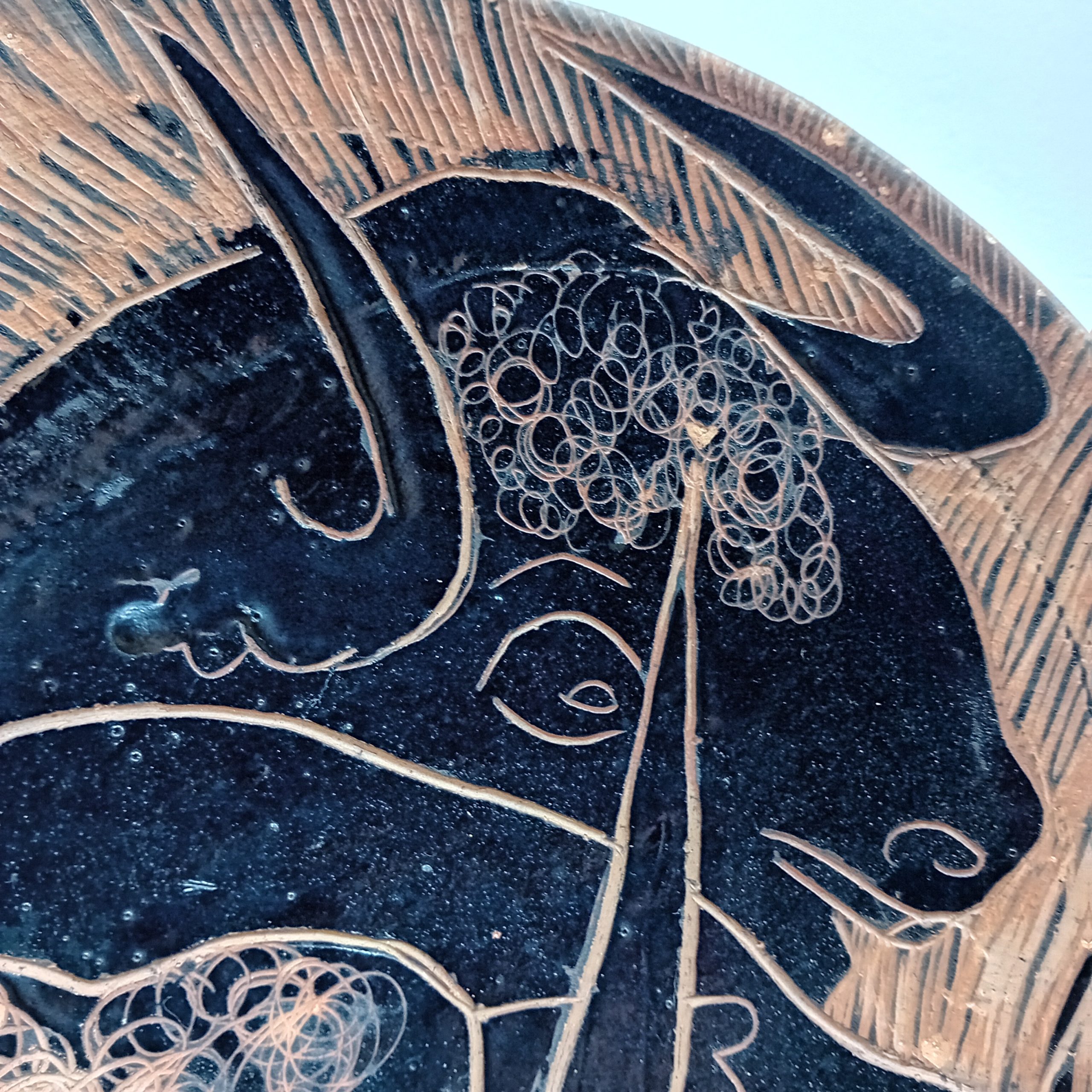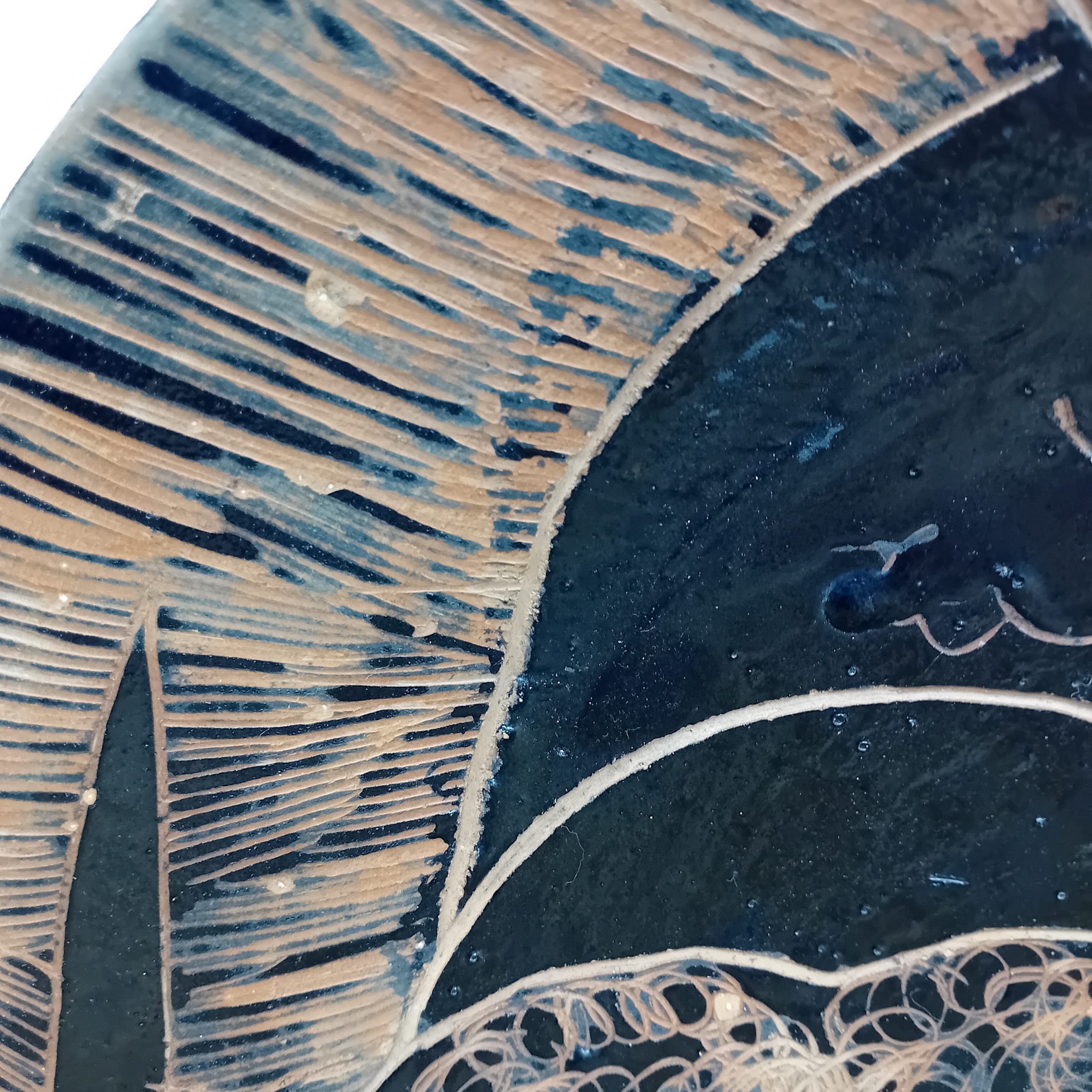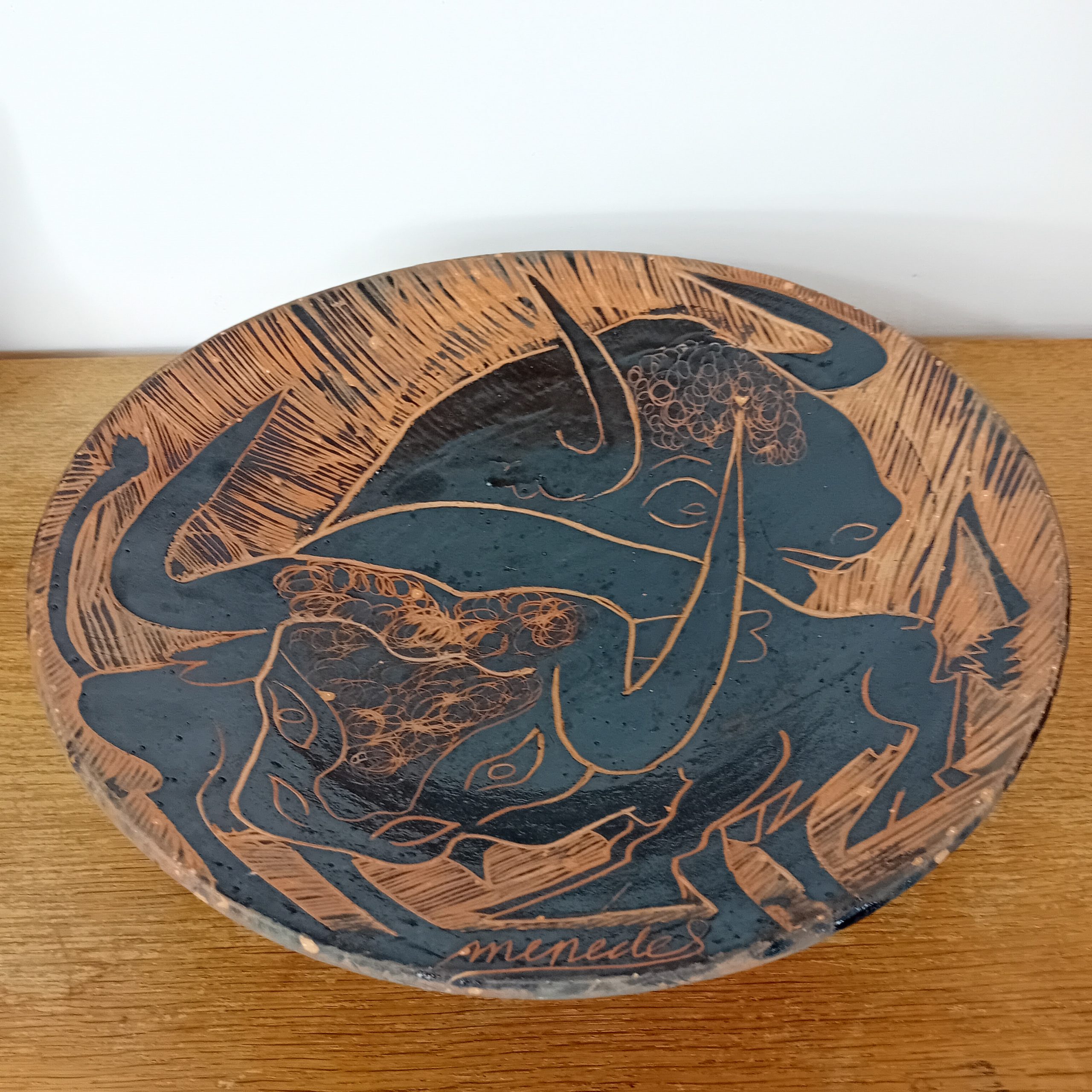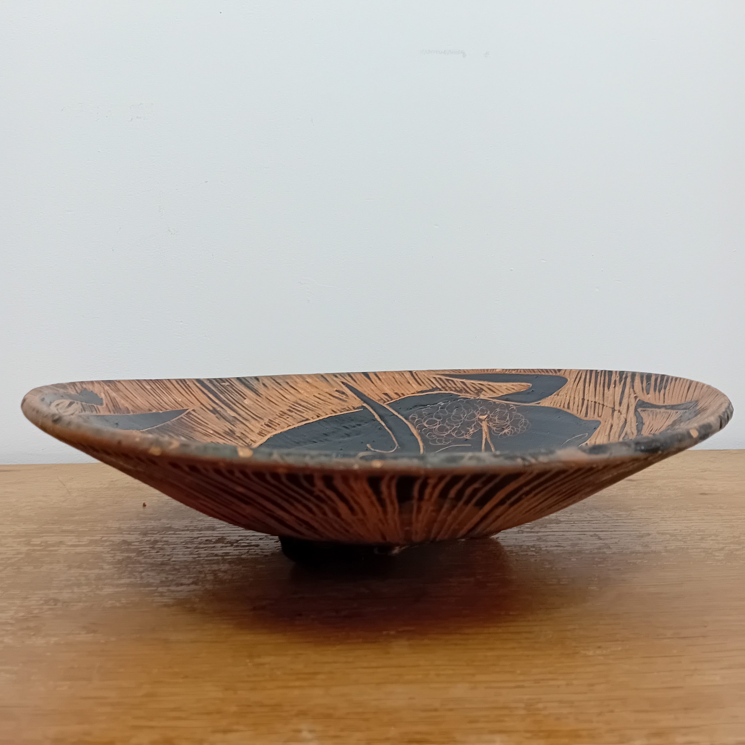 Une très belle coupe ou plat en noir rayé de l’Artiste Espagnol de Cuenca de Junta Castilla La Mancha.