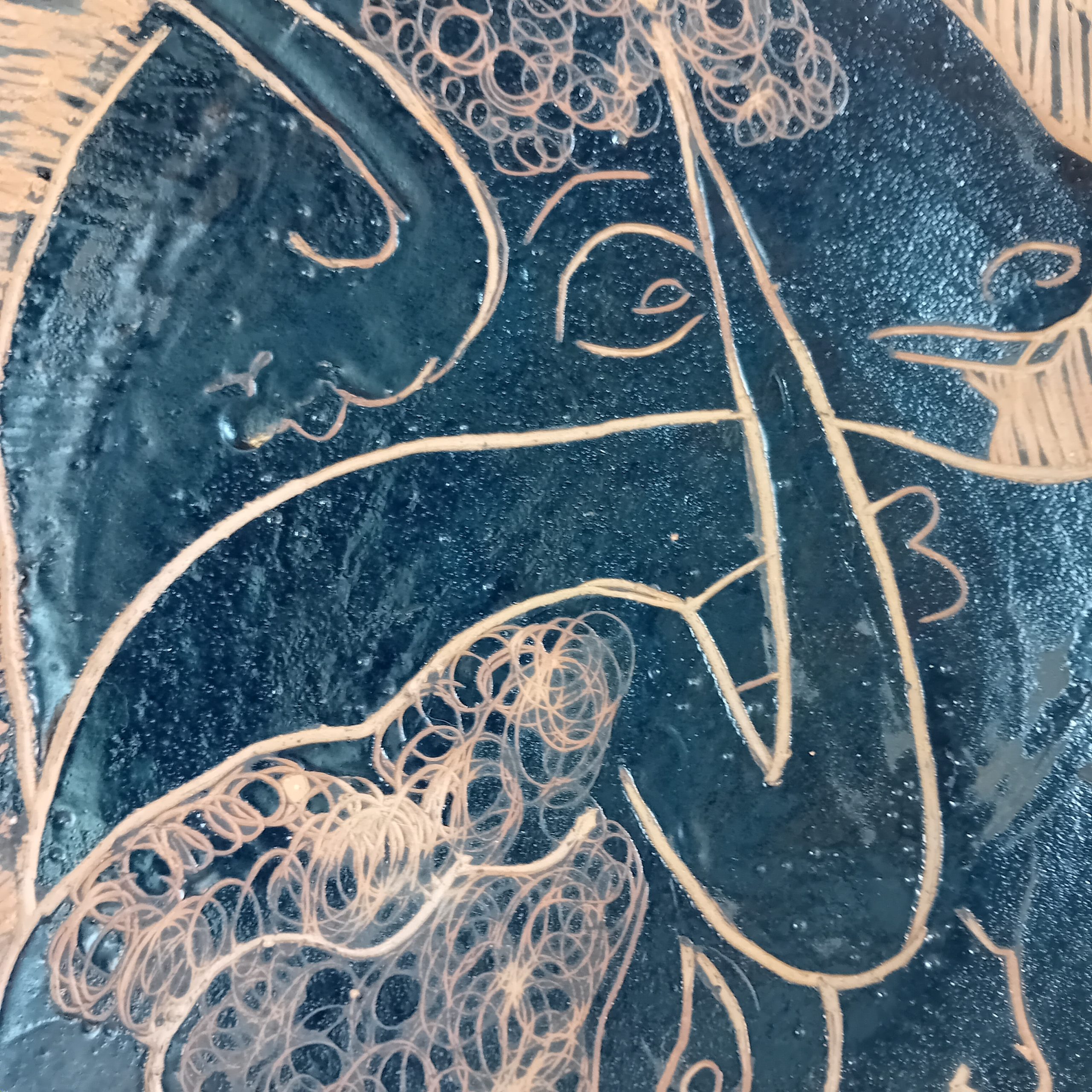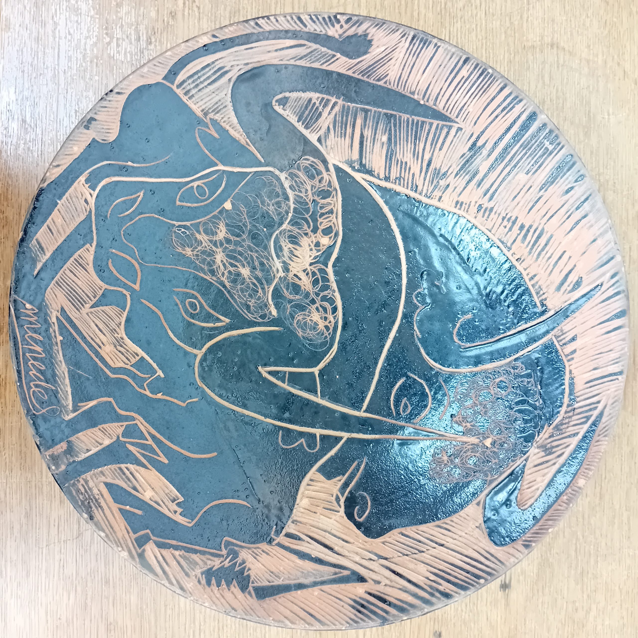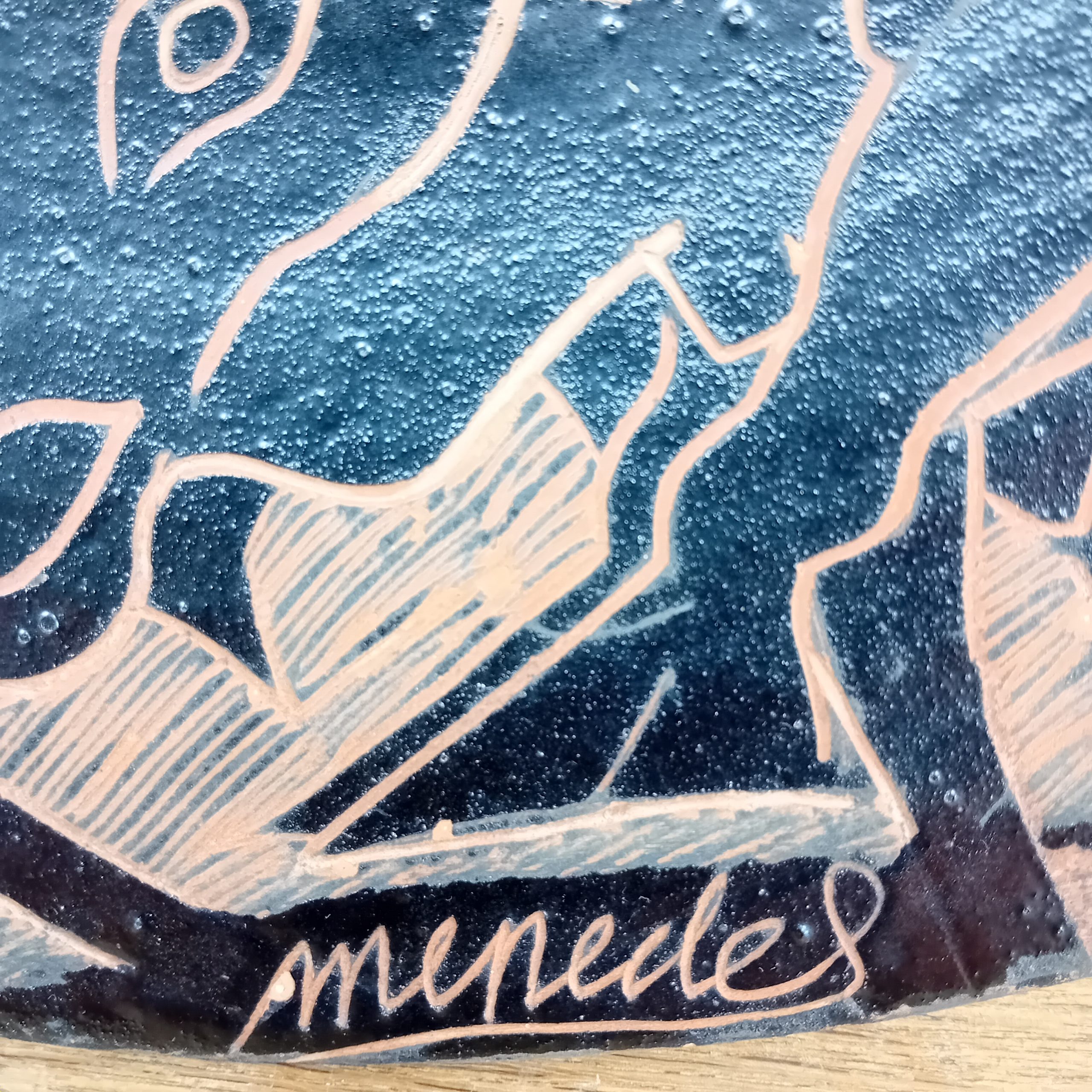 Une très belle coupe ou plat en noir rayé de l’Artiste Espagnol de Cuenca de Junta Castilla La Mancha.