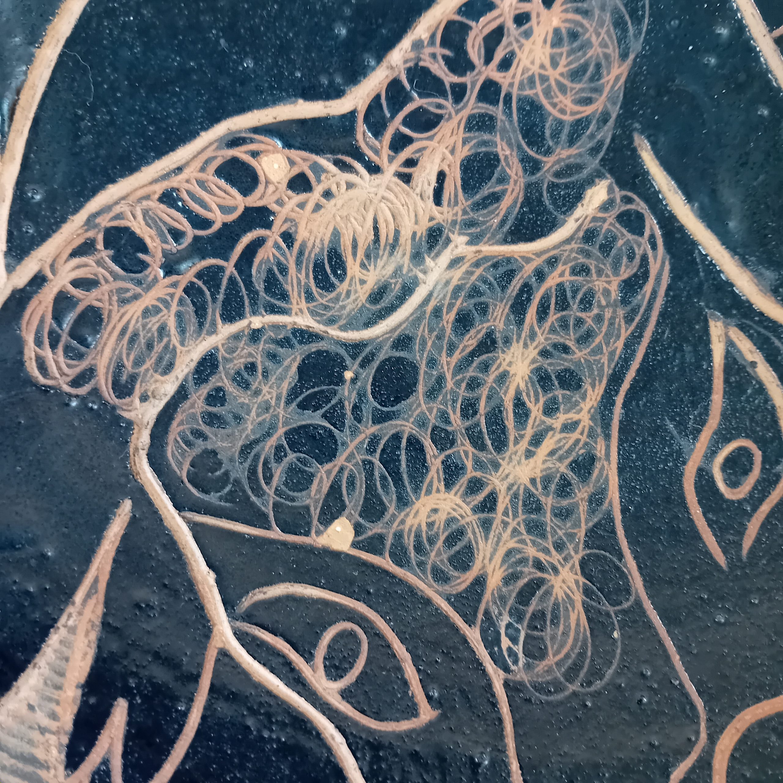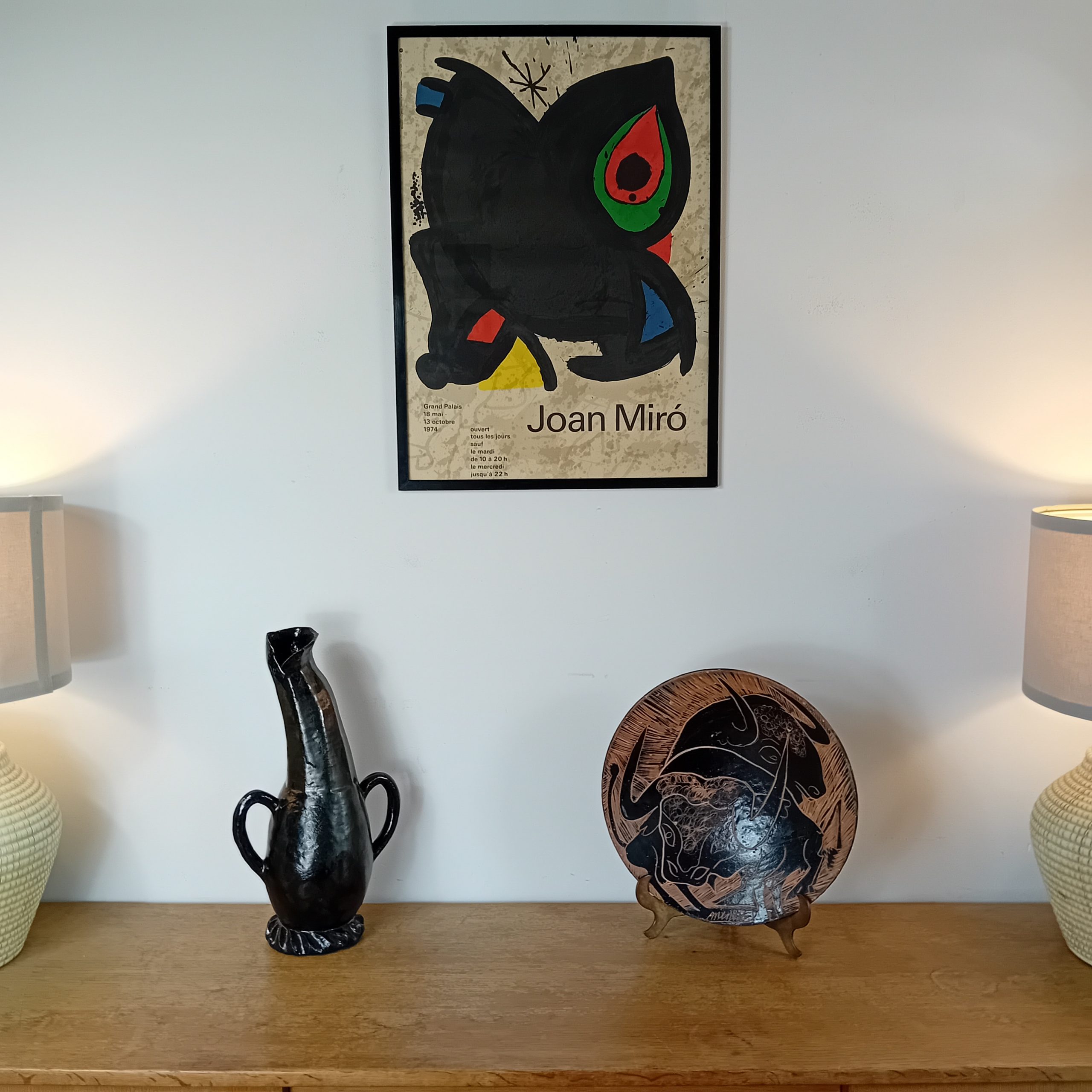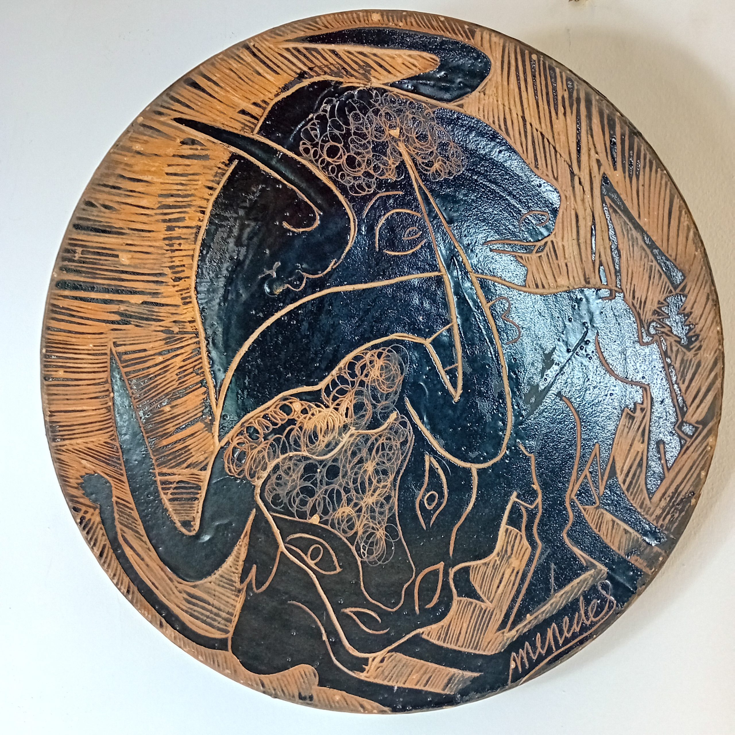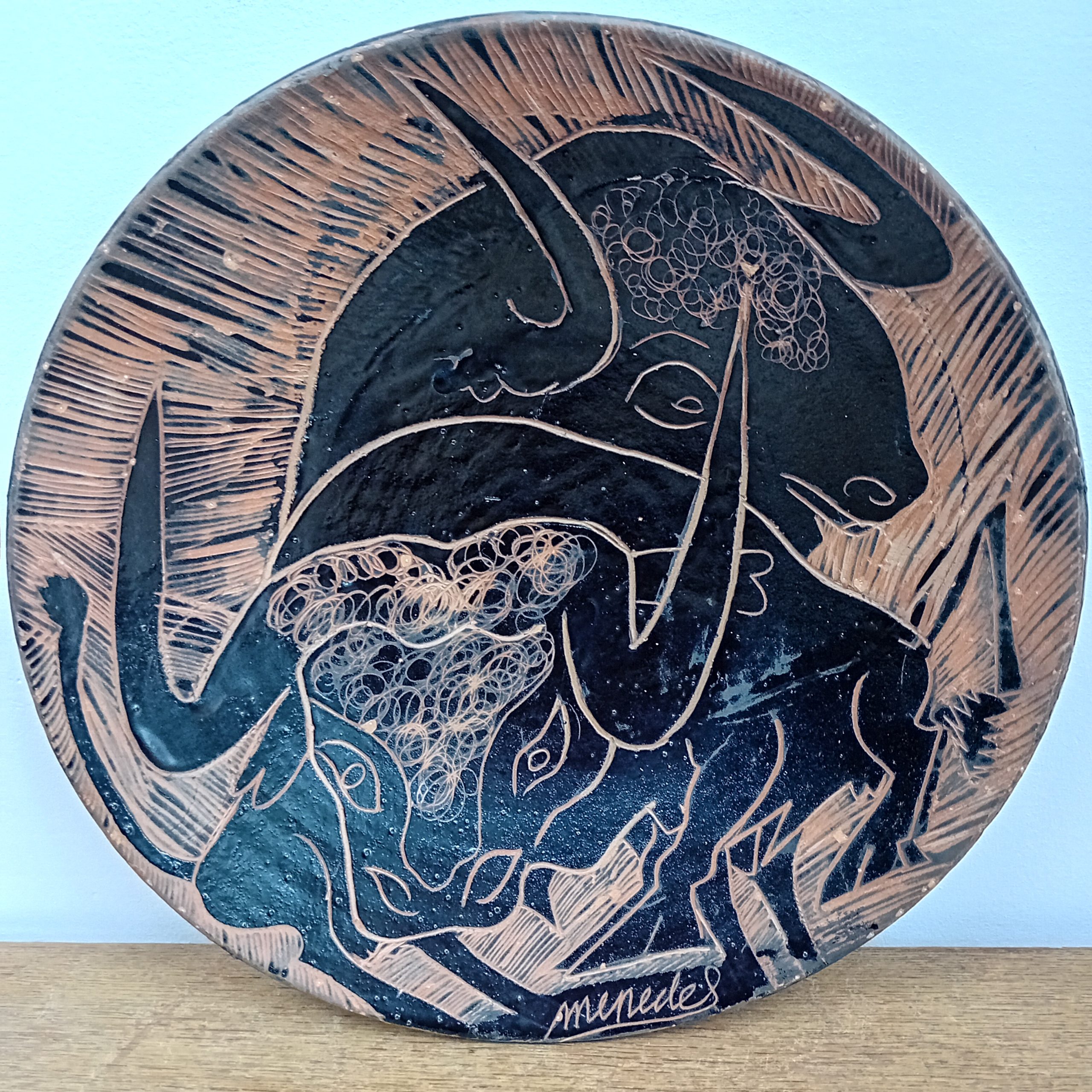 Une très belle coupe ou plat en noir rayé de l’Artiste Espagnol de Cuenca de Junta Castilla La Mancha.