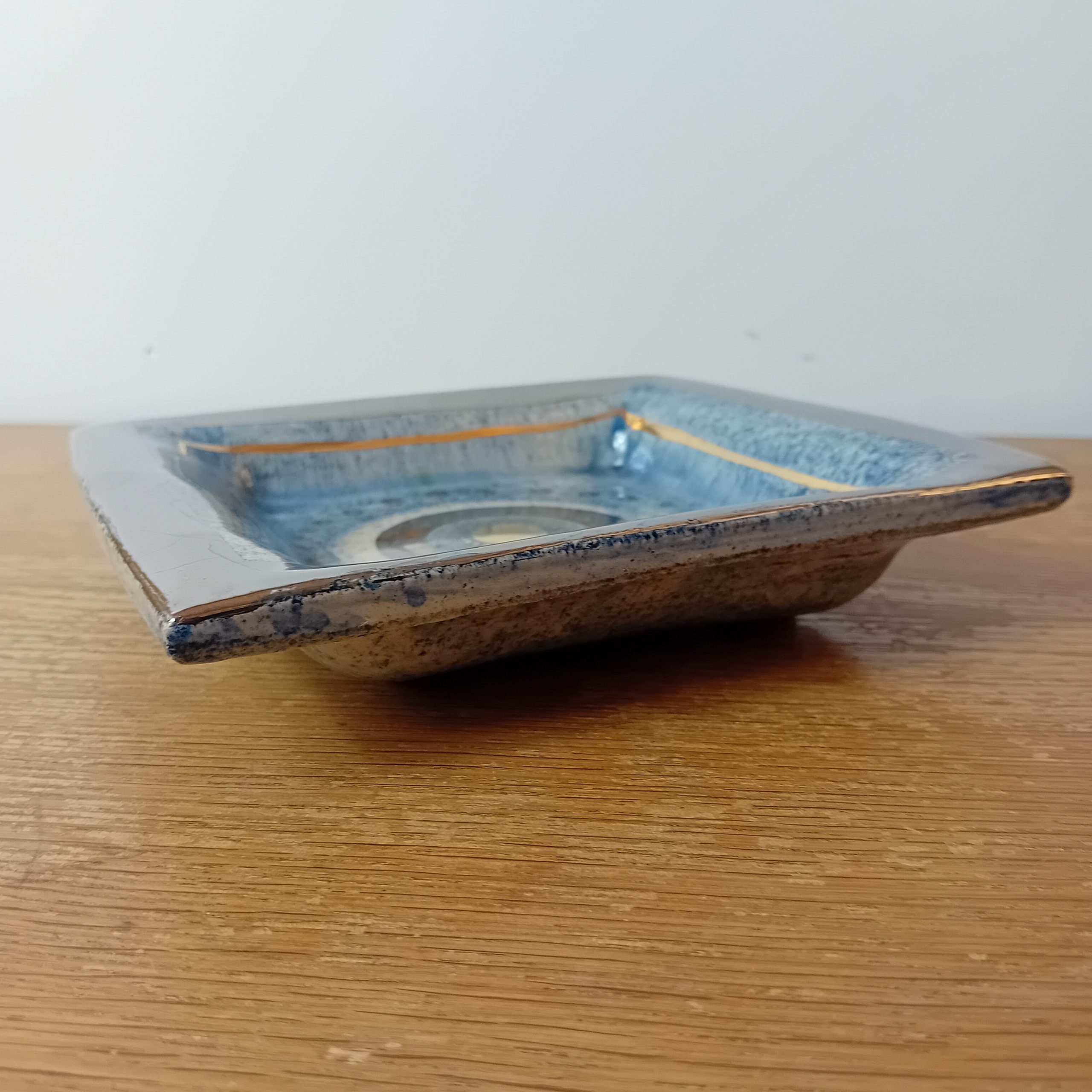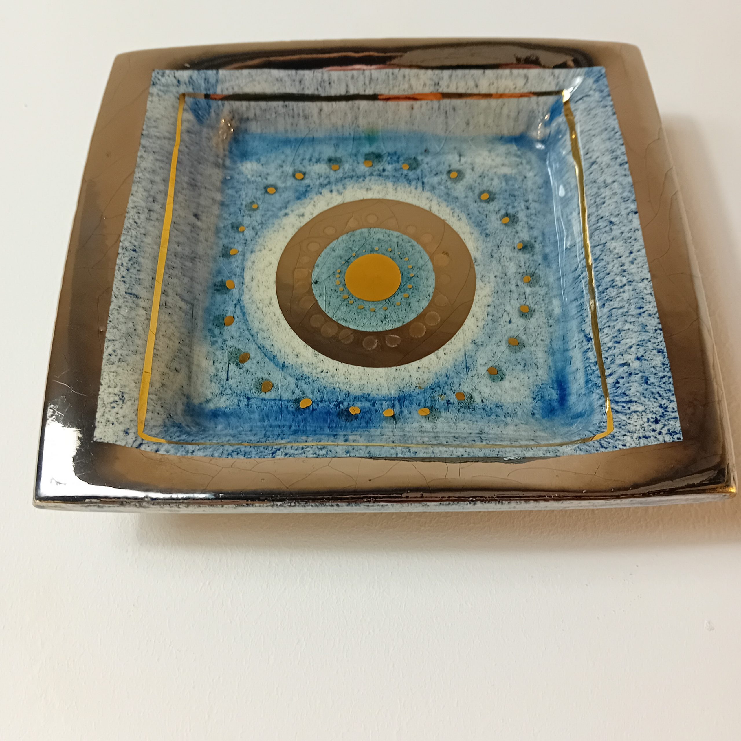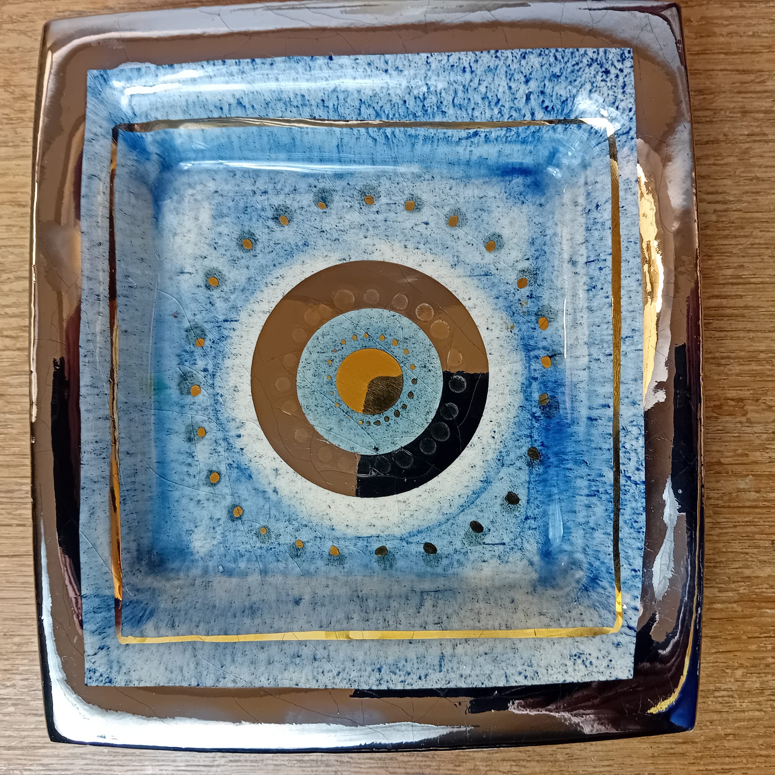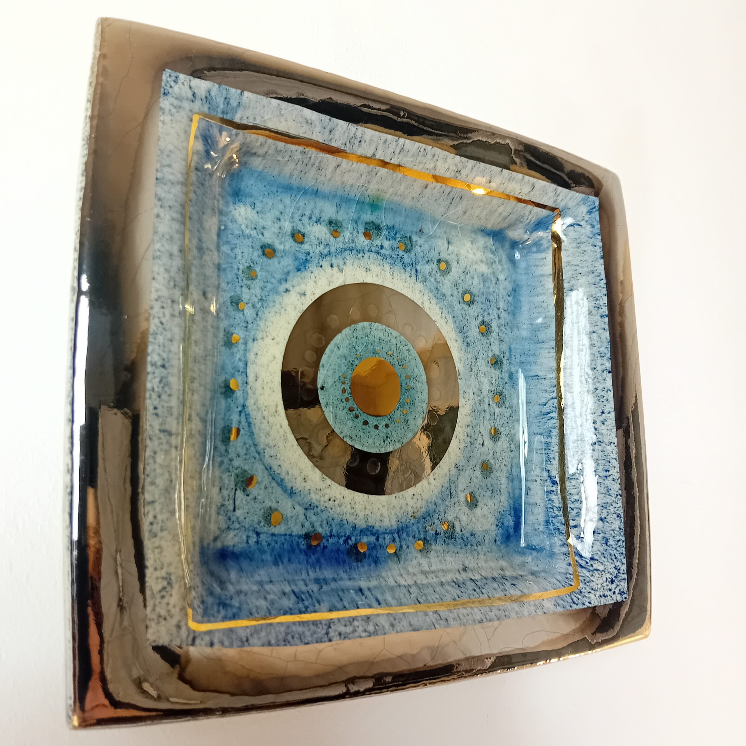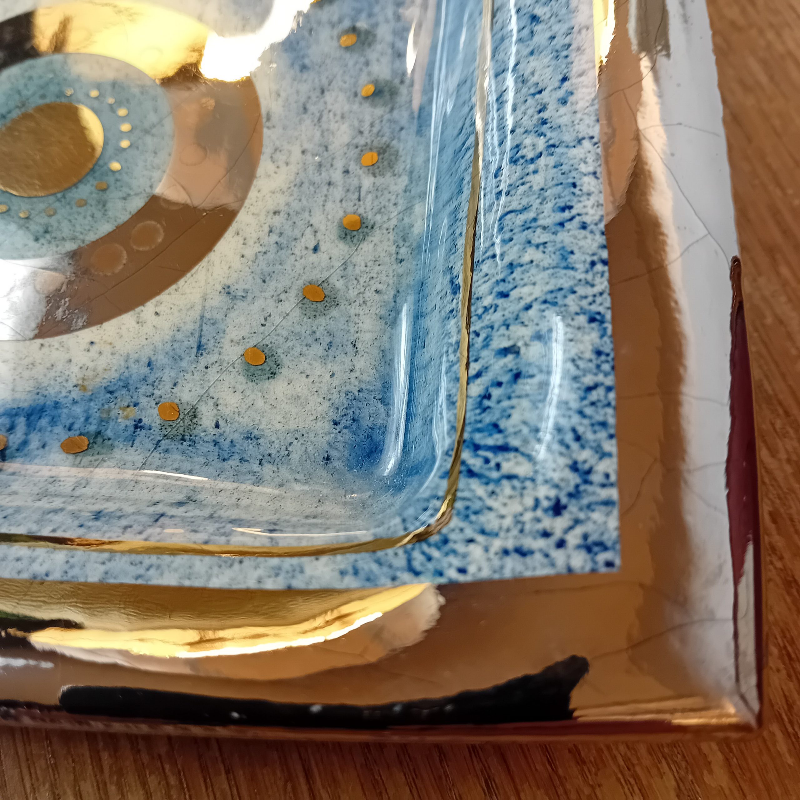 Belles couleurs bleues et décor argent et or, peu fréquent.