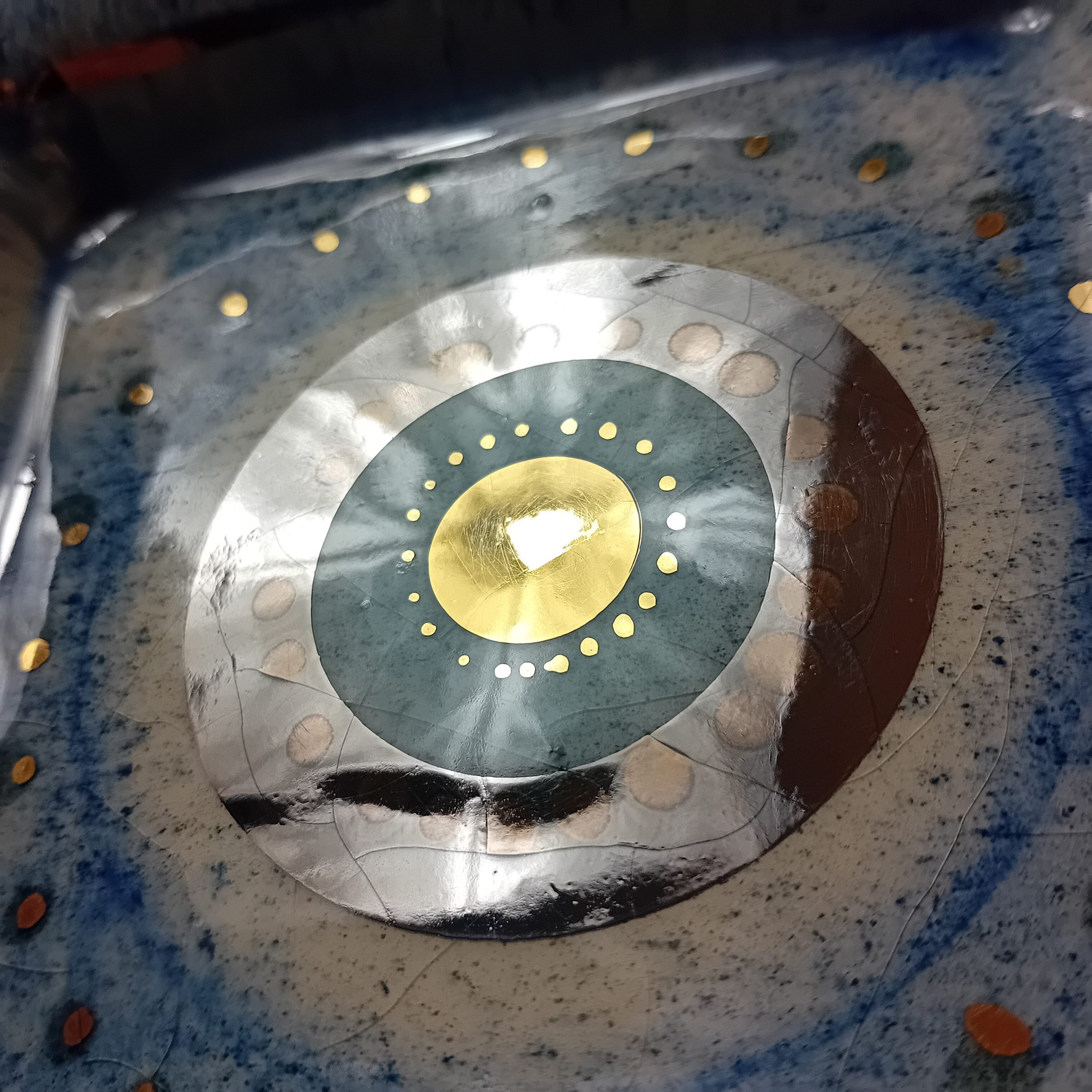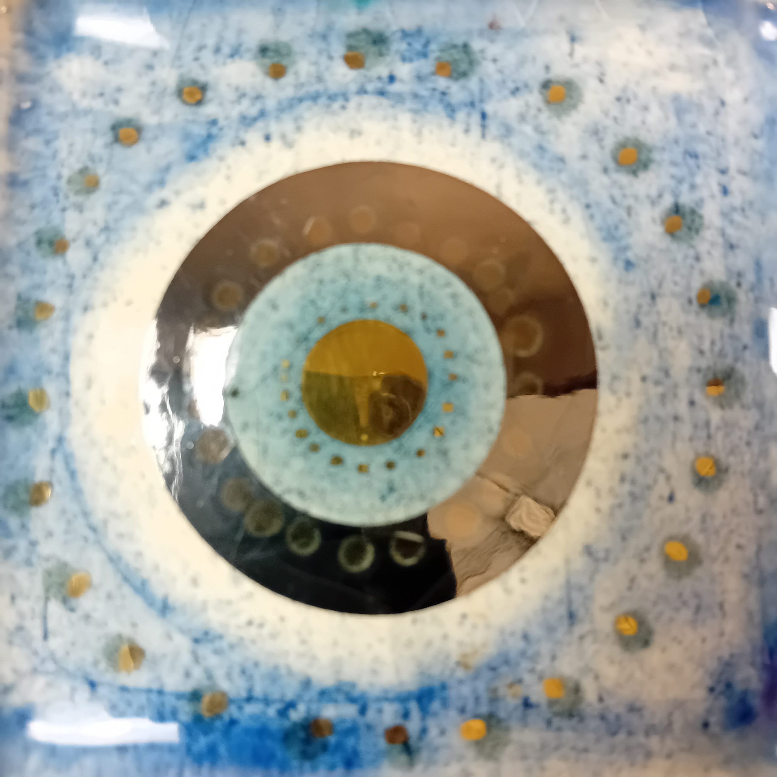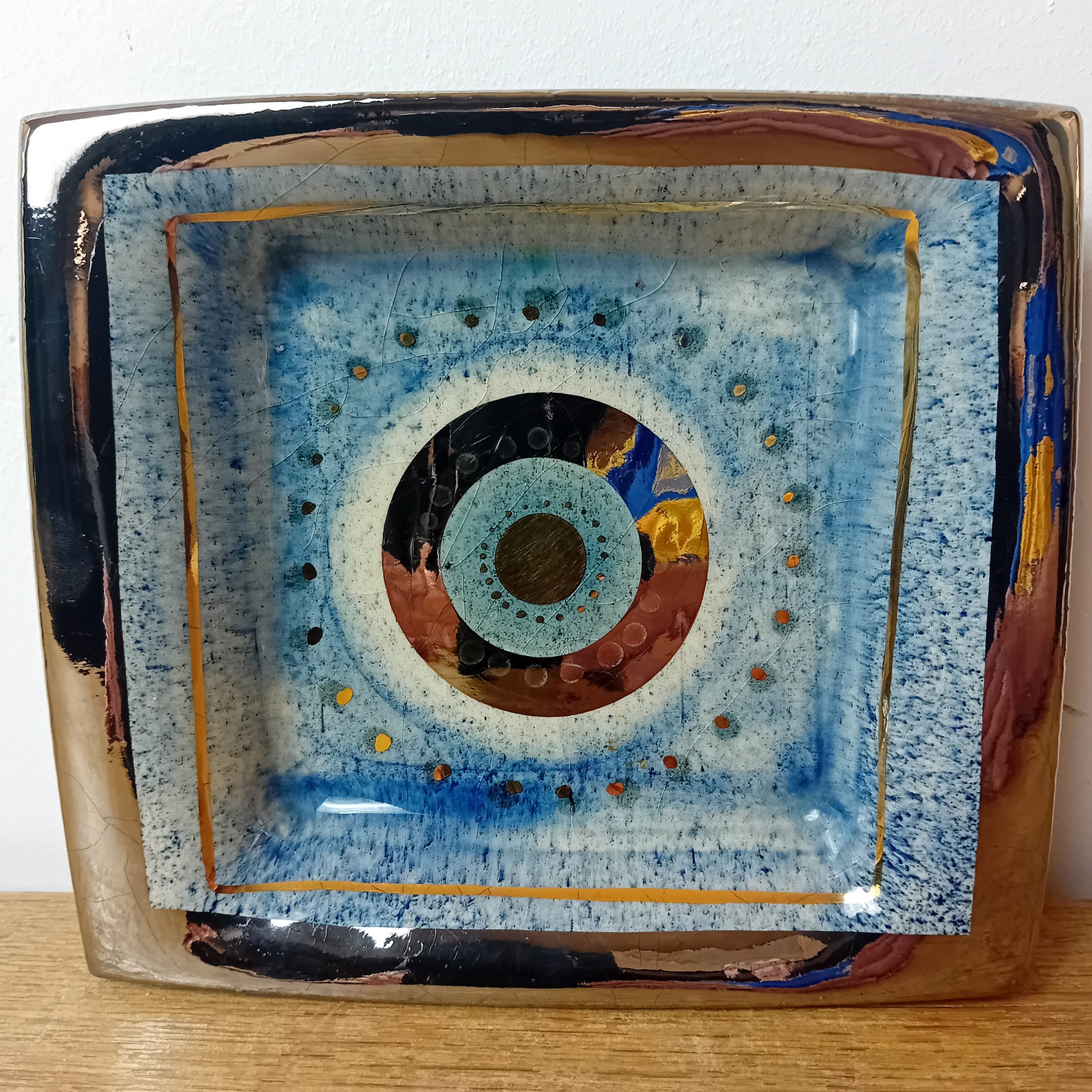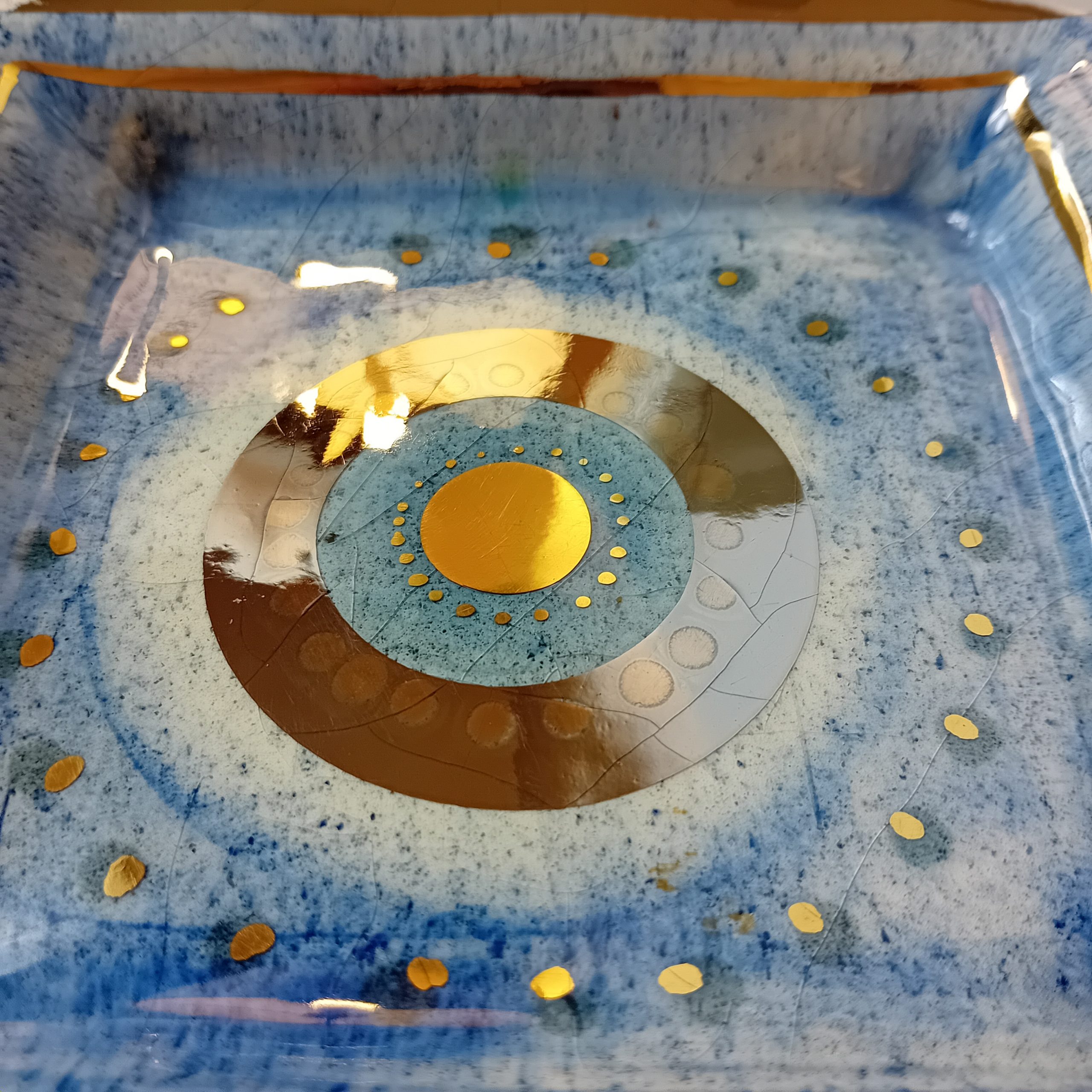 Belles couleurs bleues et décor argent et or, peu fréquent.
