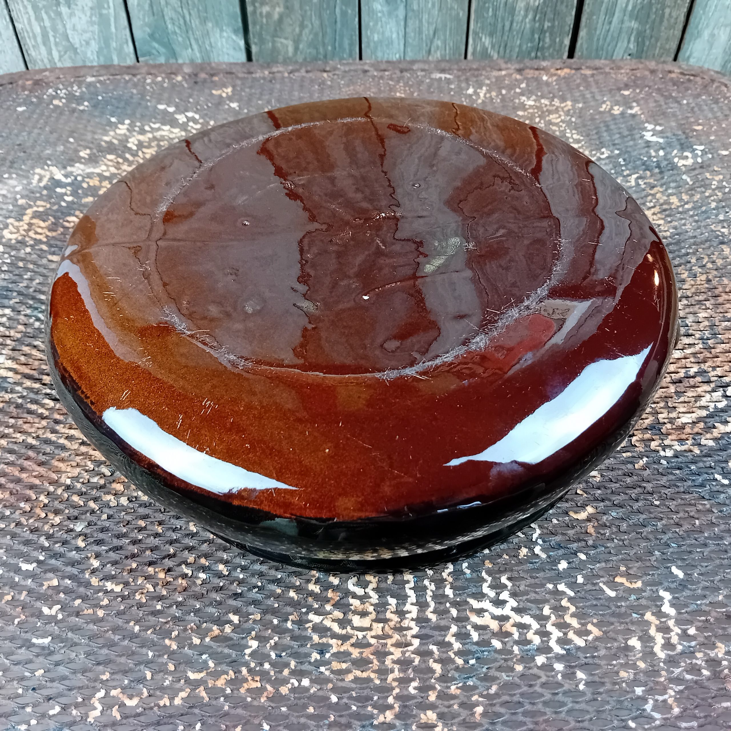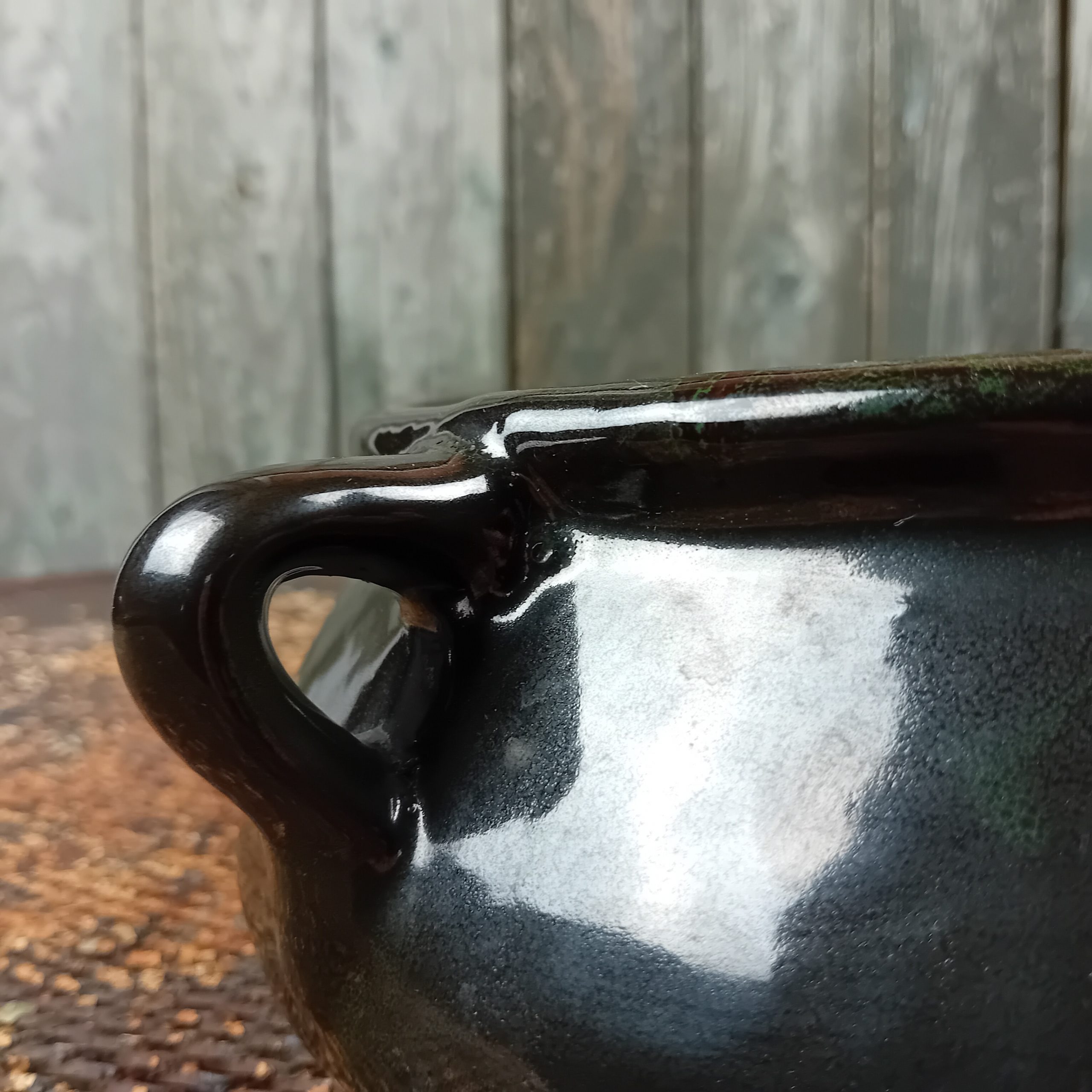 Le cul est de couleur rouge brun, le tour noir vernissé.