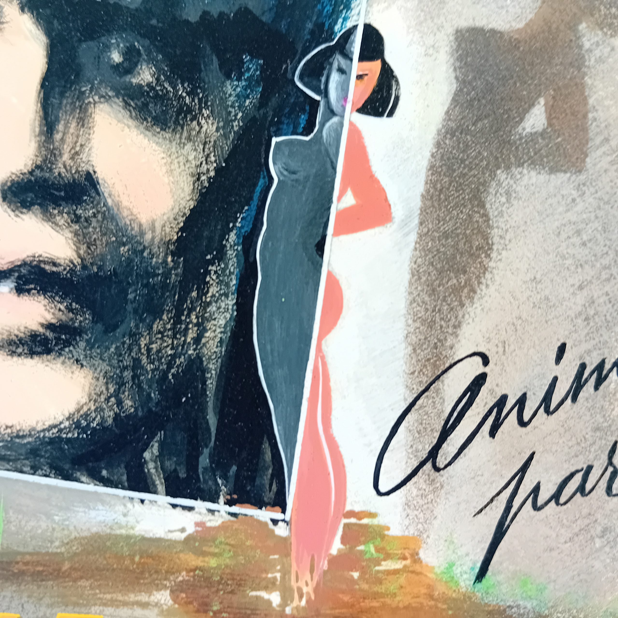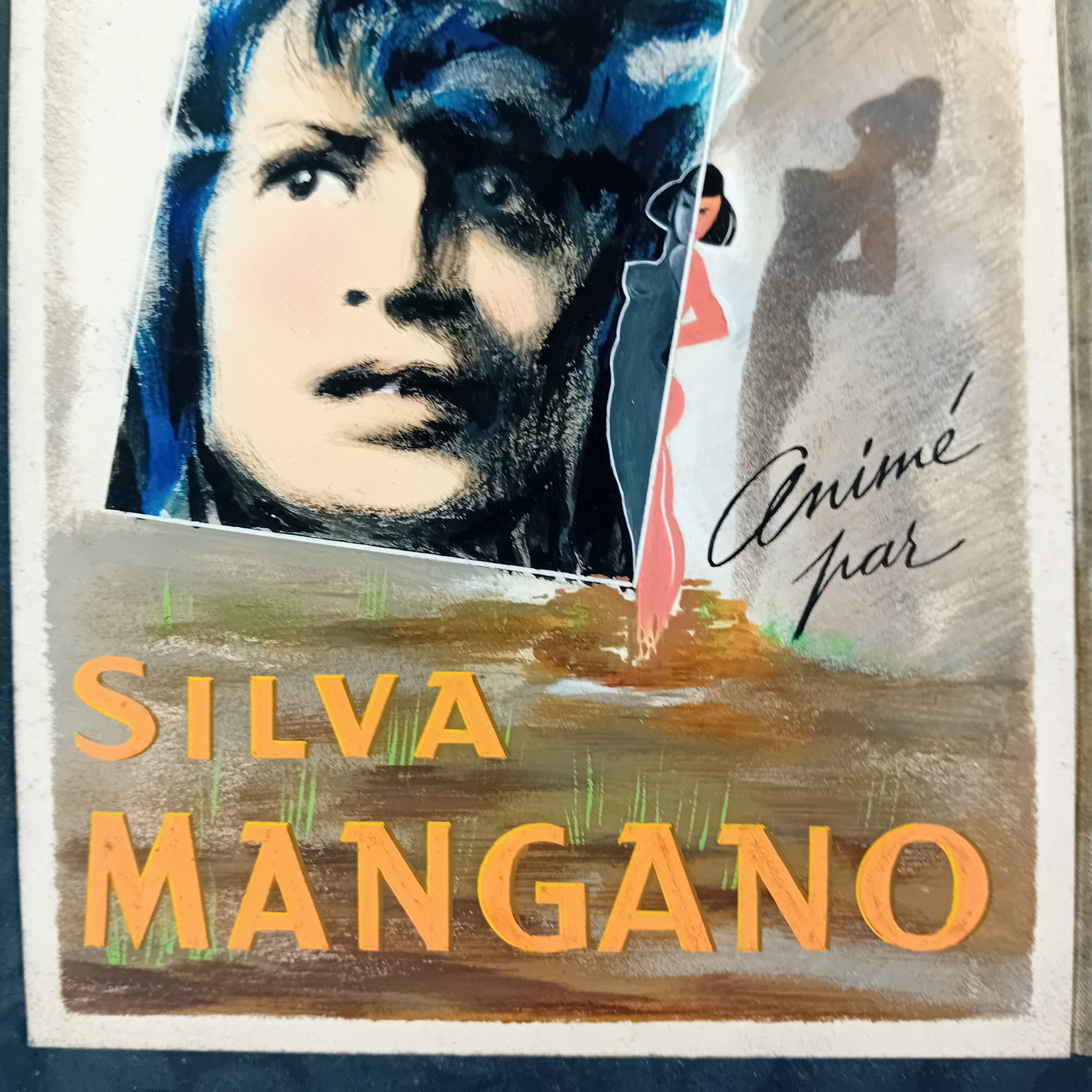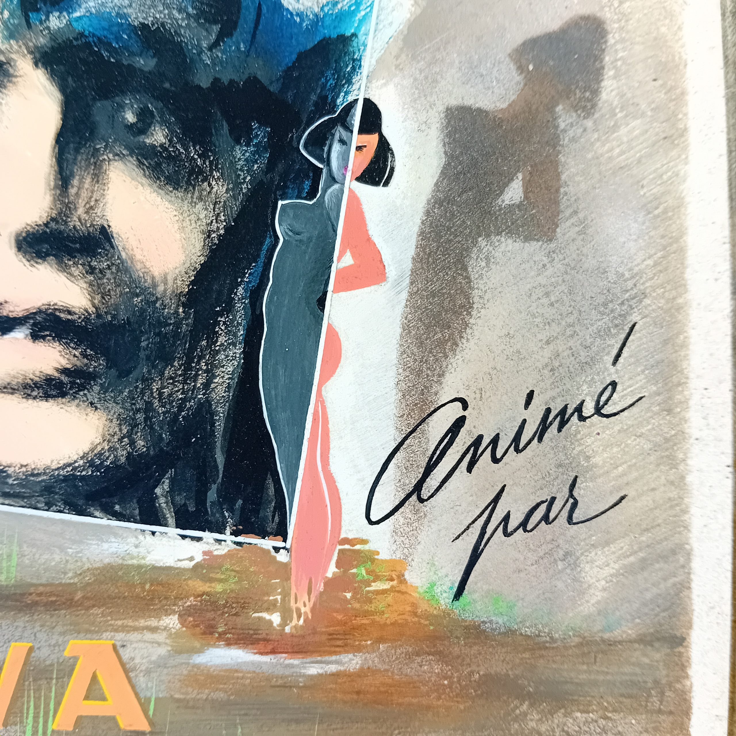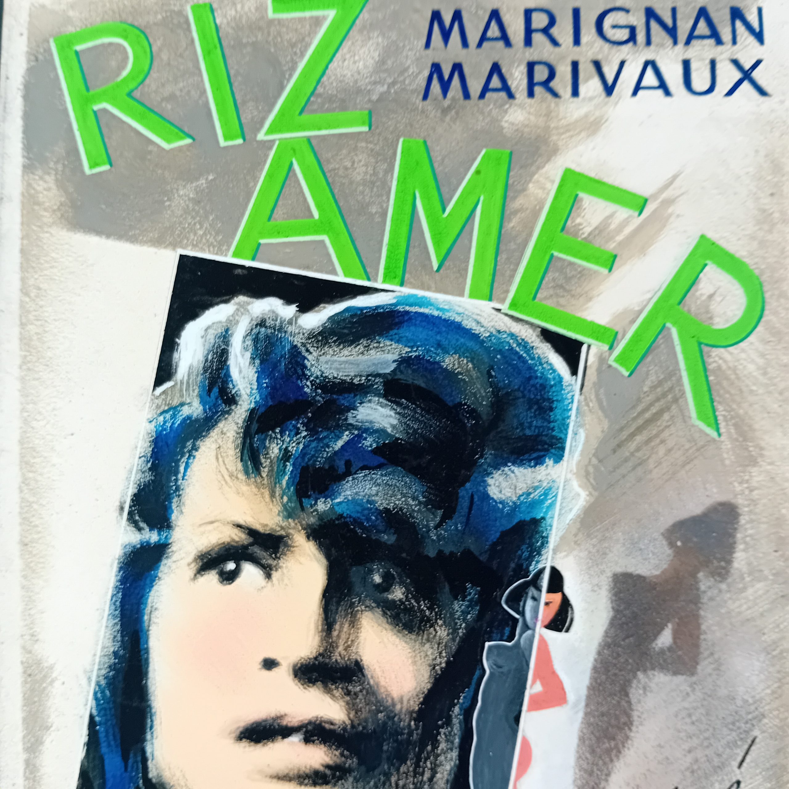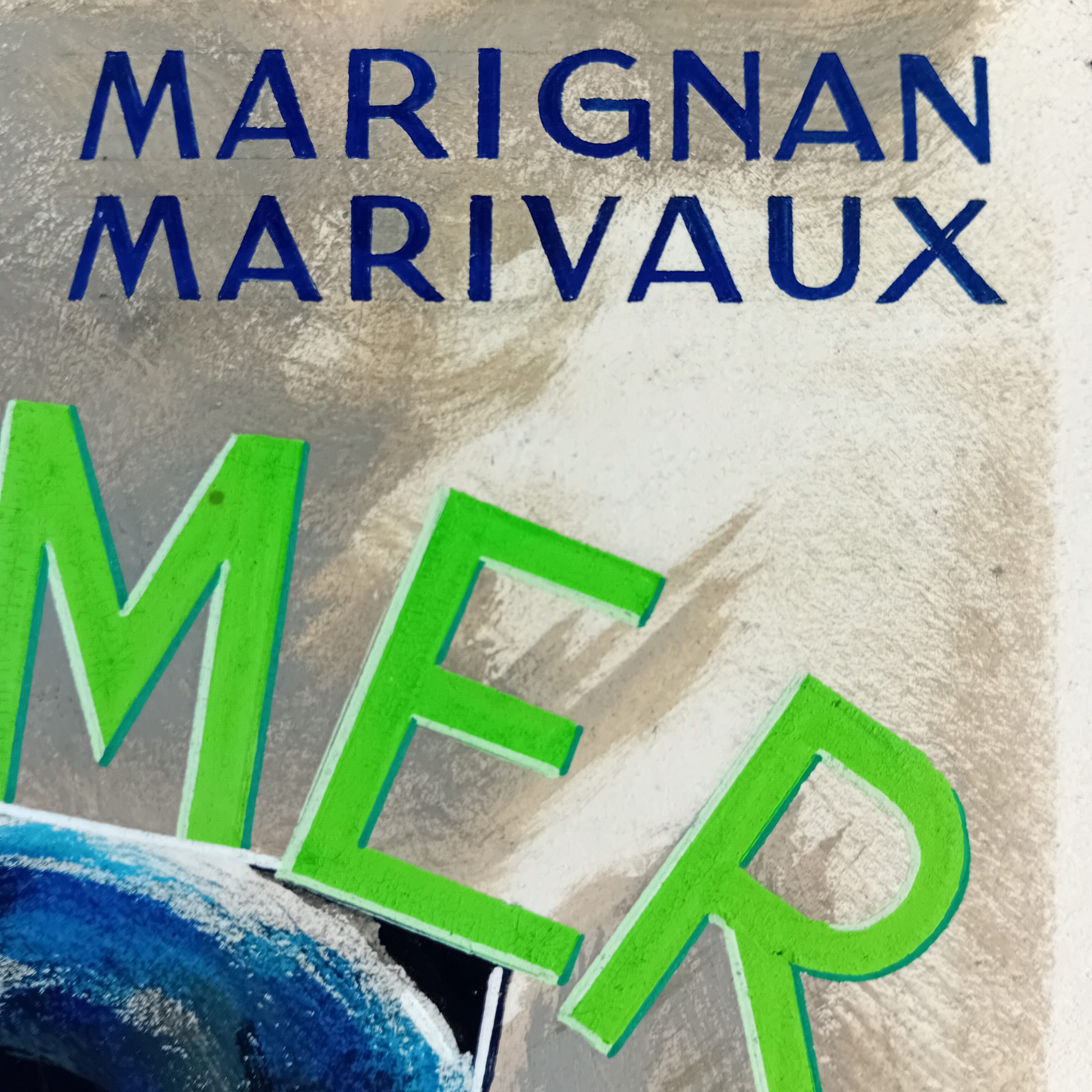 Gouache publicitaire RIZ AMER Théâtre Marignan Marivaux années 50/60