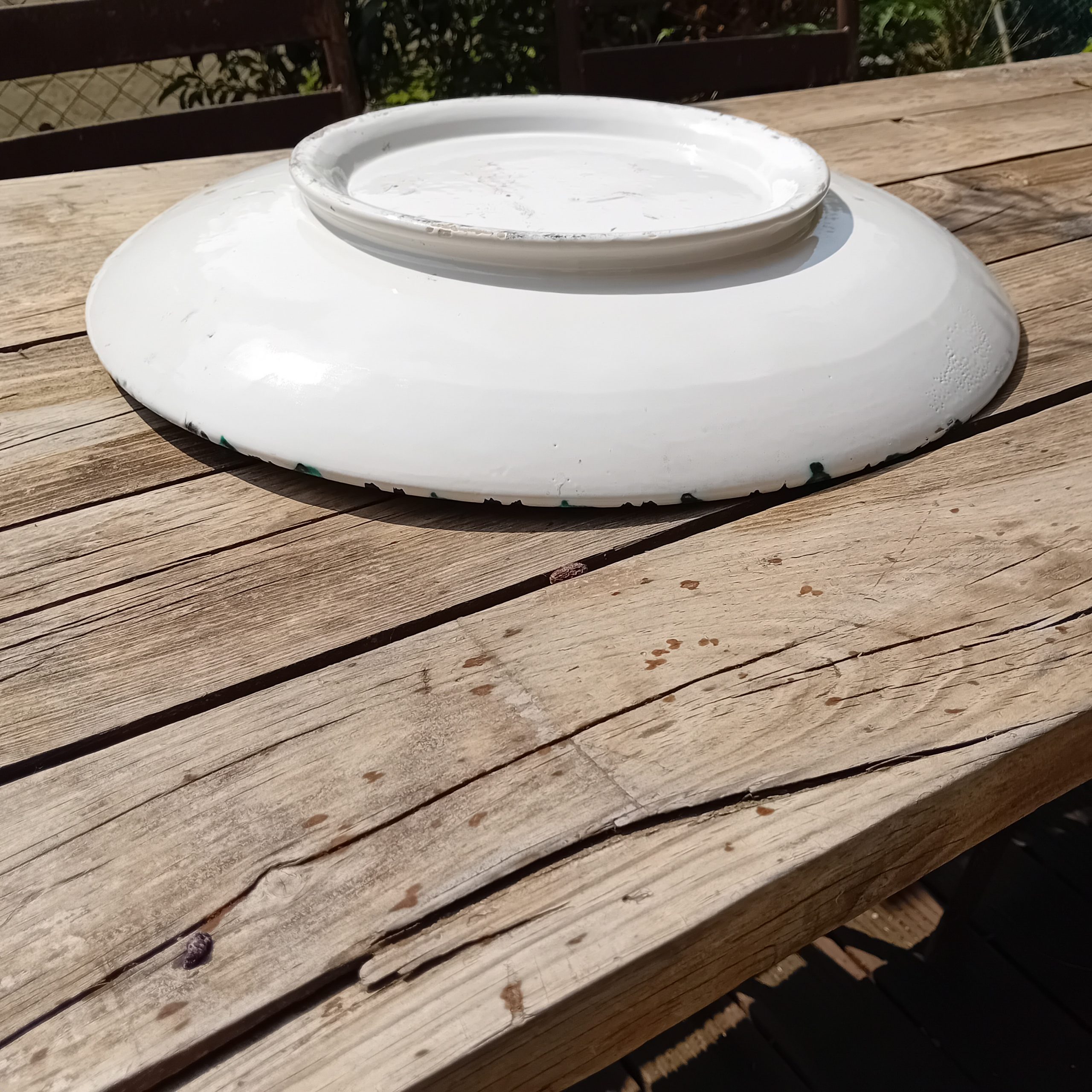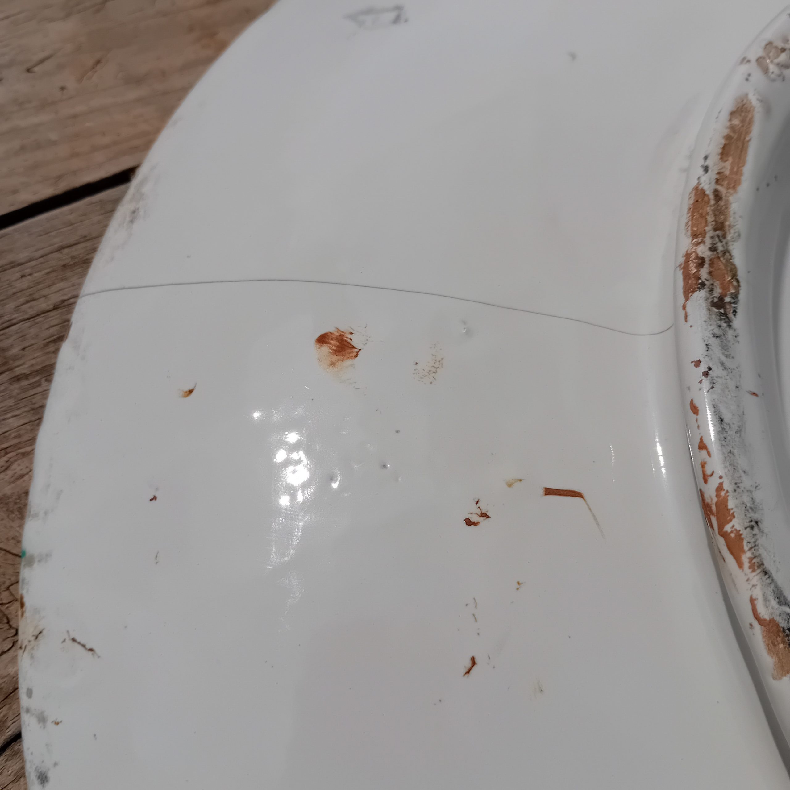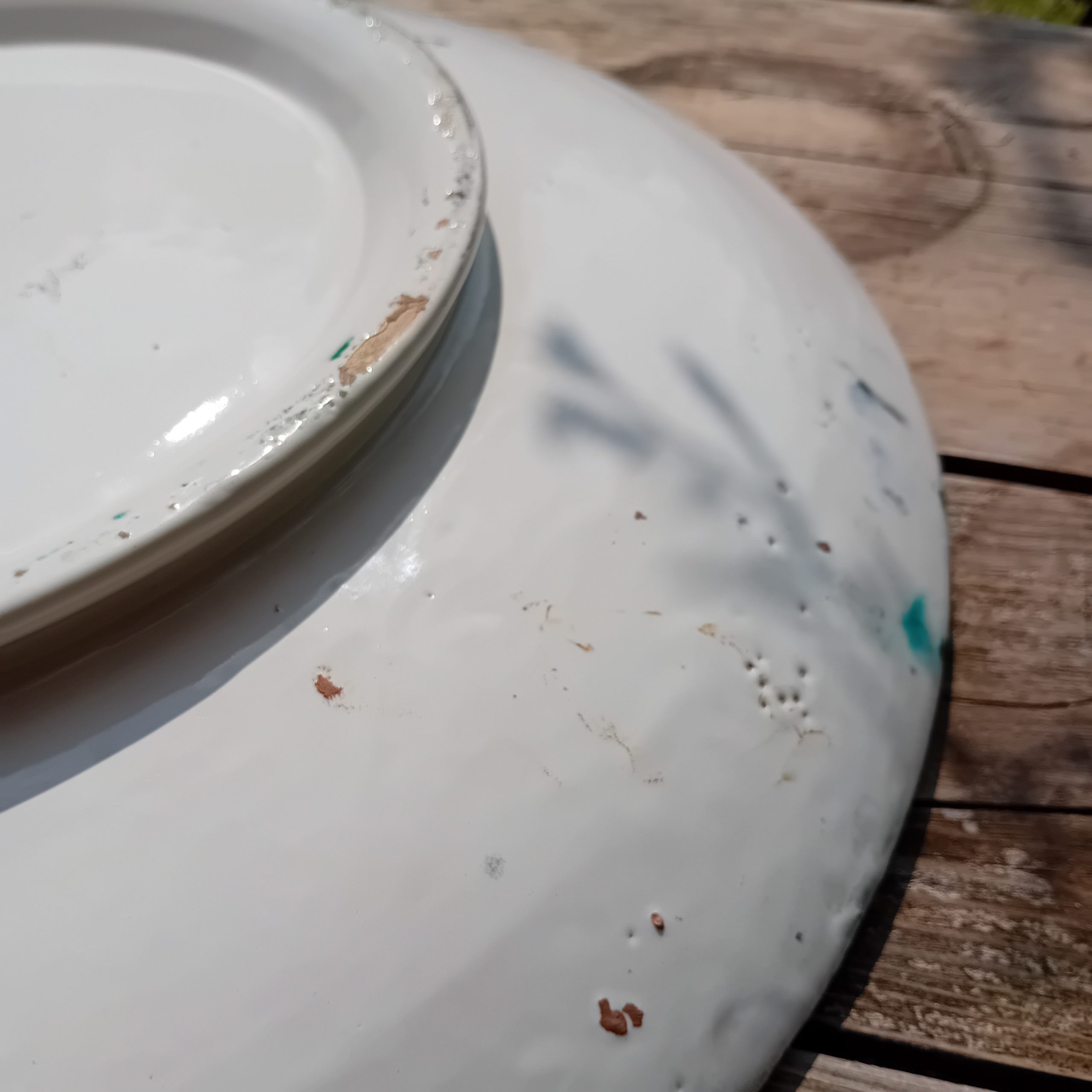La pièce présente un fêle de cuisson (d’origine, visible sur l’émail mais structurellement stable), qui n’enlève rien à son impact visuel et à sa rareté.