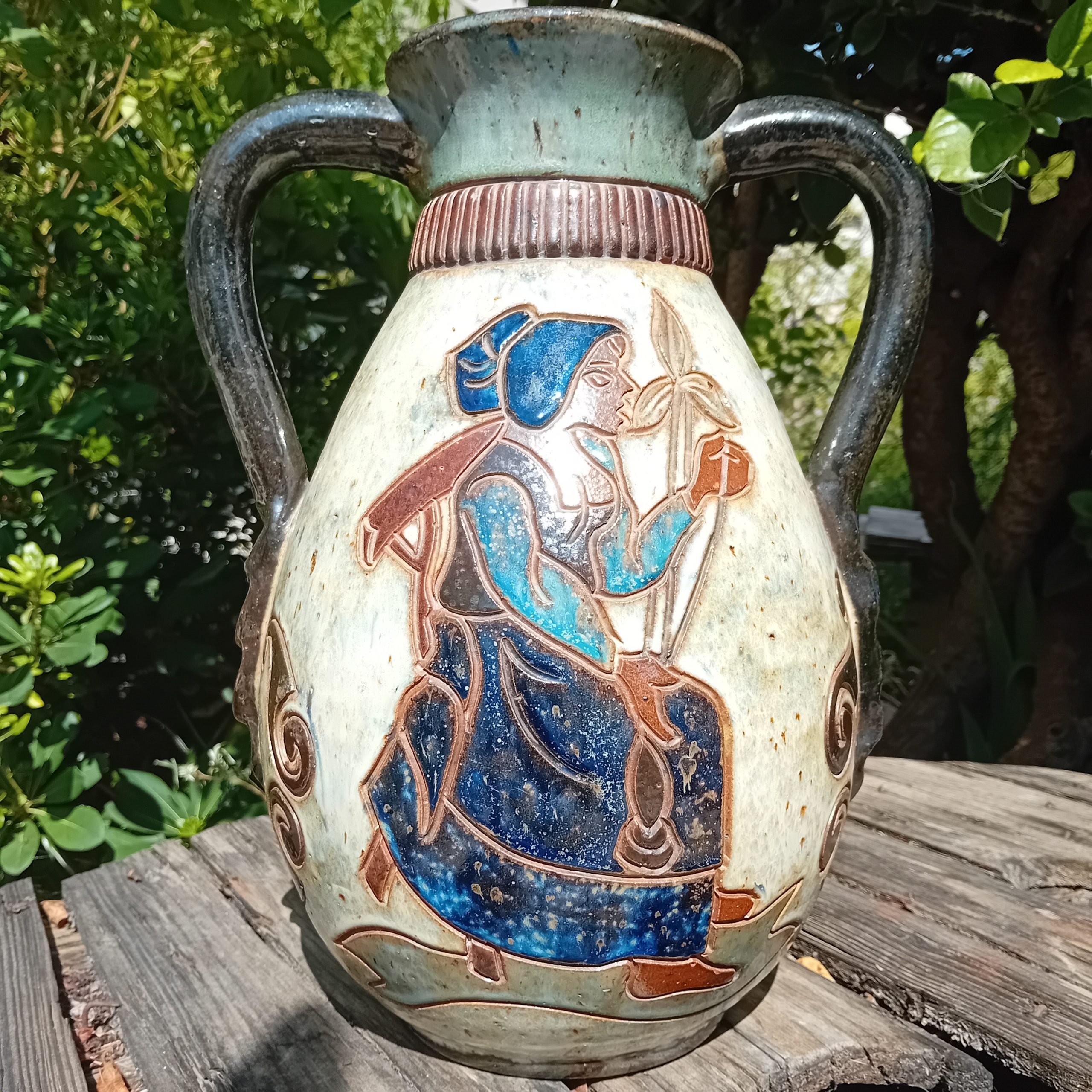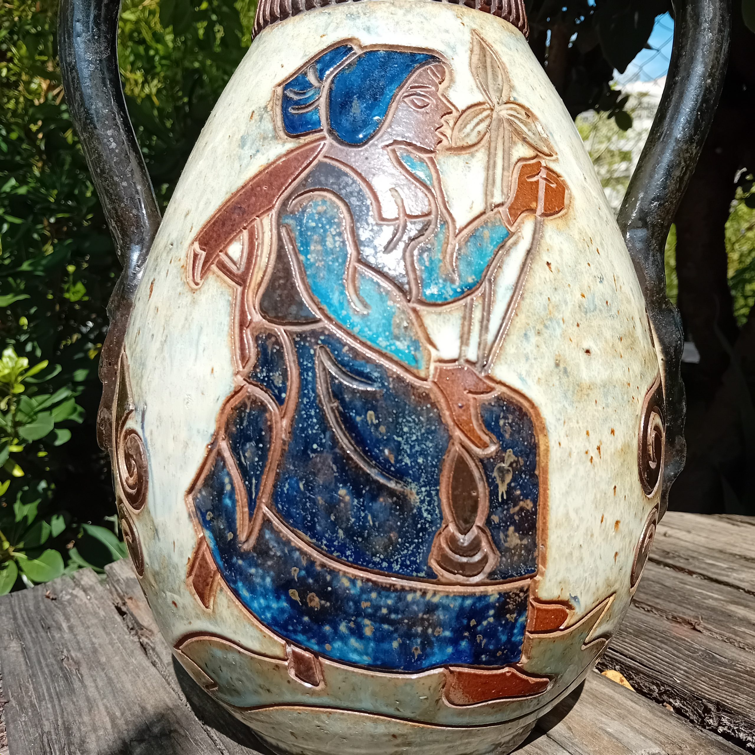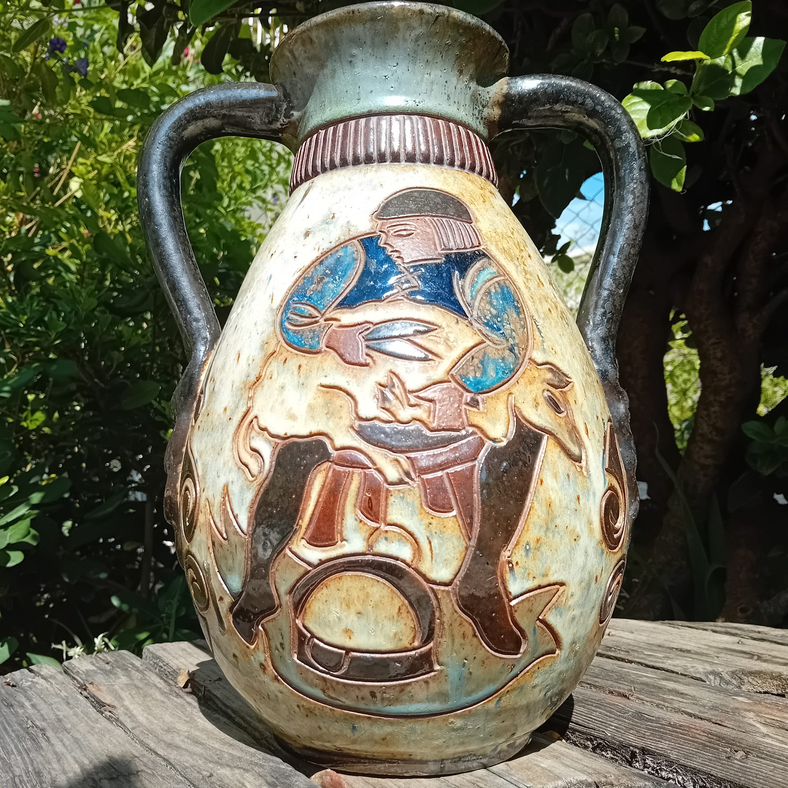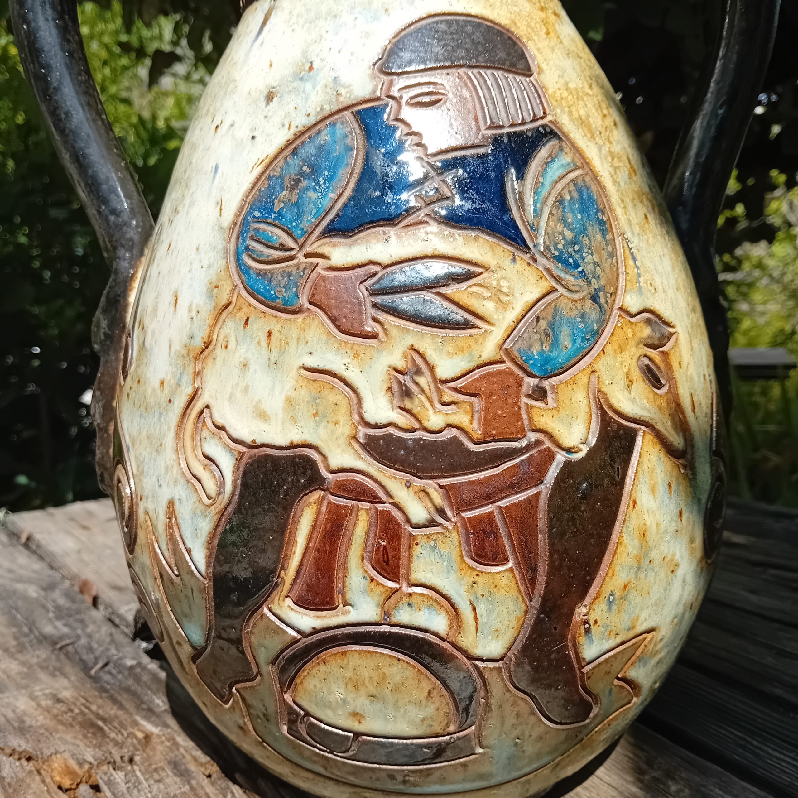 Grand vase a anses en grès de Bouffioulx signé Dubois – Scènes rurales