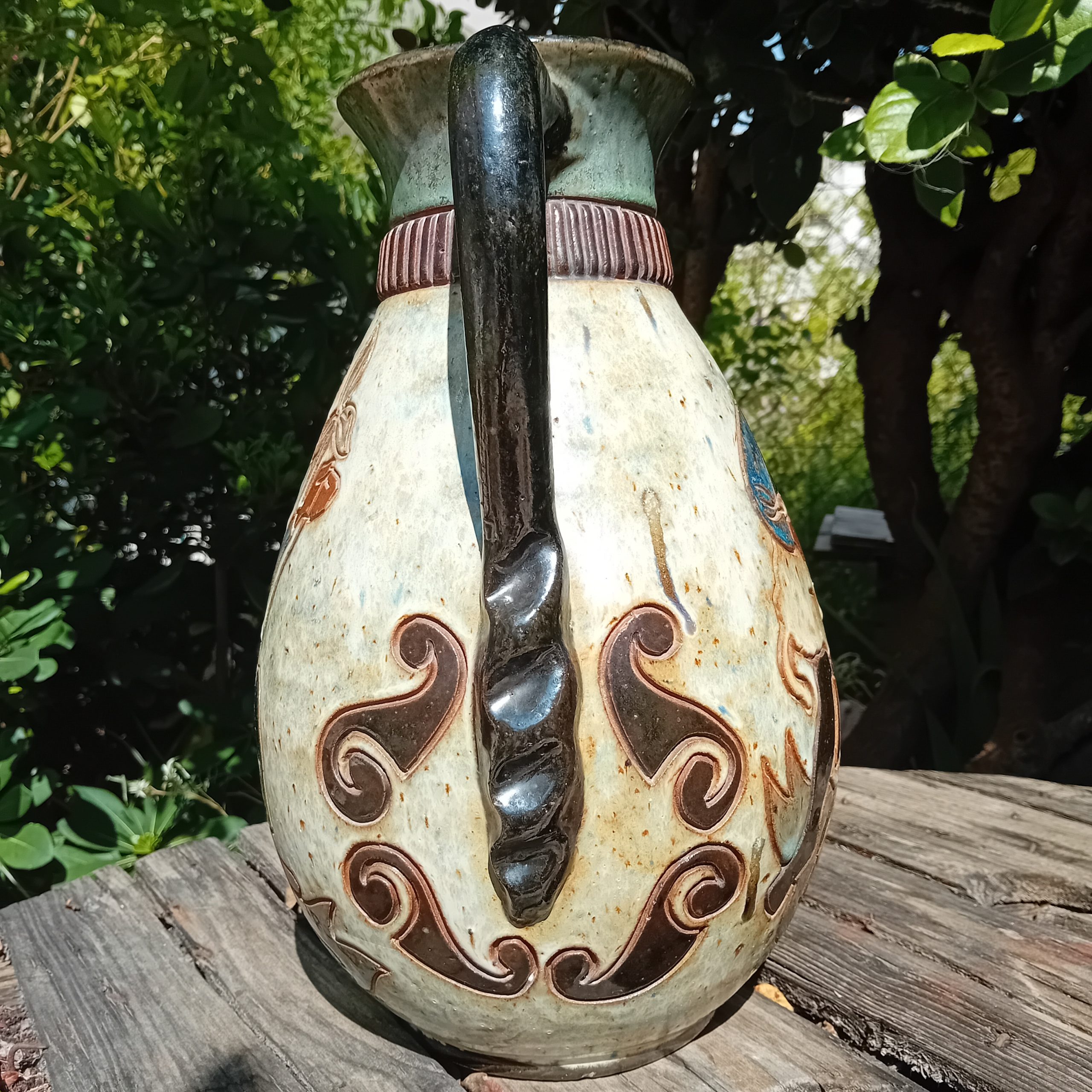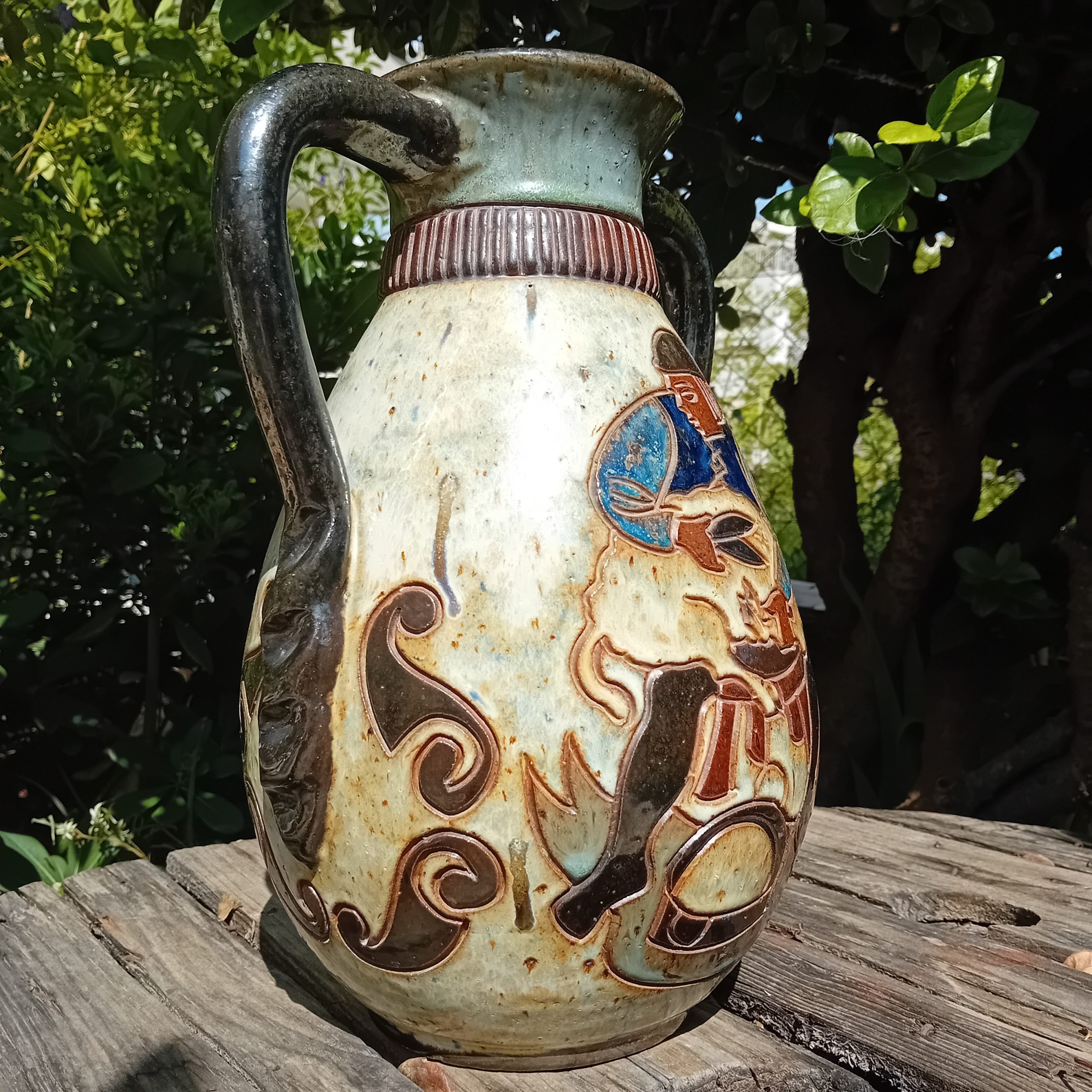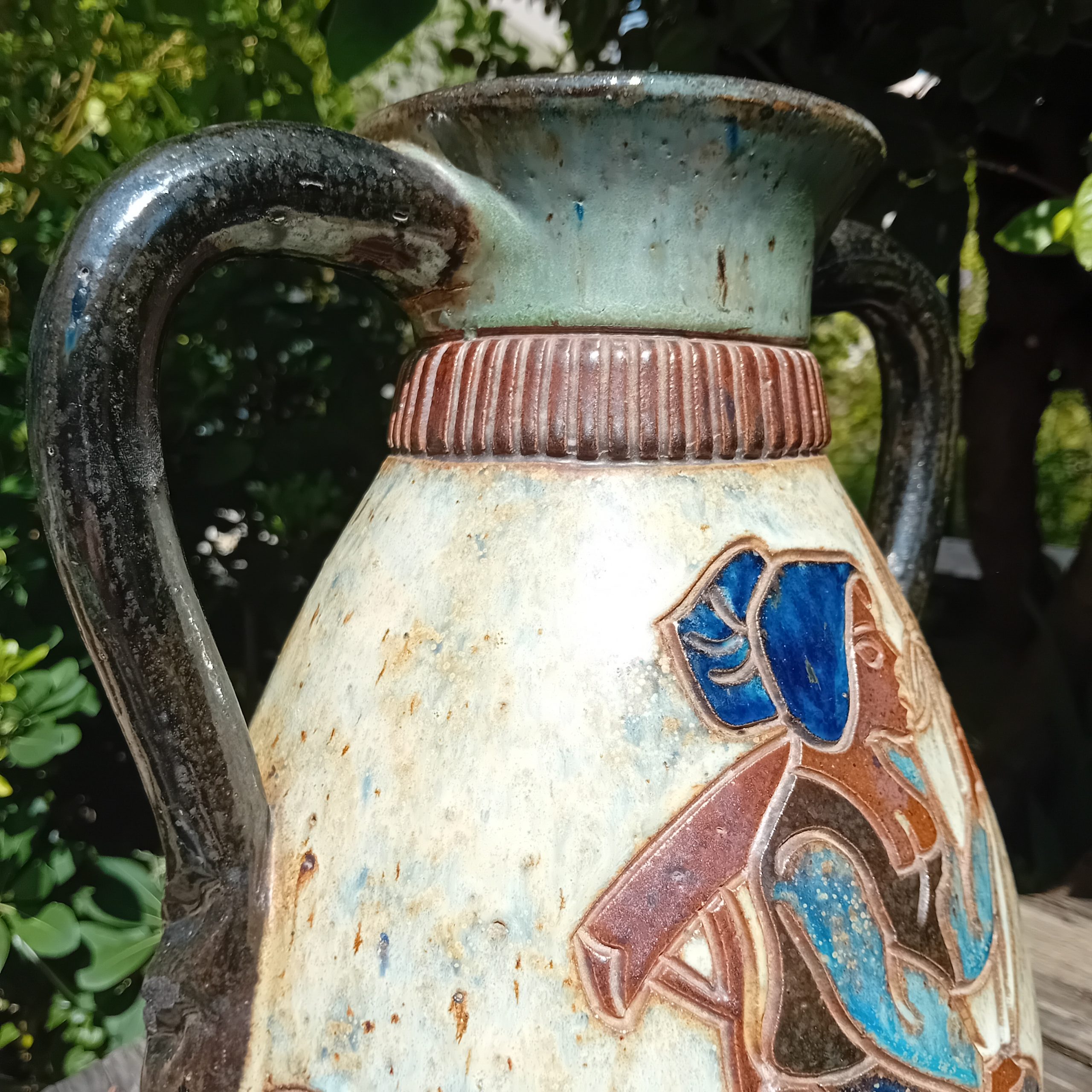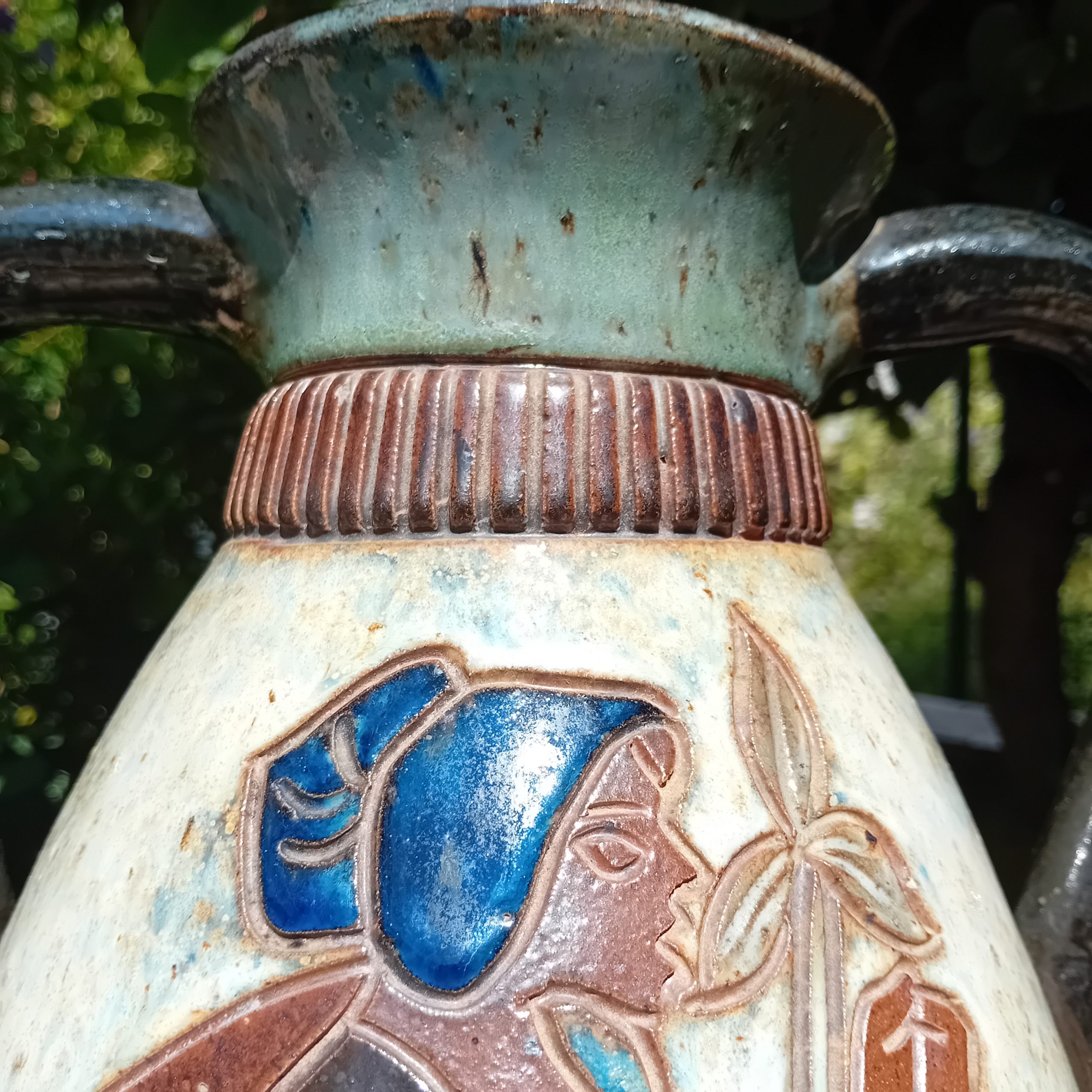Grand vase a anses en grès de Bouffioulx signé Dubois – Scènes rurales