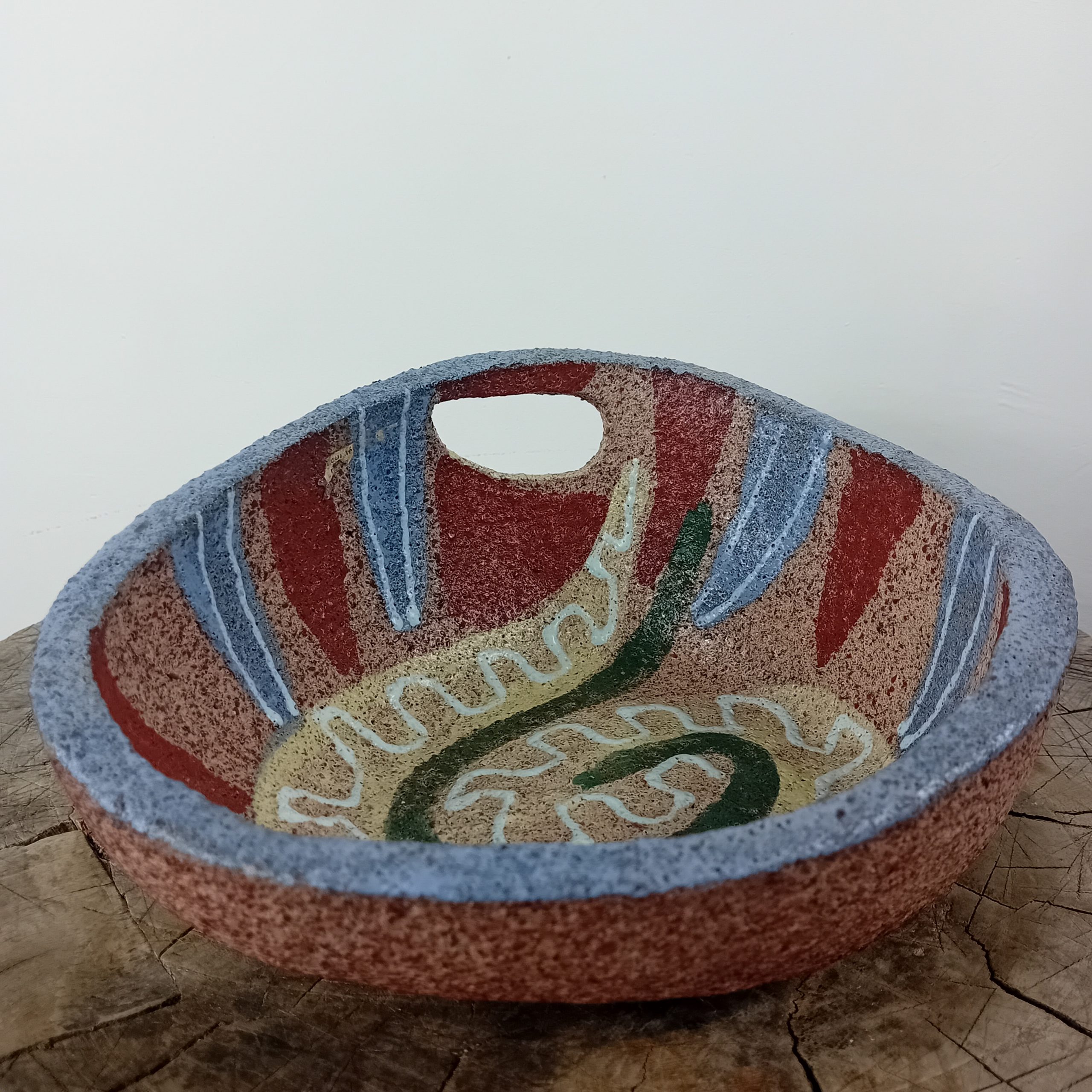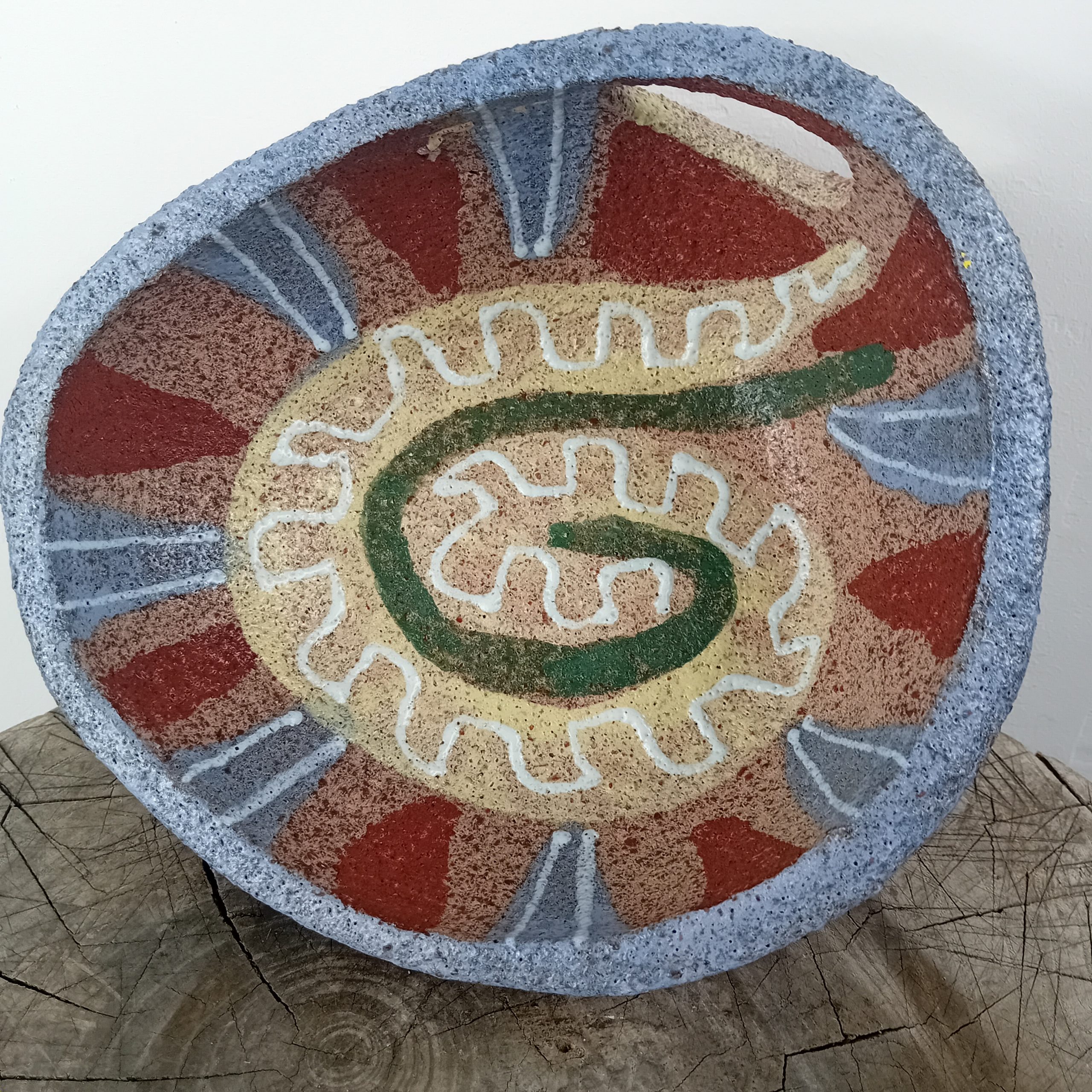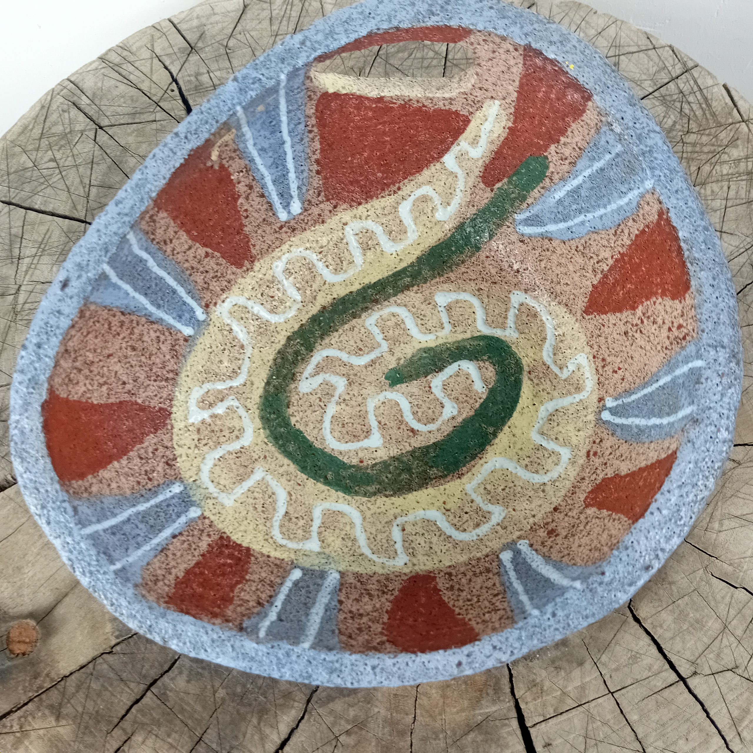 Gros vide Poche en terre chamottée ACCOLAY 1967 signé Serpent stylisé