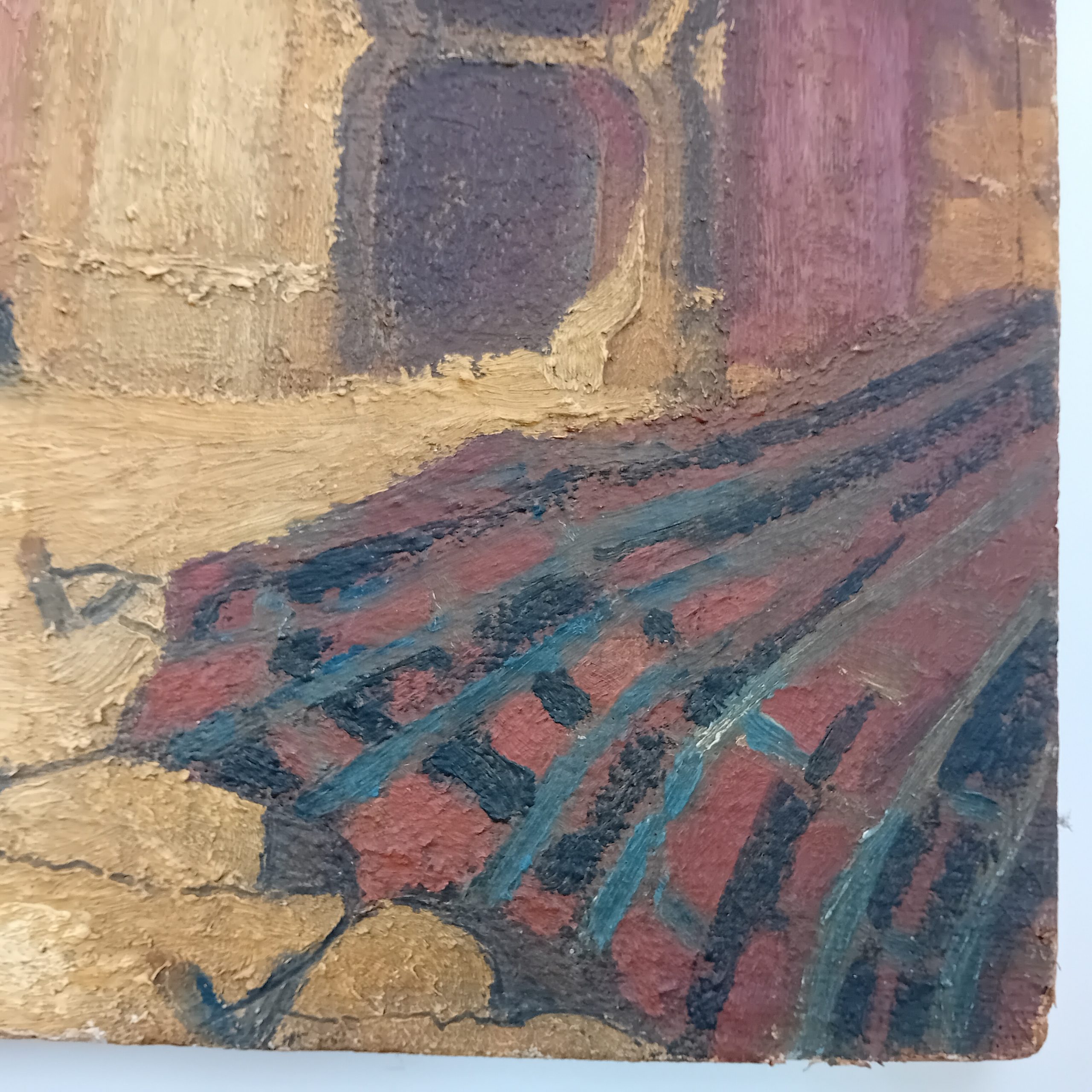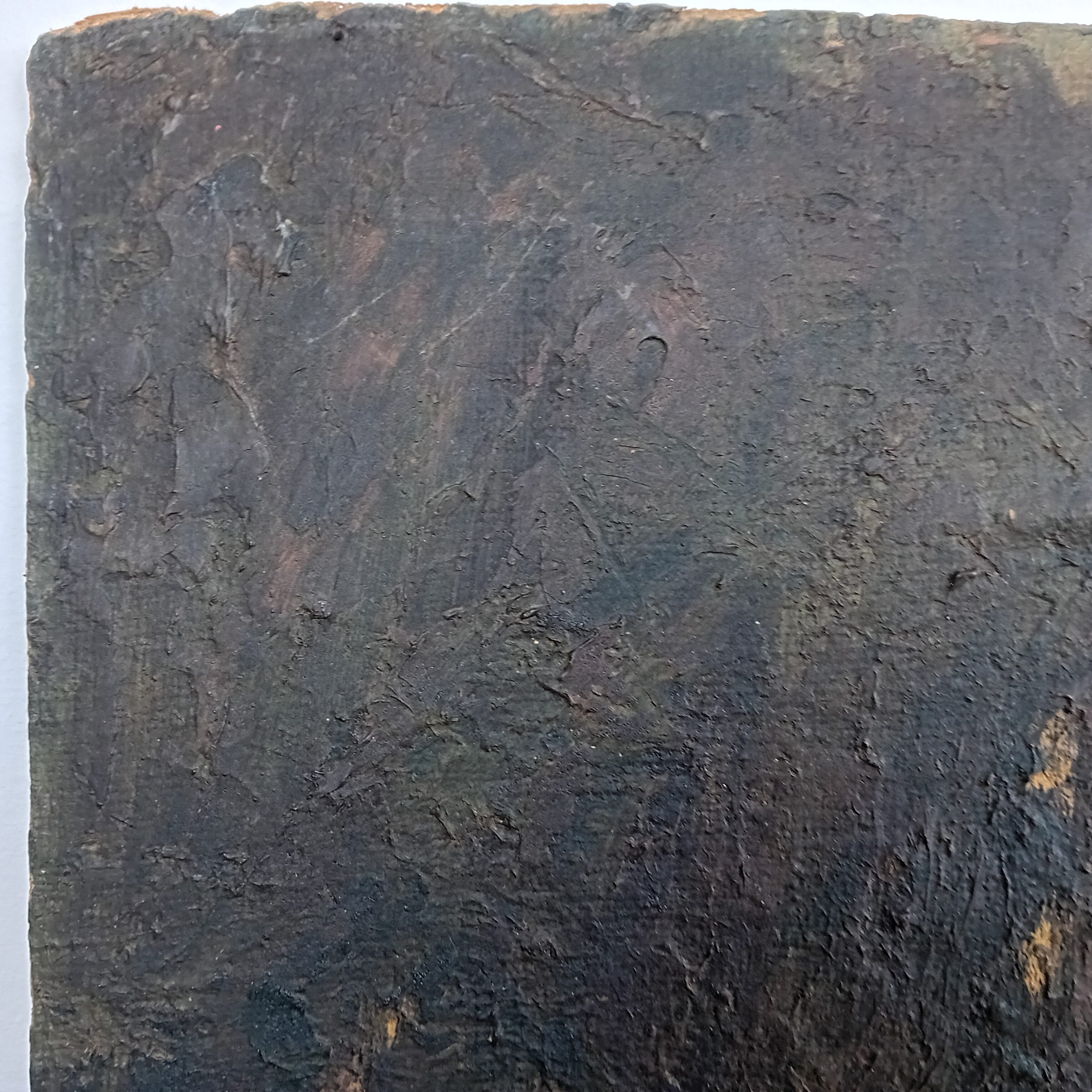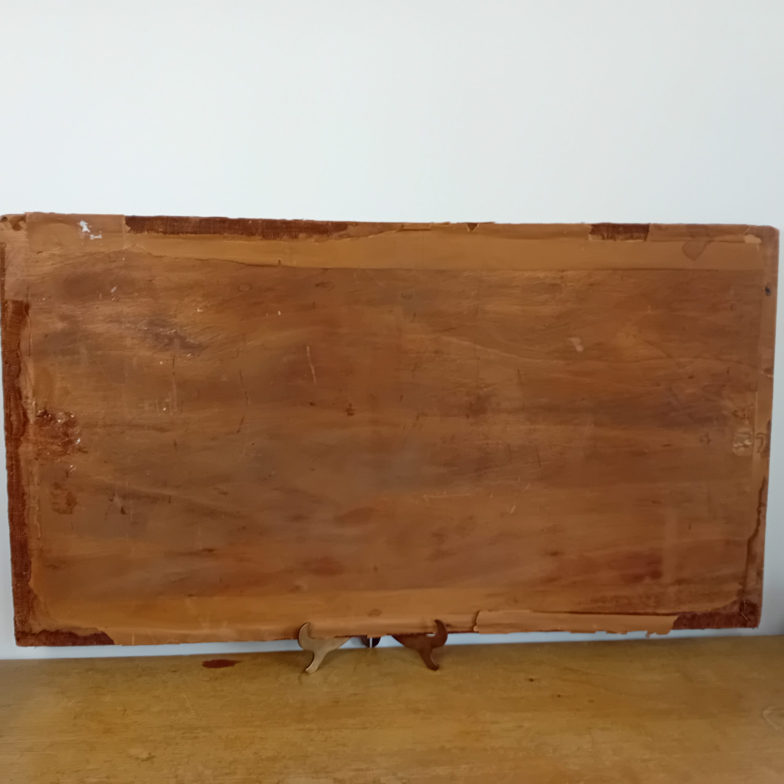 La toile est marouflée sur un panneau de bois.