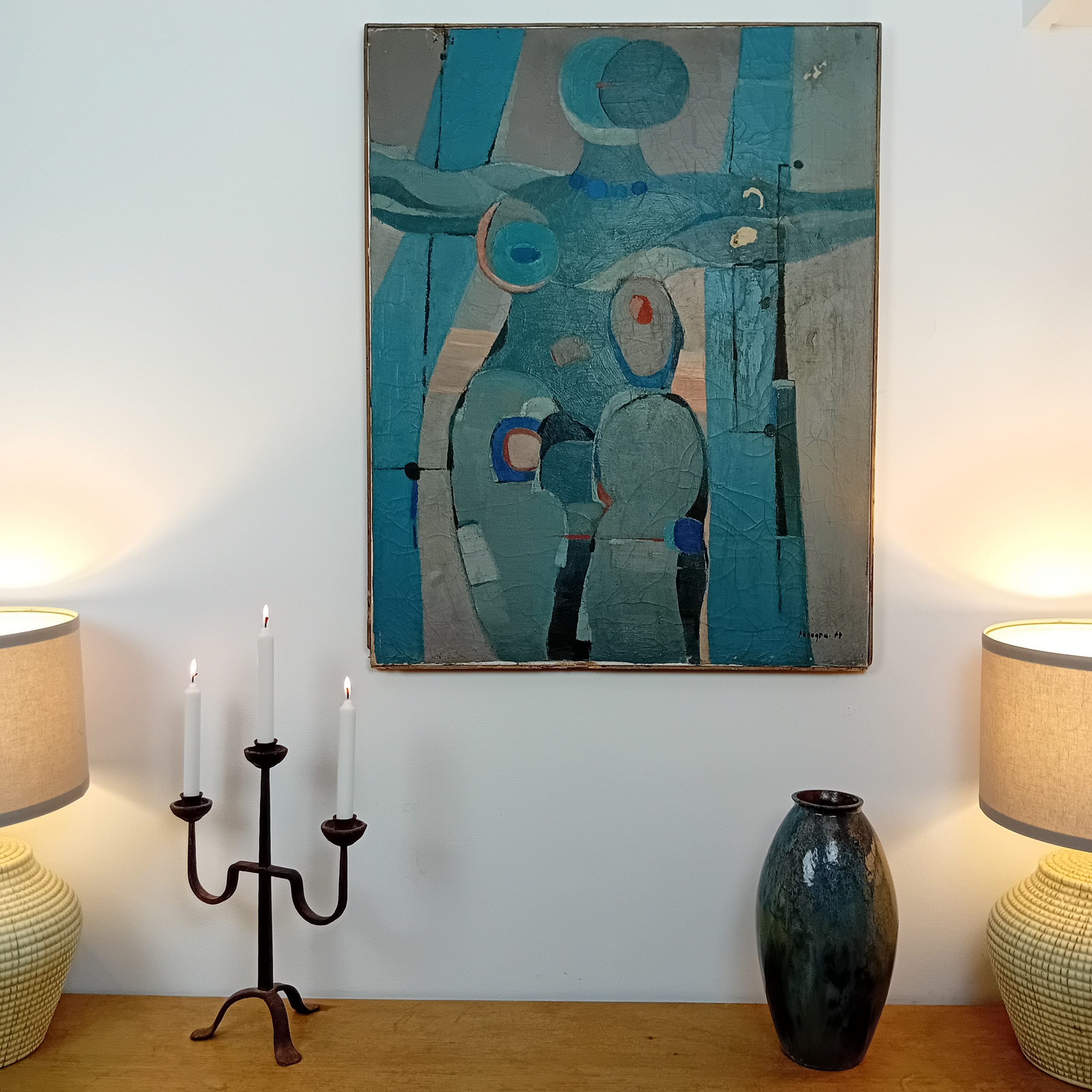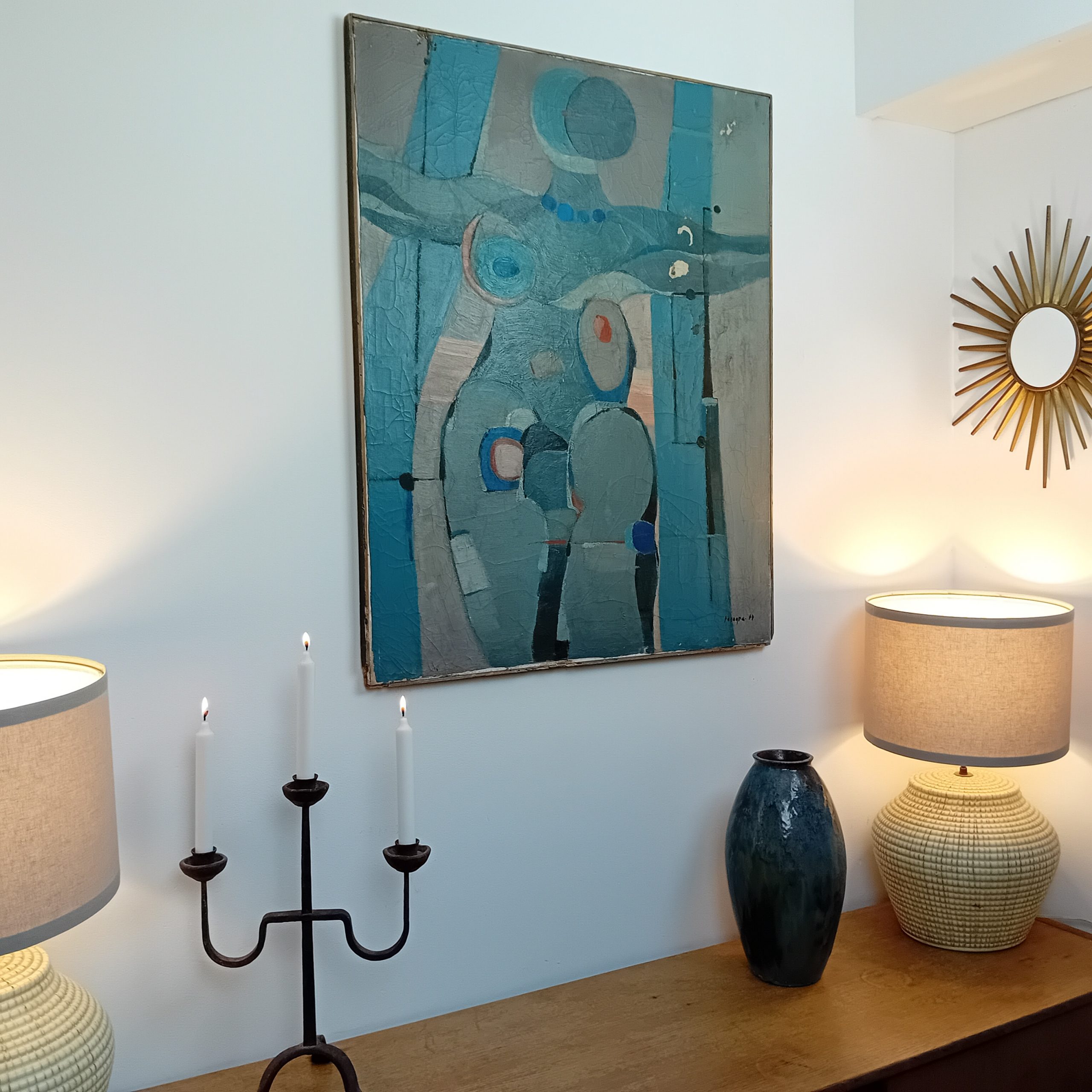 Une huile sur toile datée de 1974 et signée de Tanagra.