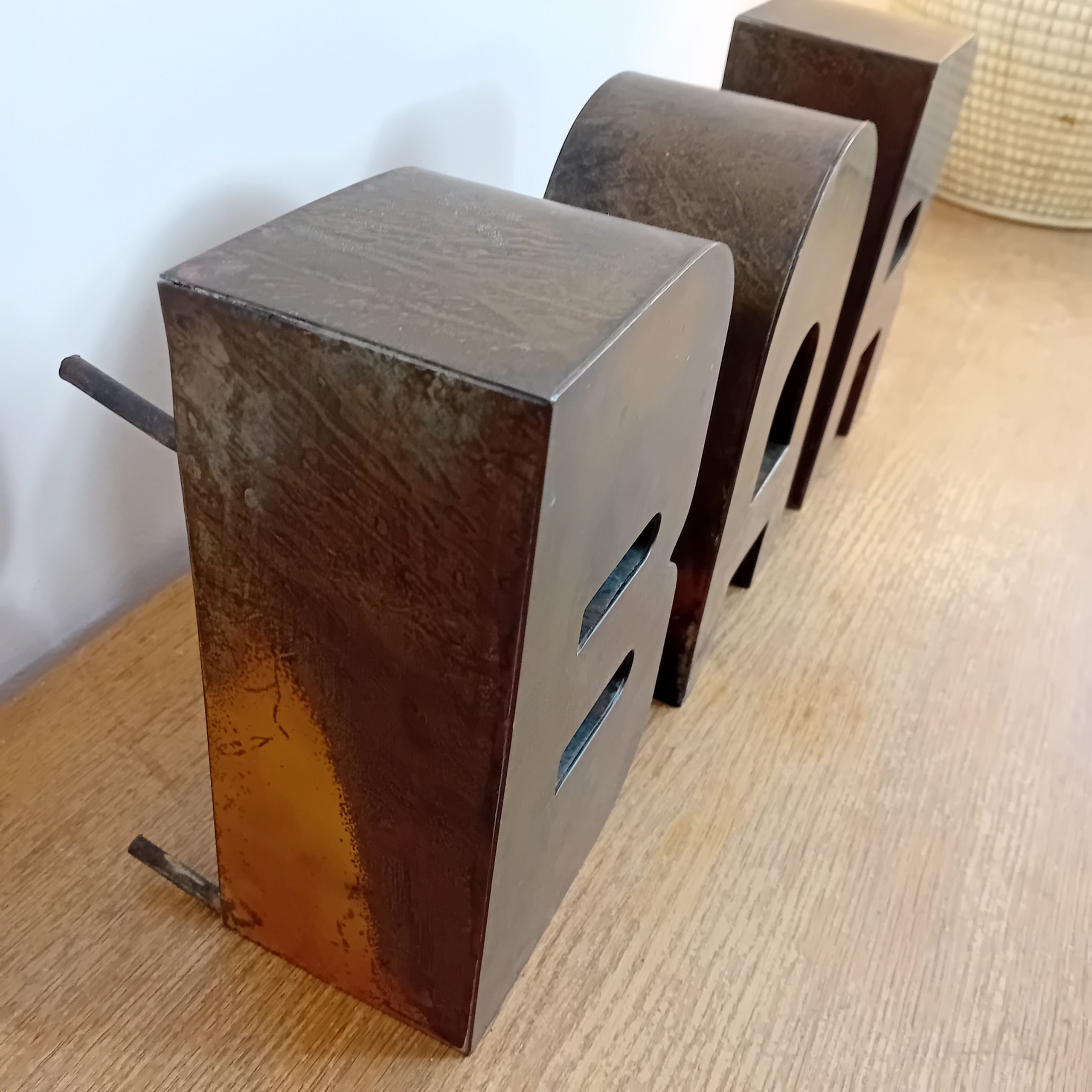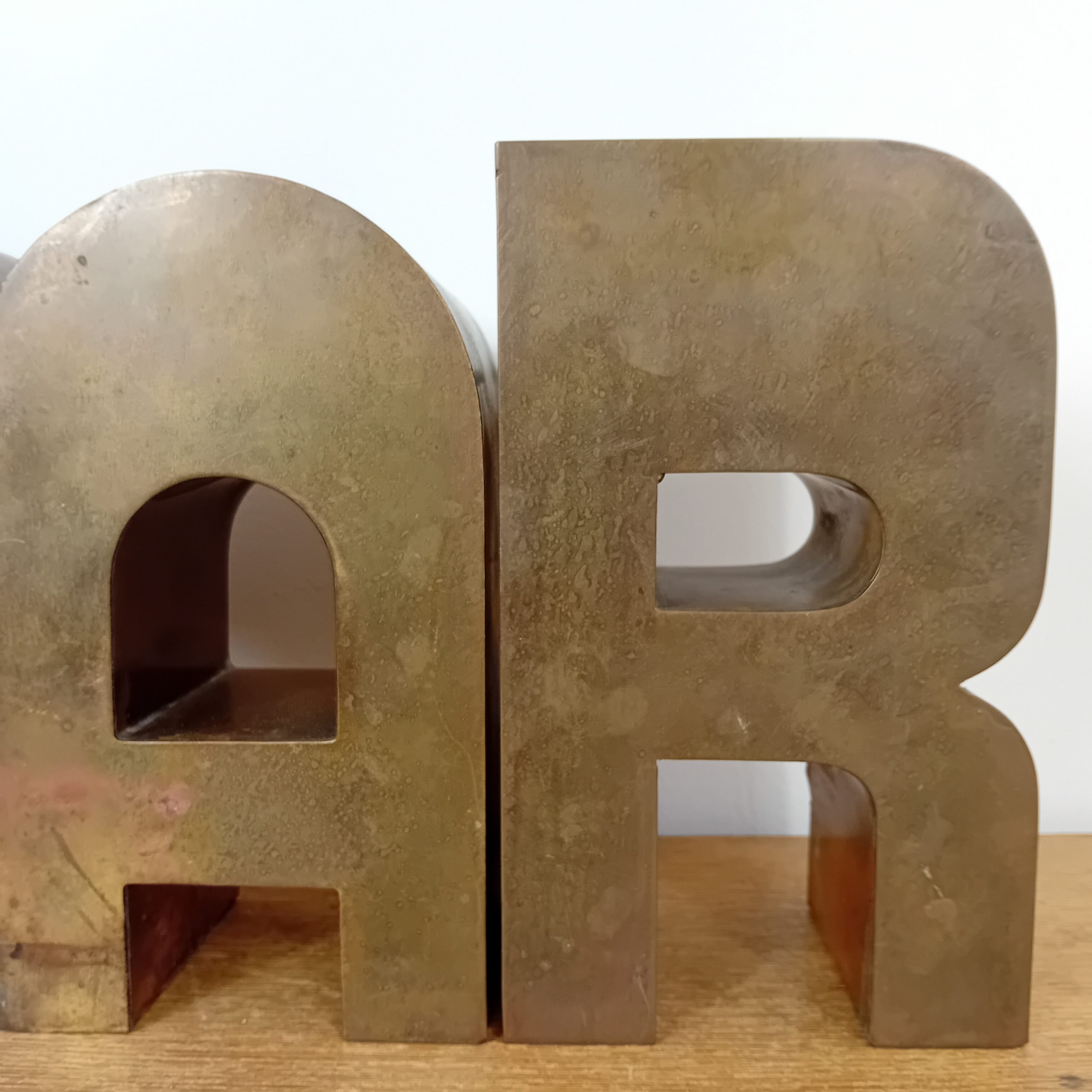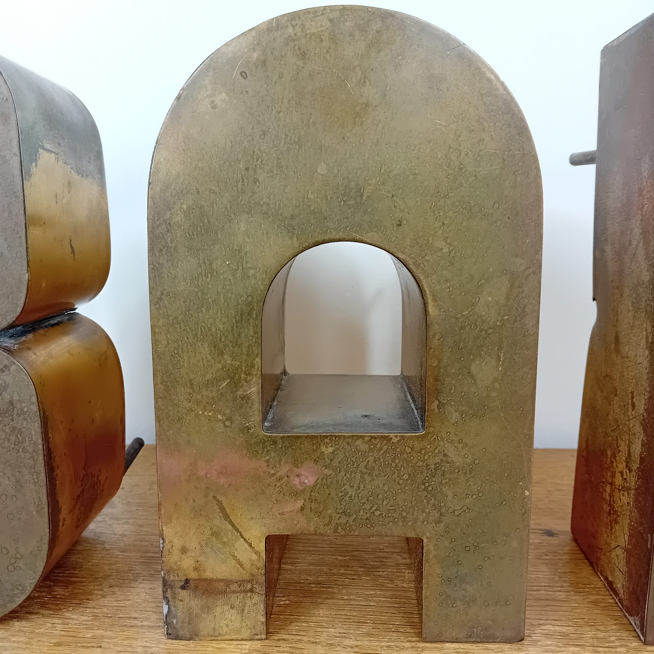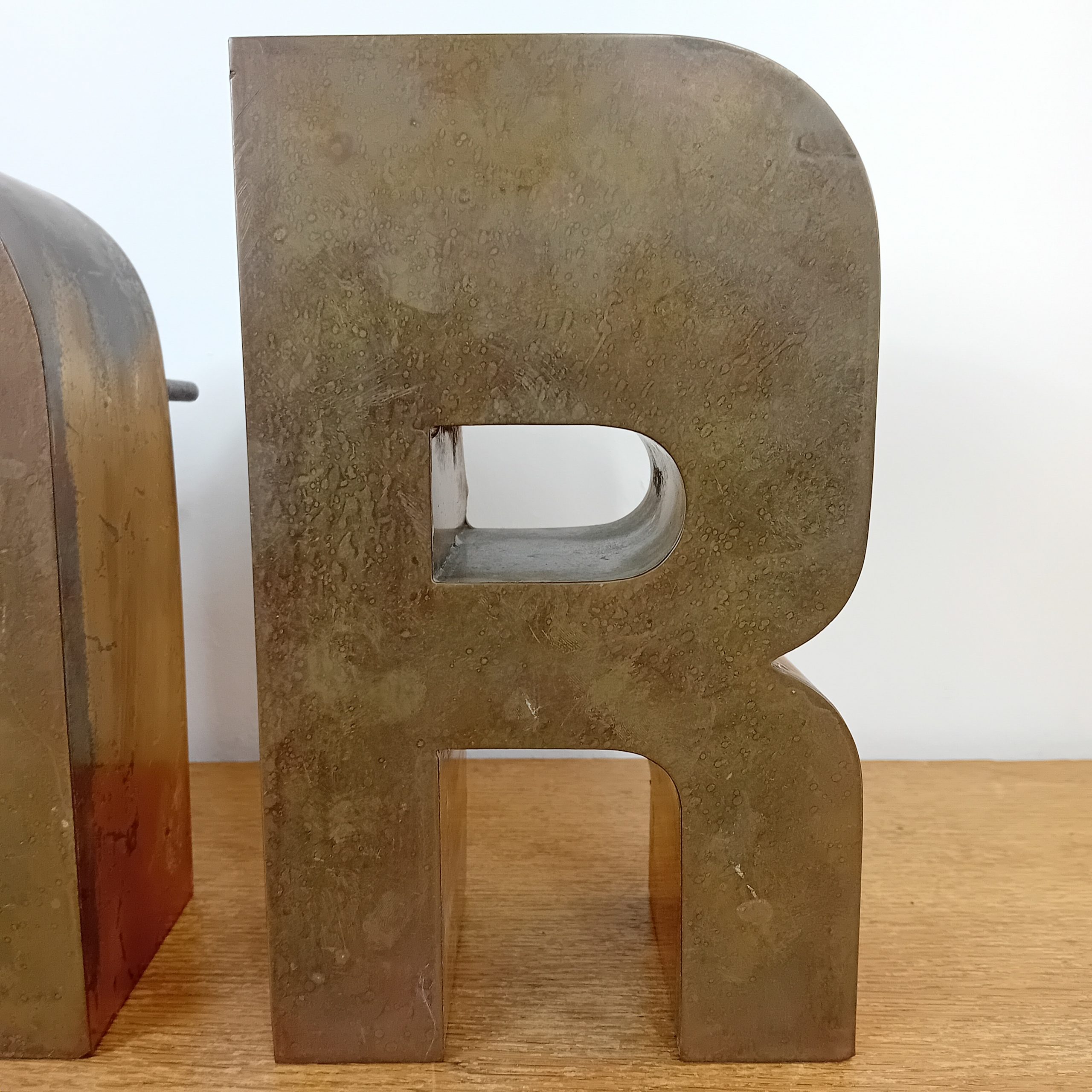 Un bel ensemble de 3 lettres BAR en laiton, laissé dans sa patine.