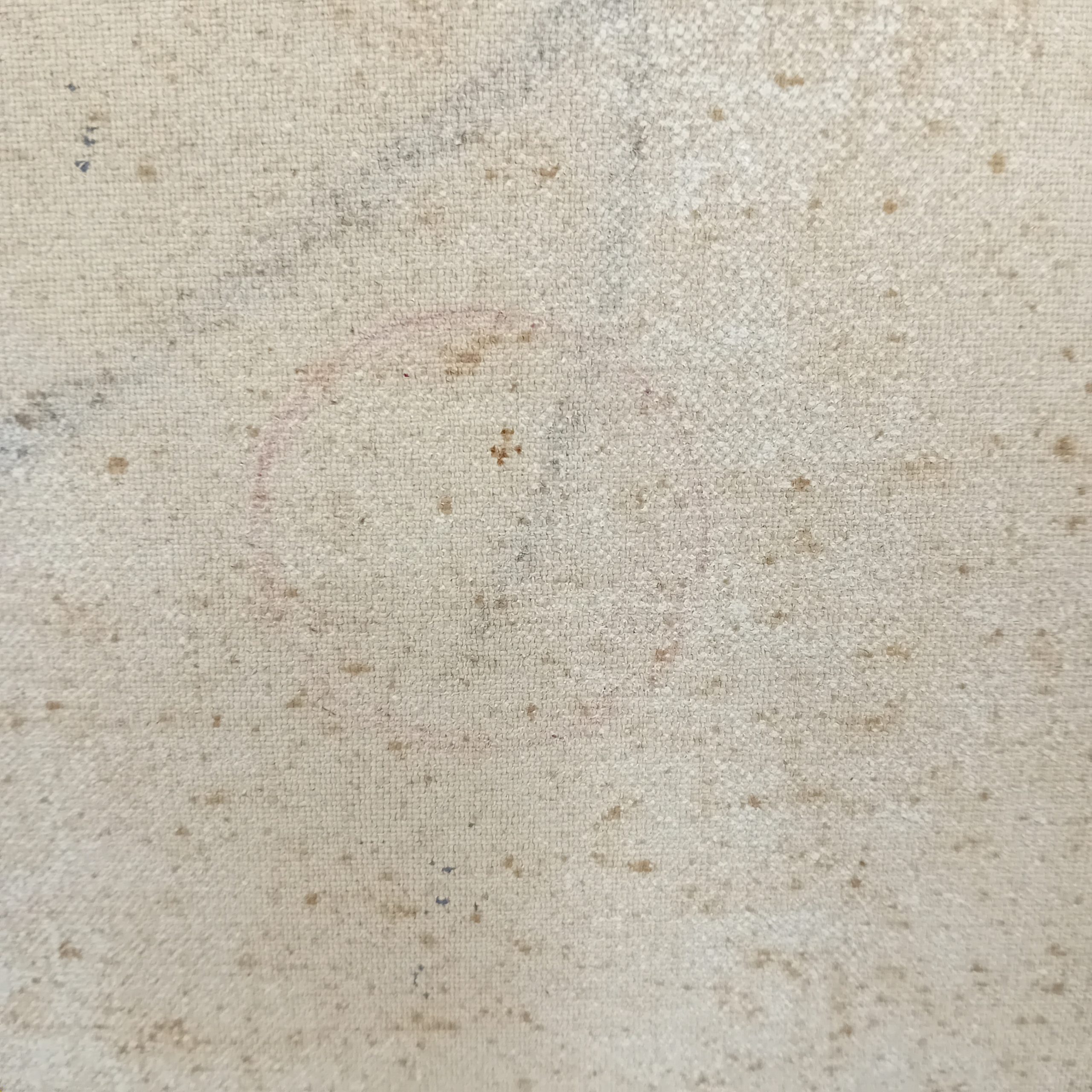 Au dos, une étiquette d’exposition des artistes de l’Afrique française, accompagnée d’un tampon rouge rond. Ces éléments confirment une présentation officielle de l’œuvre.