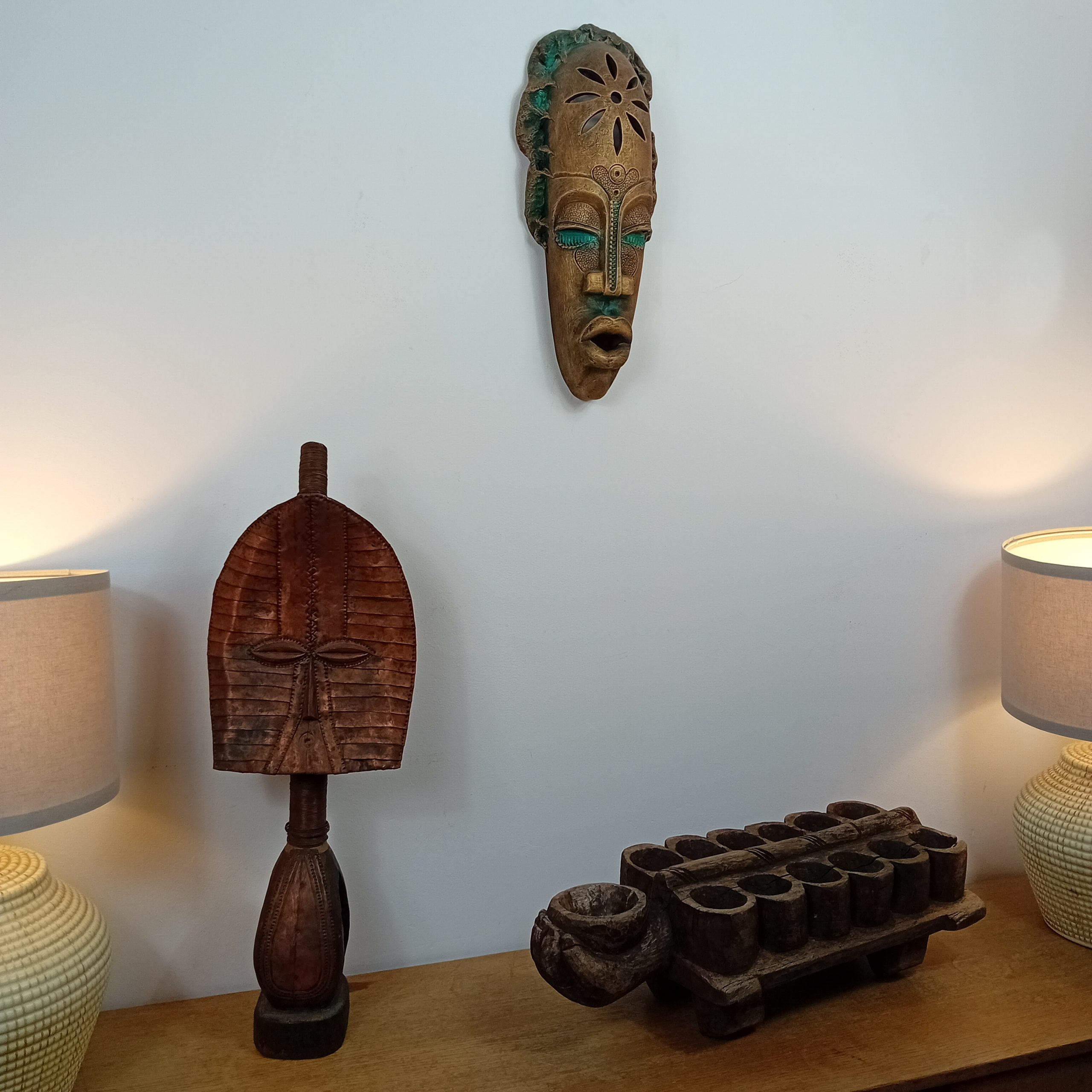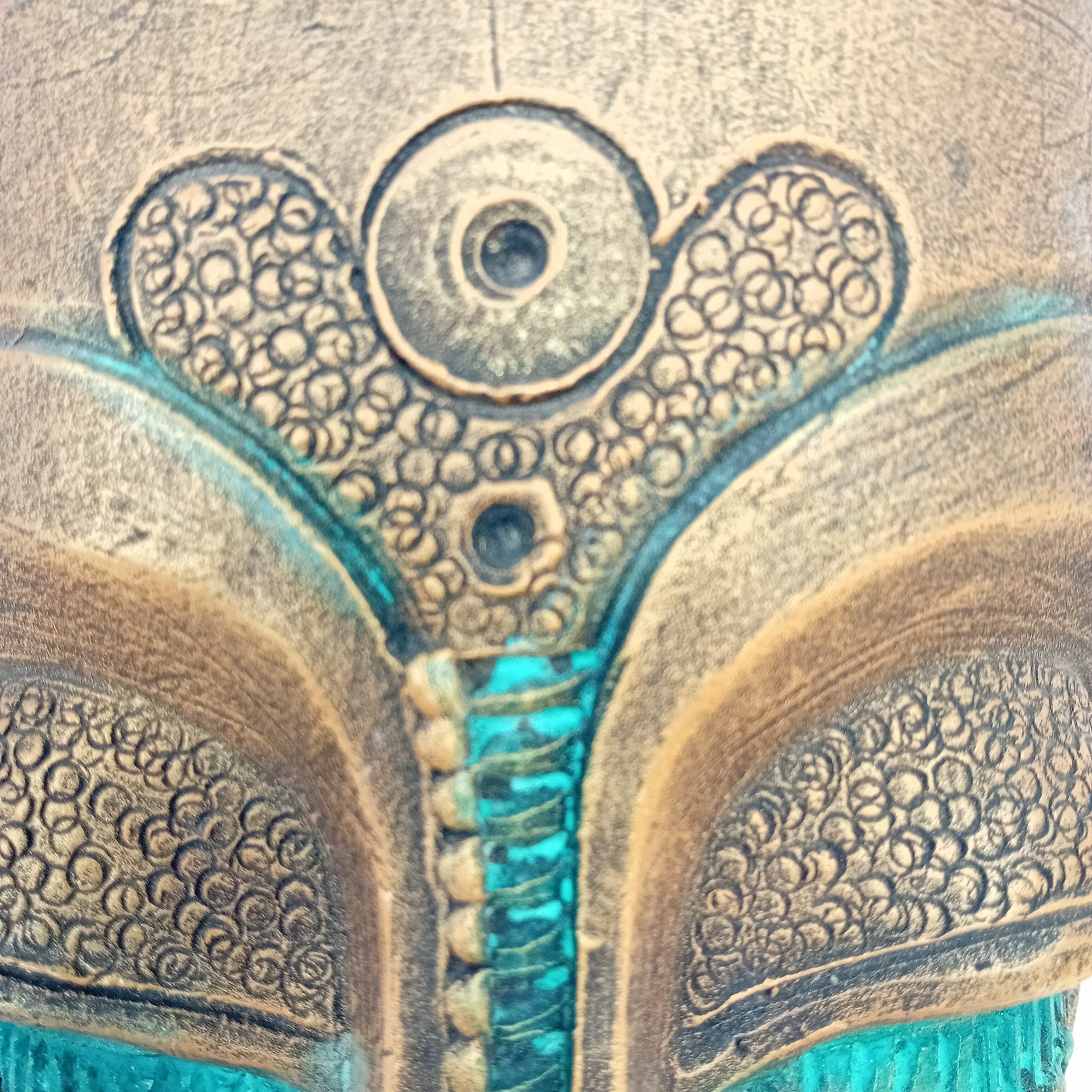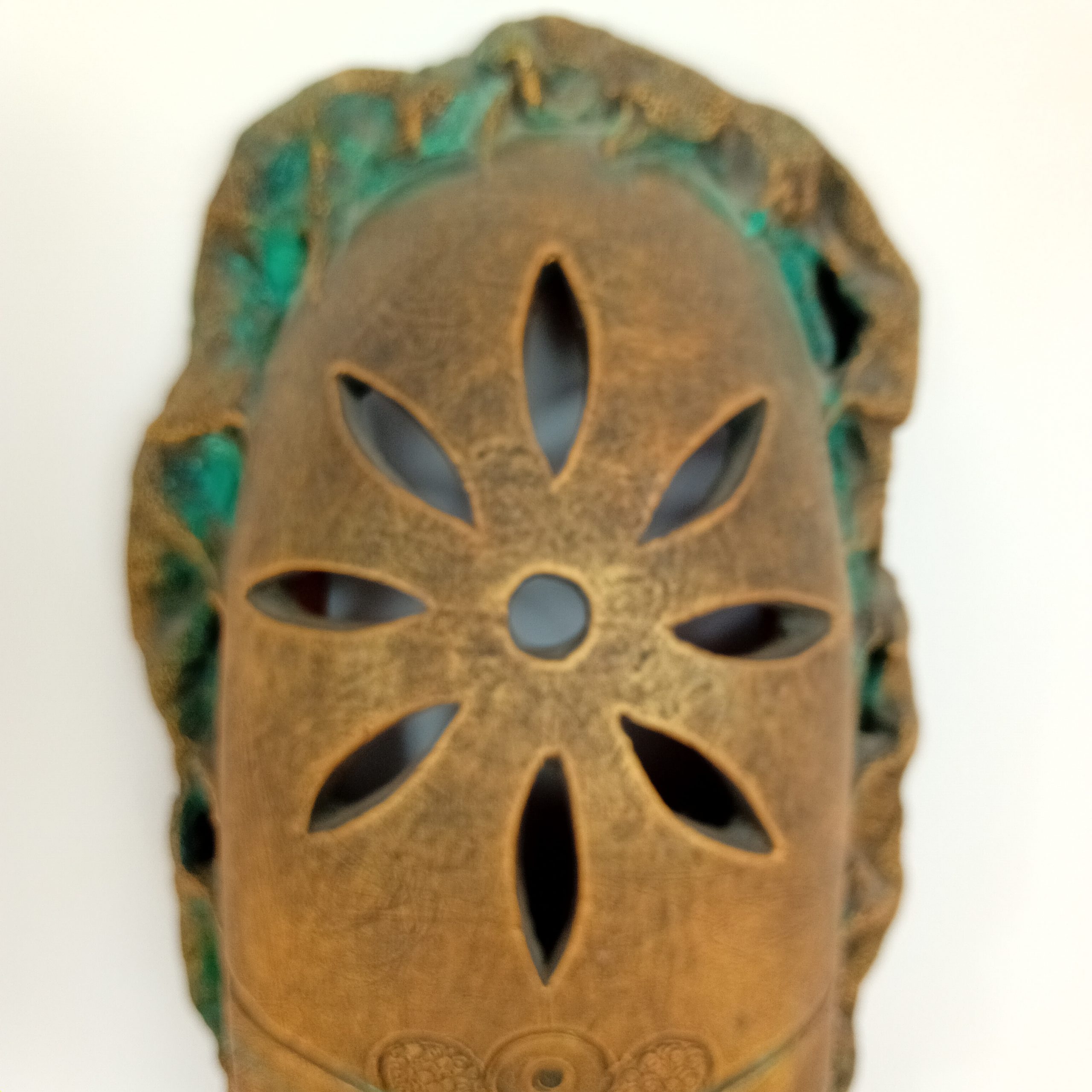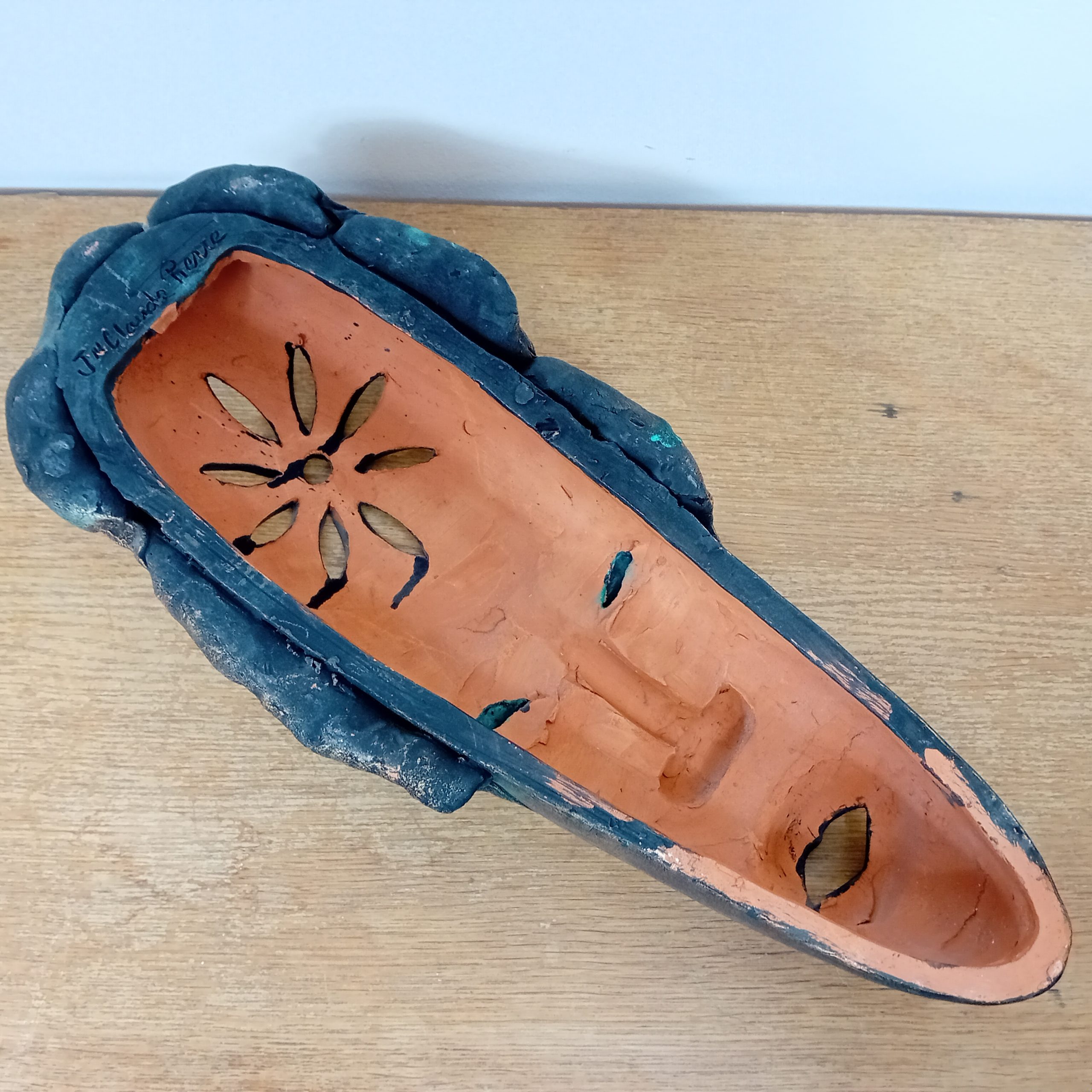 Un grand masque Africain en céramique ajouré et incisé de motifs géométriques pouvant servir d’applique murale.