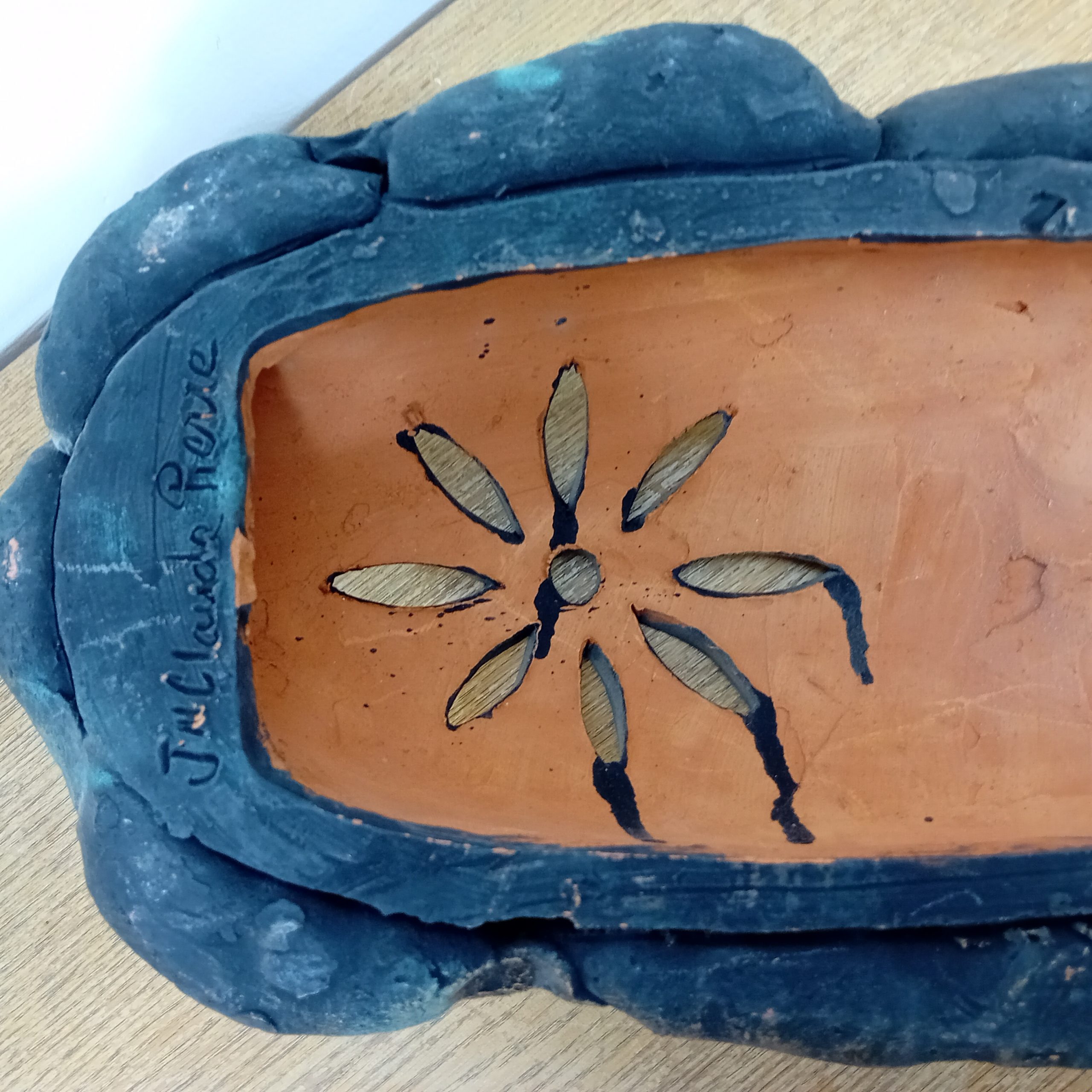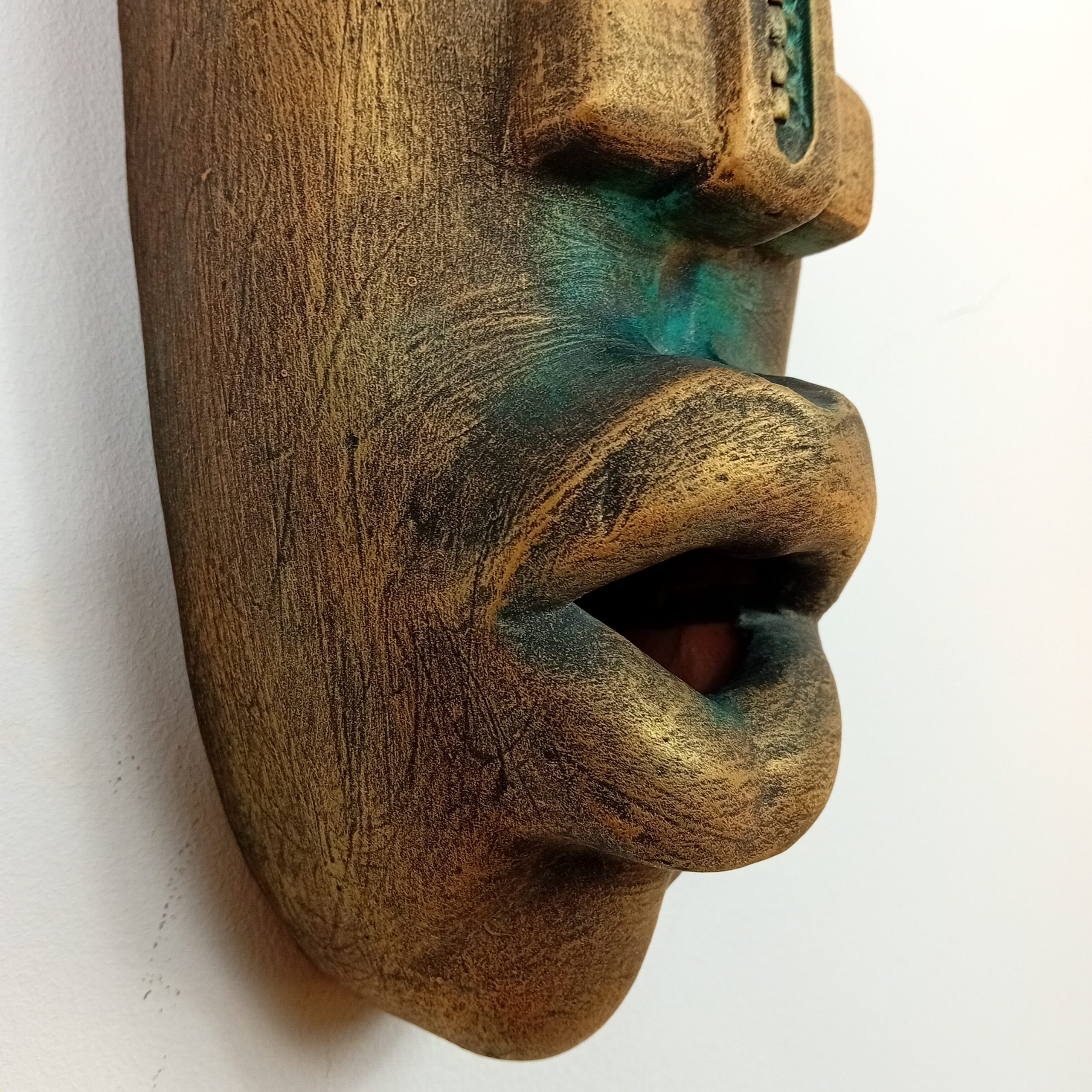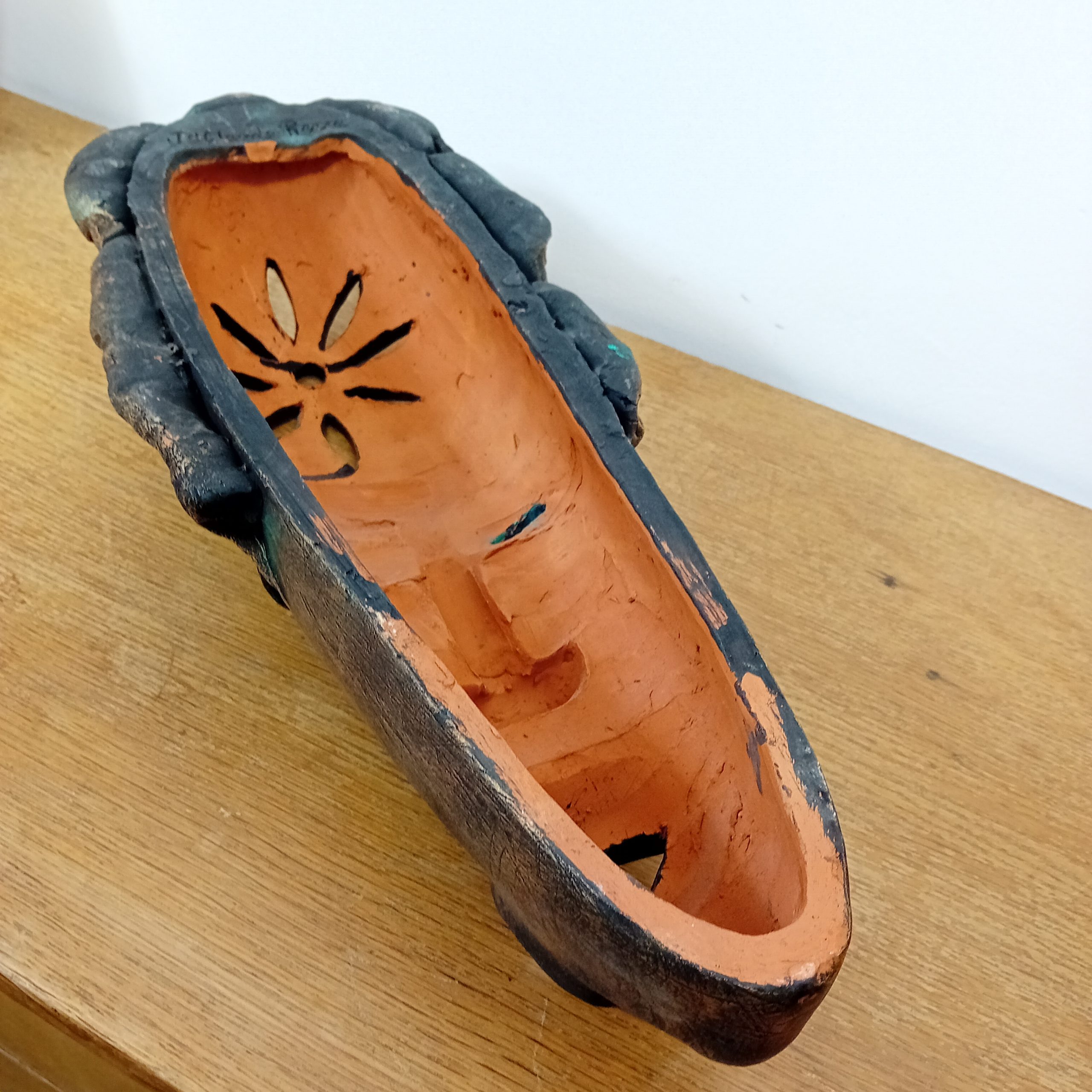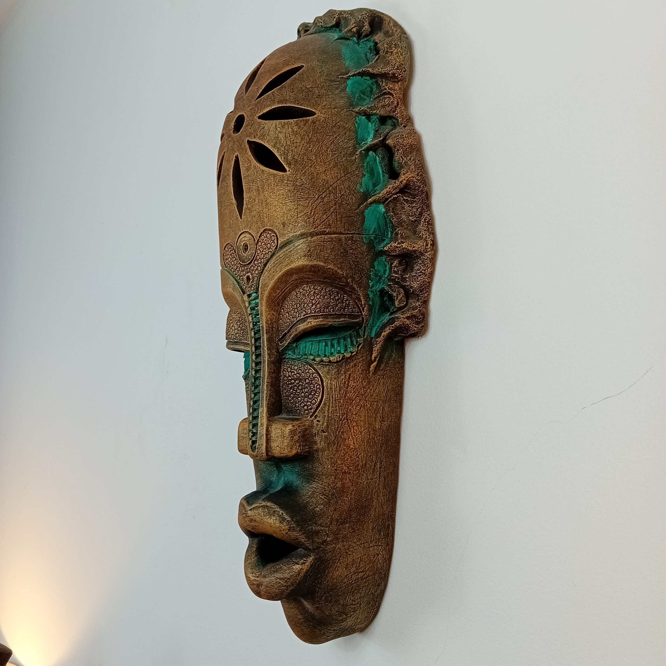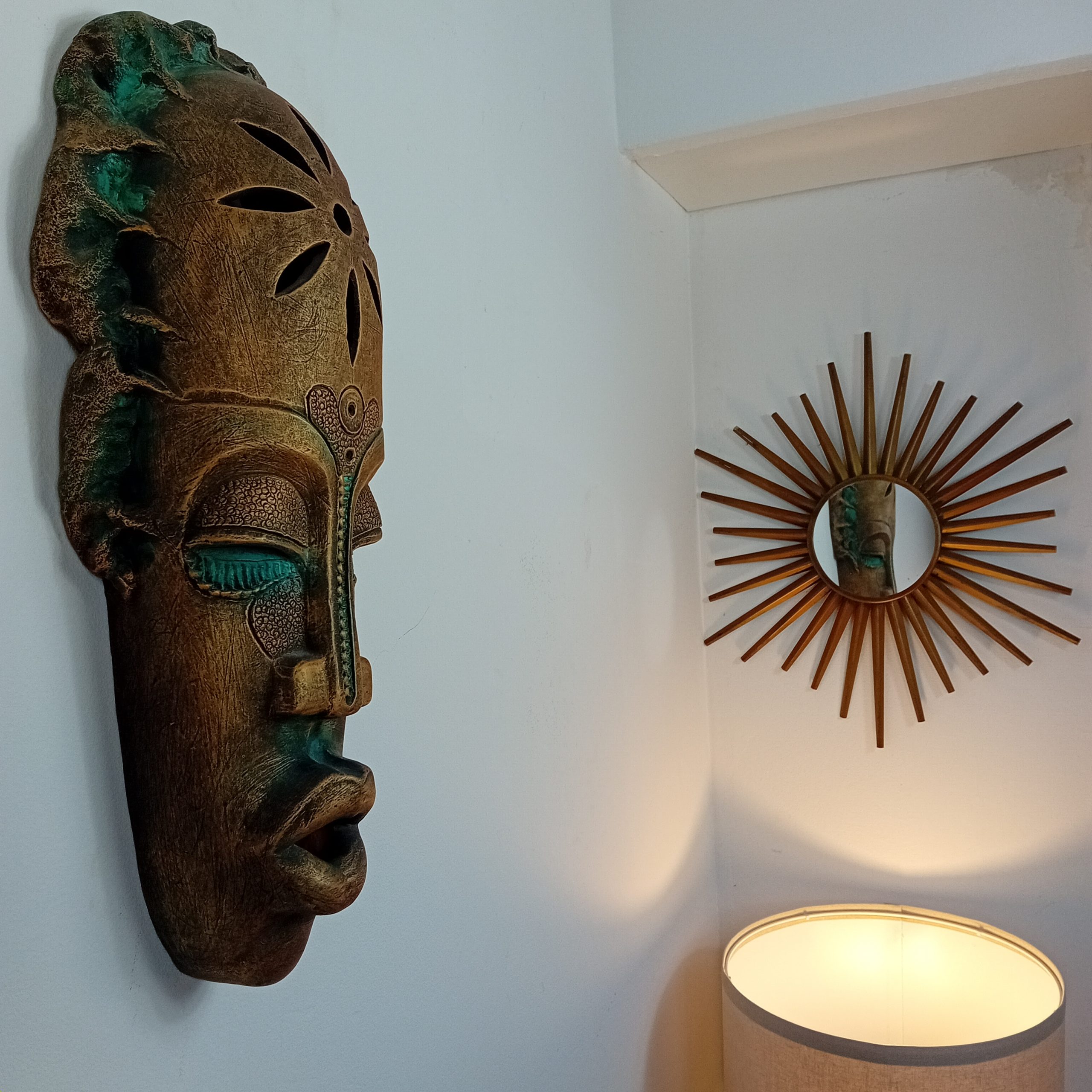 Un grand masque Africain en céramique ajouré et incisé de motifs géométriques pouvant servir d’applique murale.