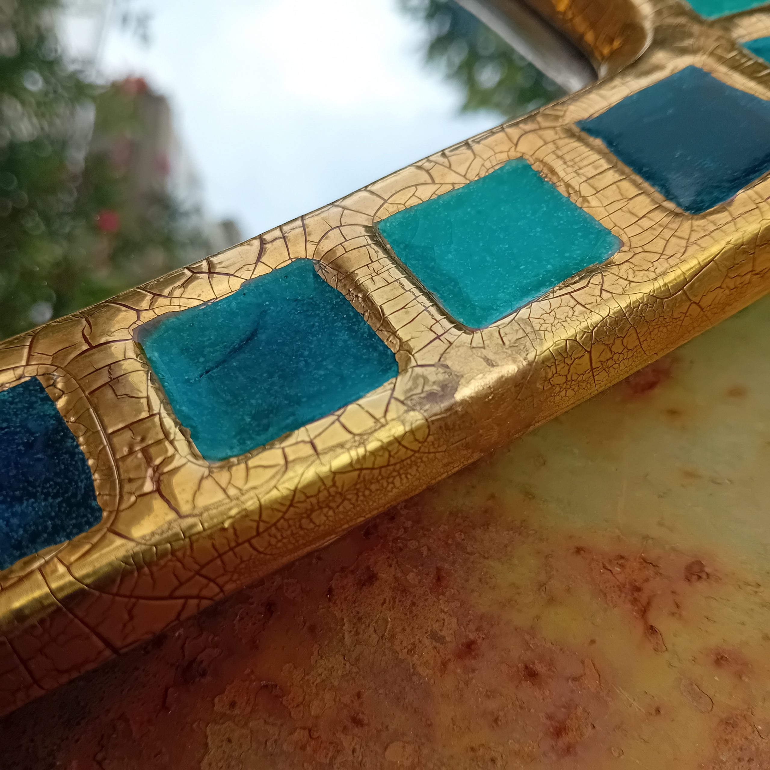 Modèle aux pâtes de verre couleurs vertes émeraudes de trois tons différents en alternance.