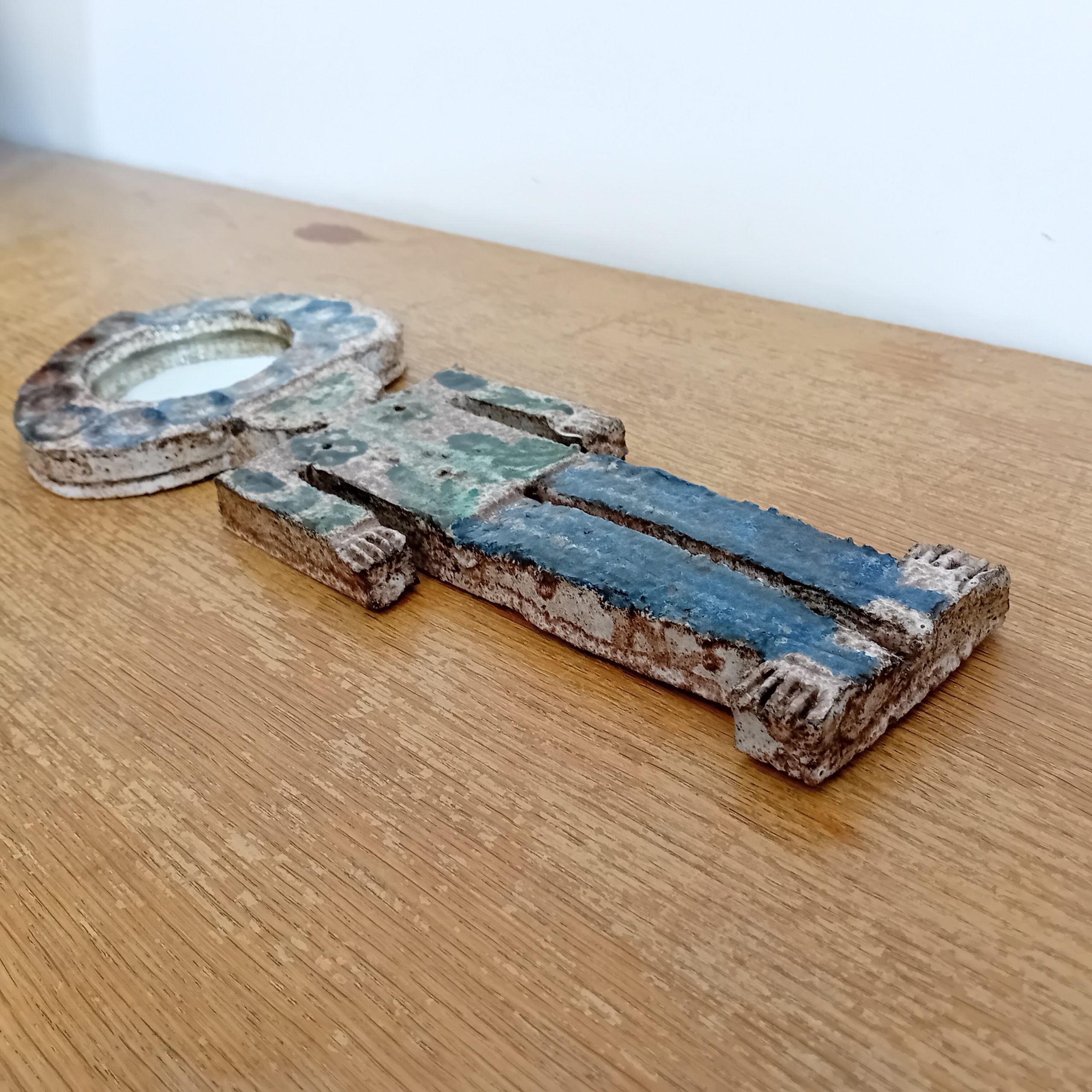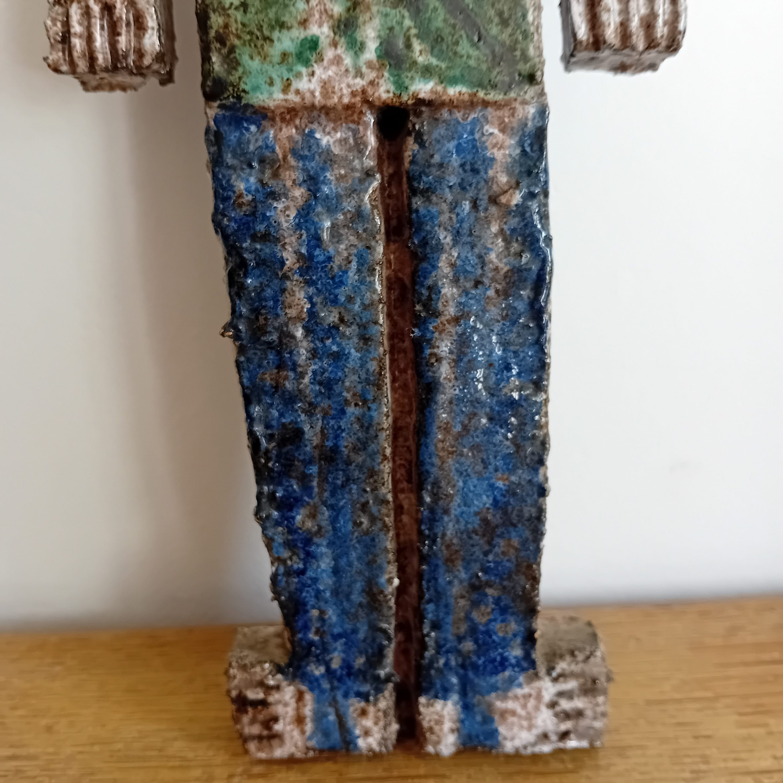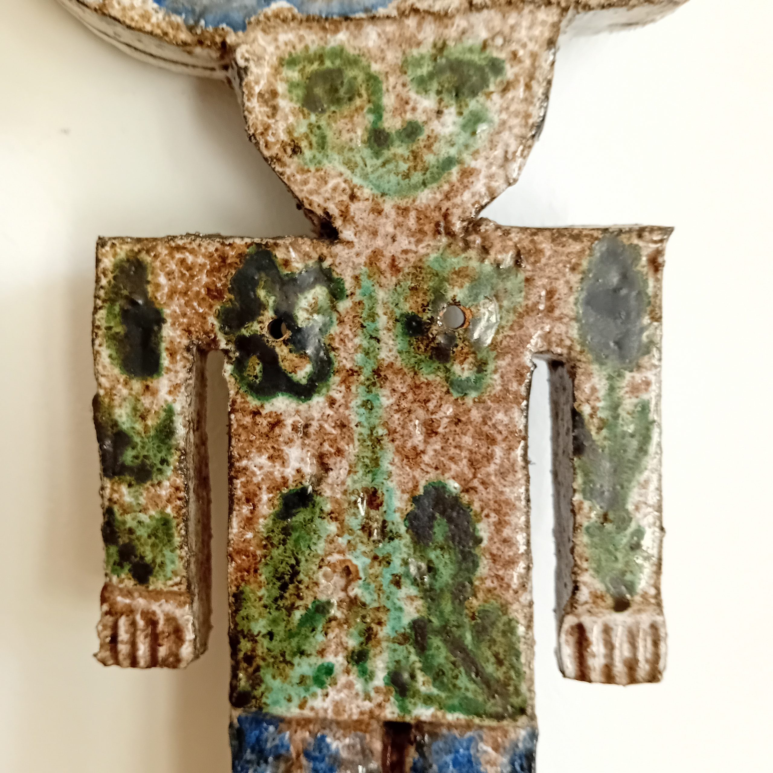 Céramique dans les tons blancs, verts et bleus émaillés.