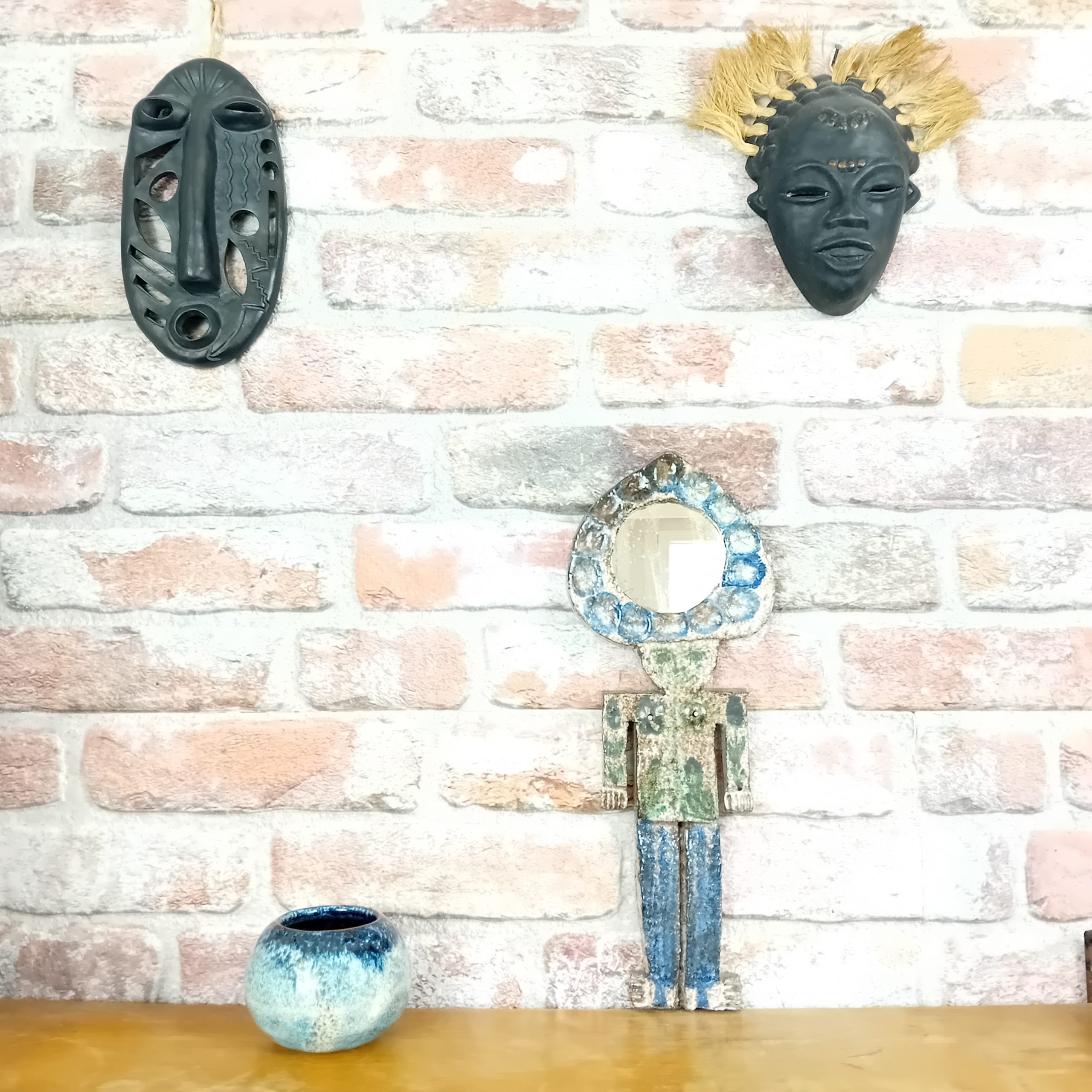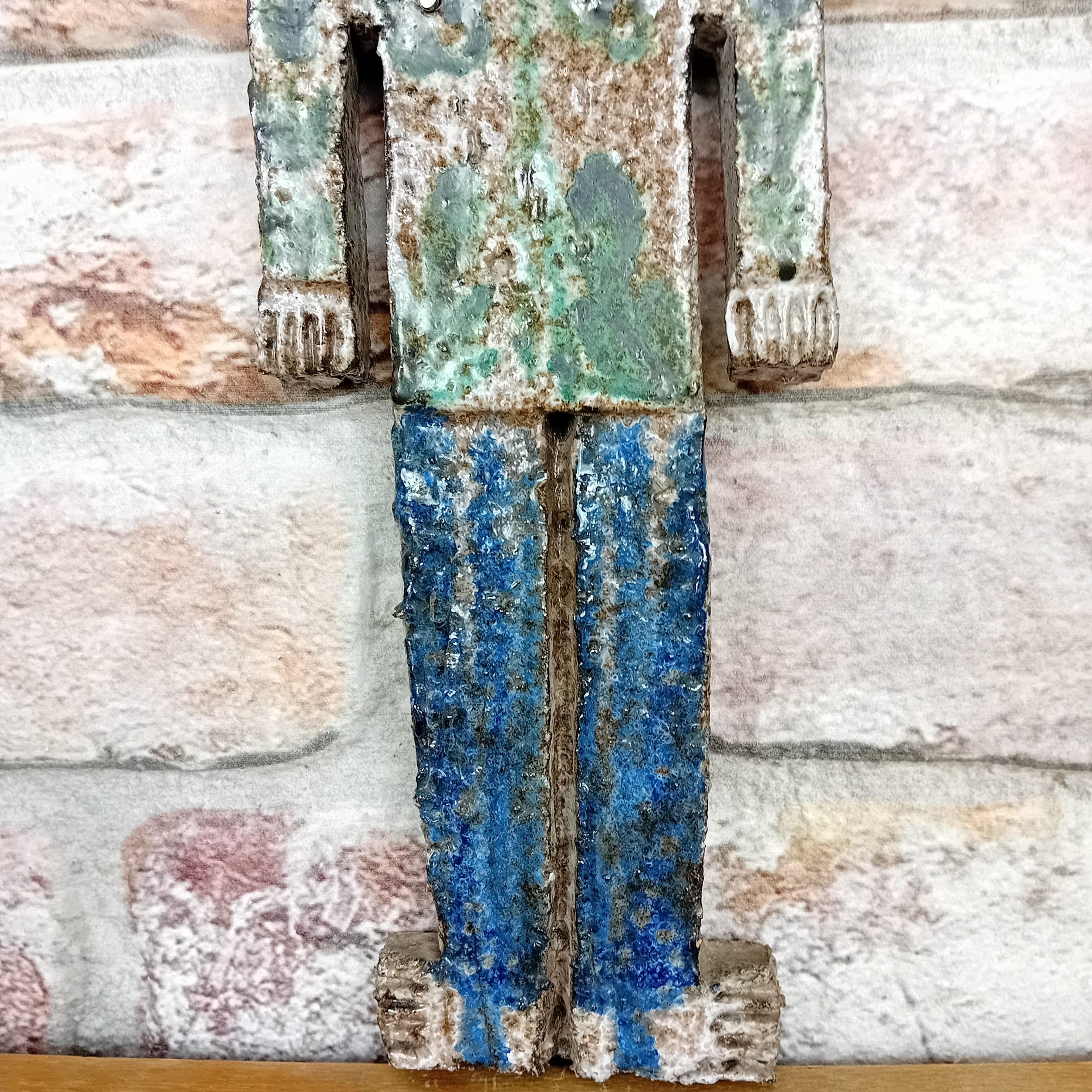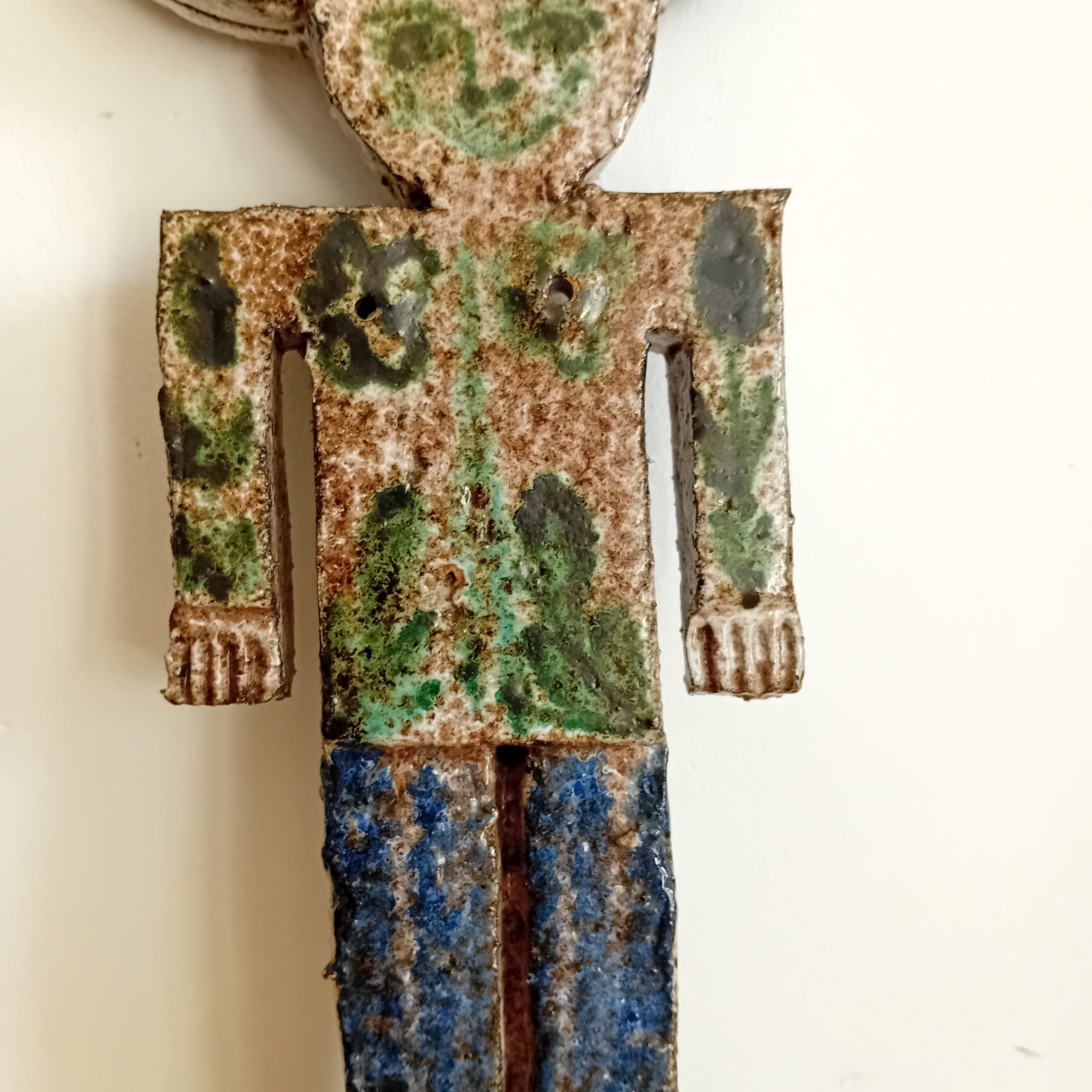 Céramique dans les tons blancs, verts et bleus émaillés.