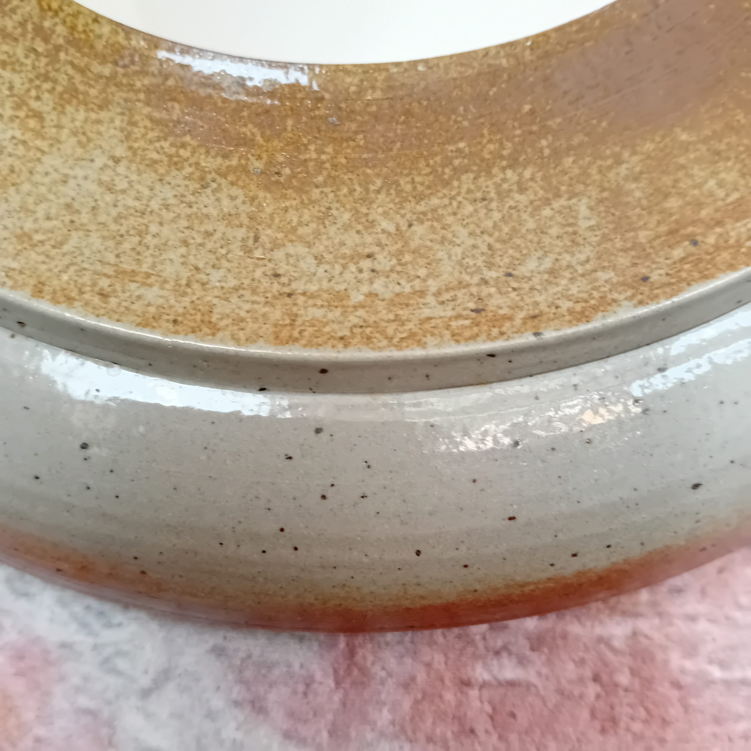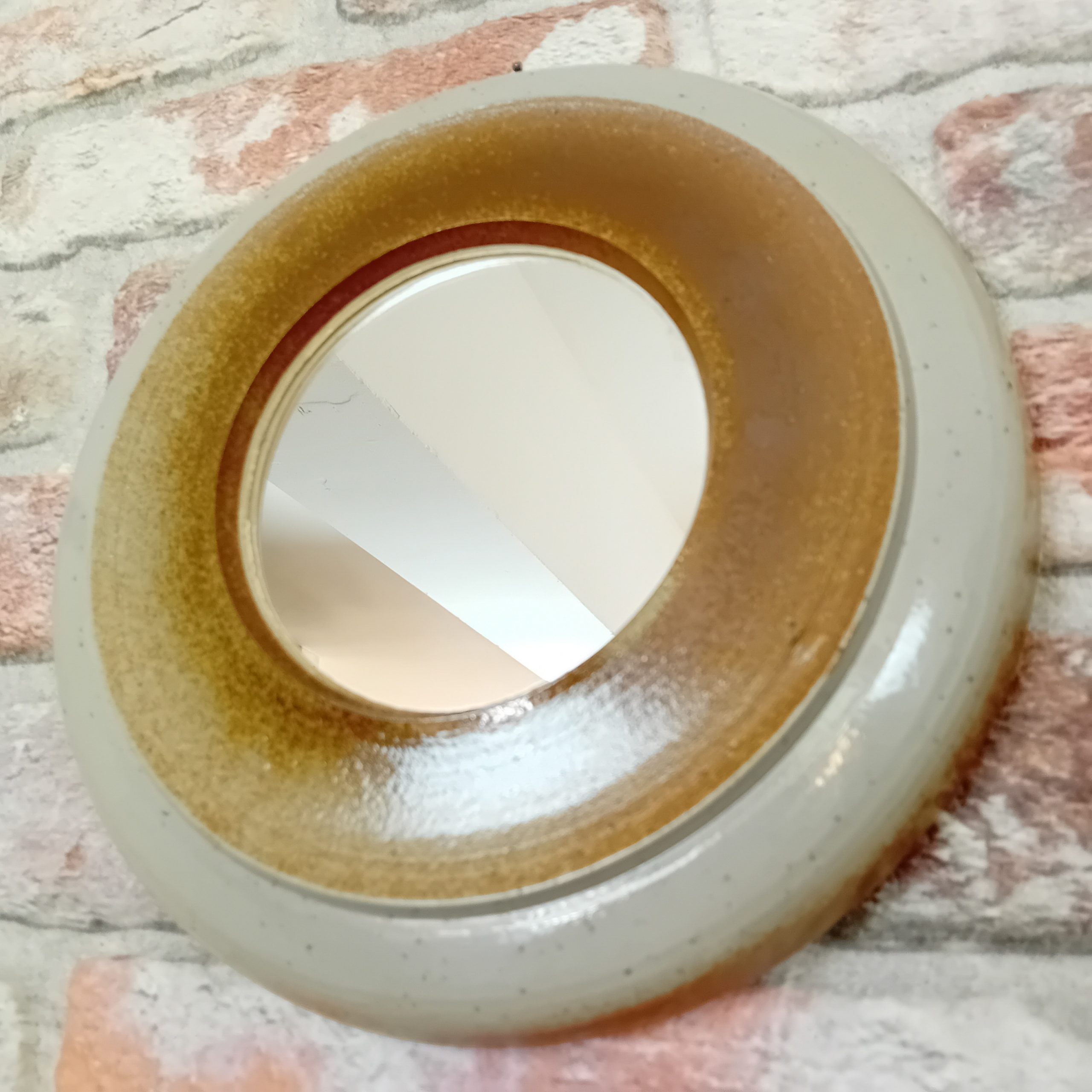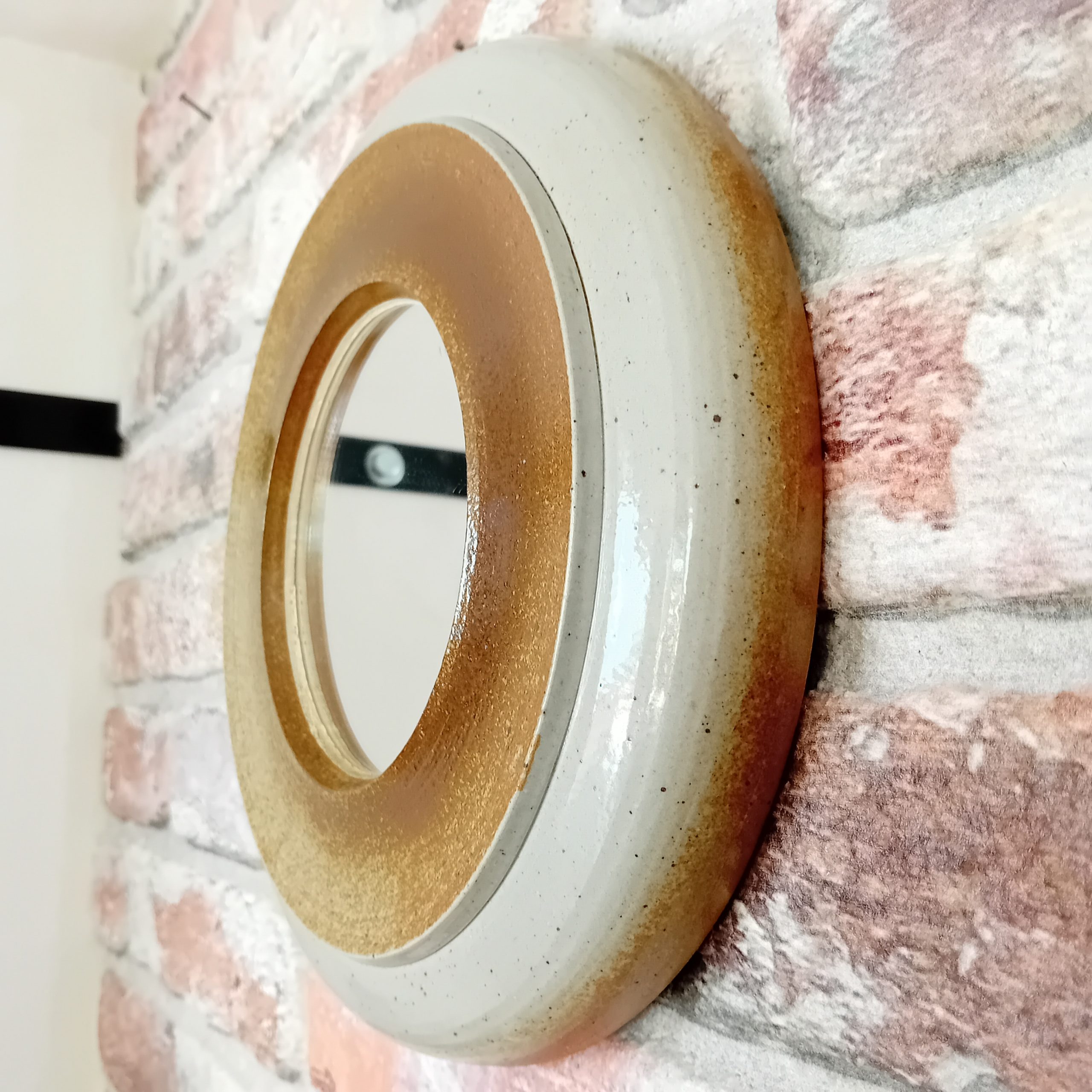 Un superbe petit miroir rond en grès émaillé.