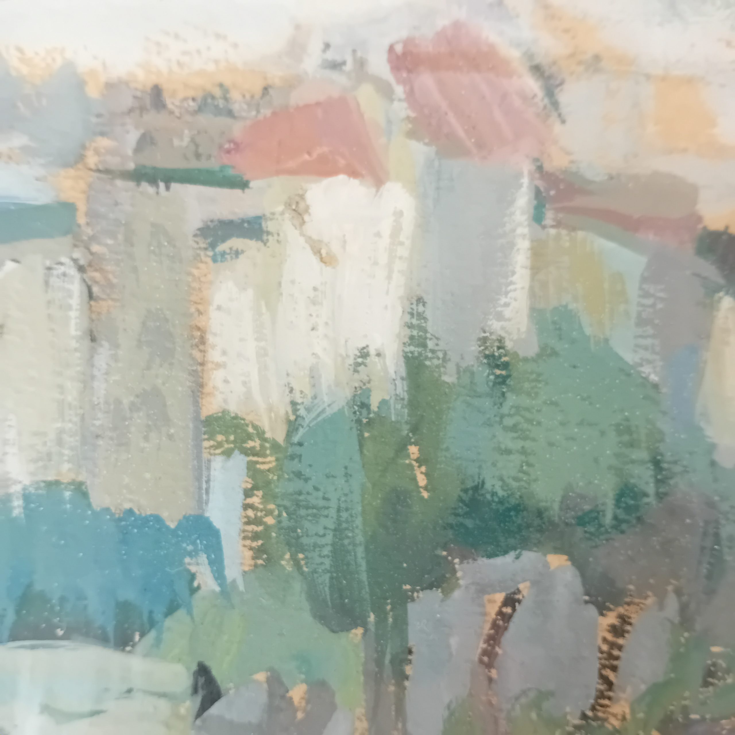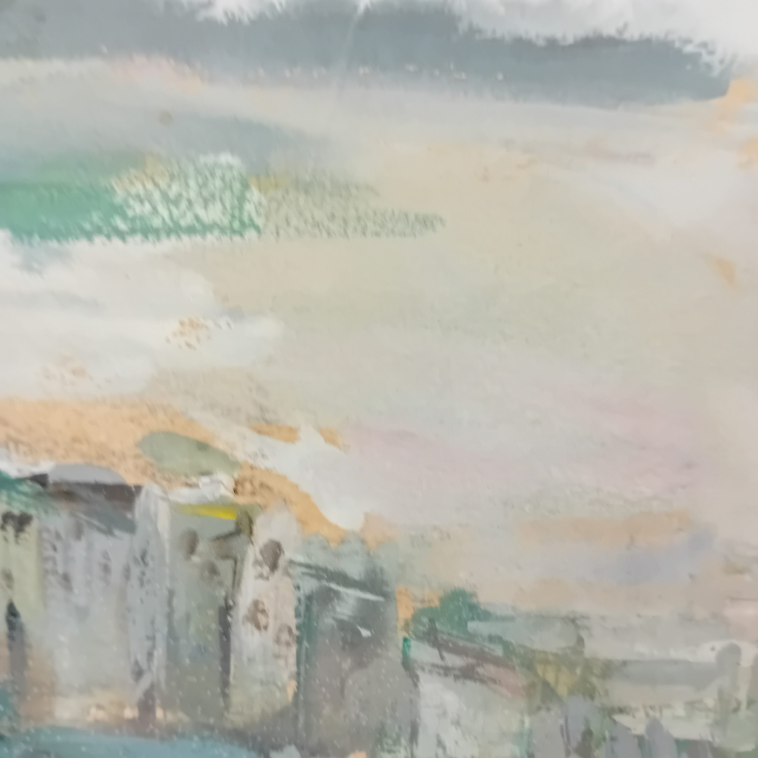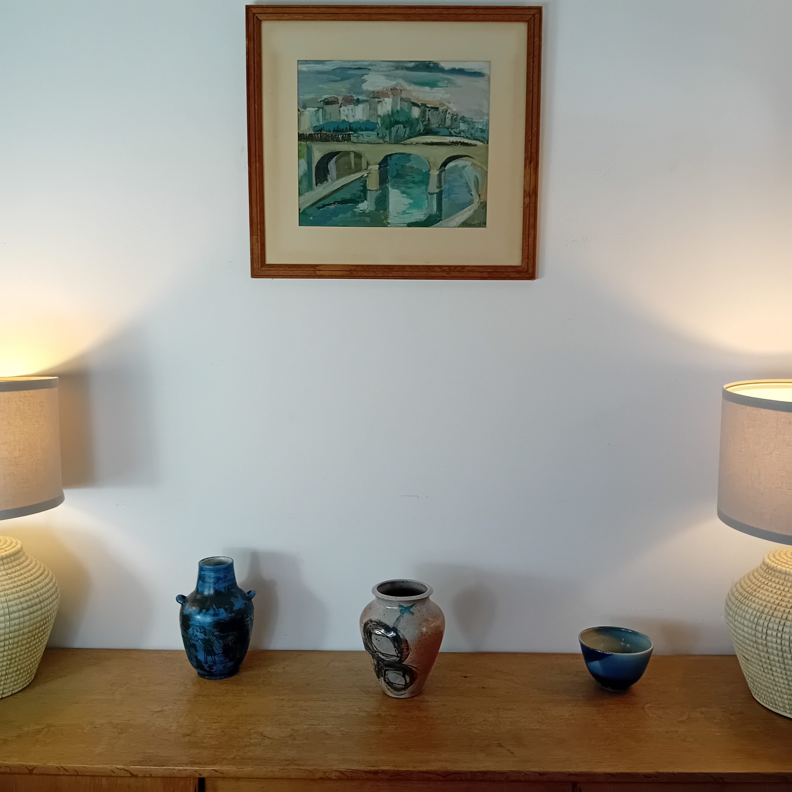 Peinture sur papier Vue d’un pont signée I.Reymond et datée 1950