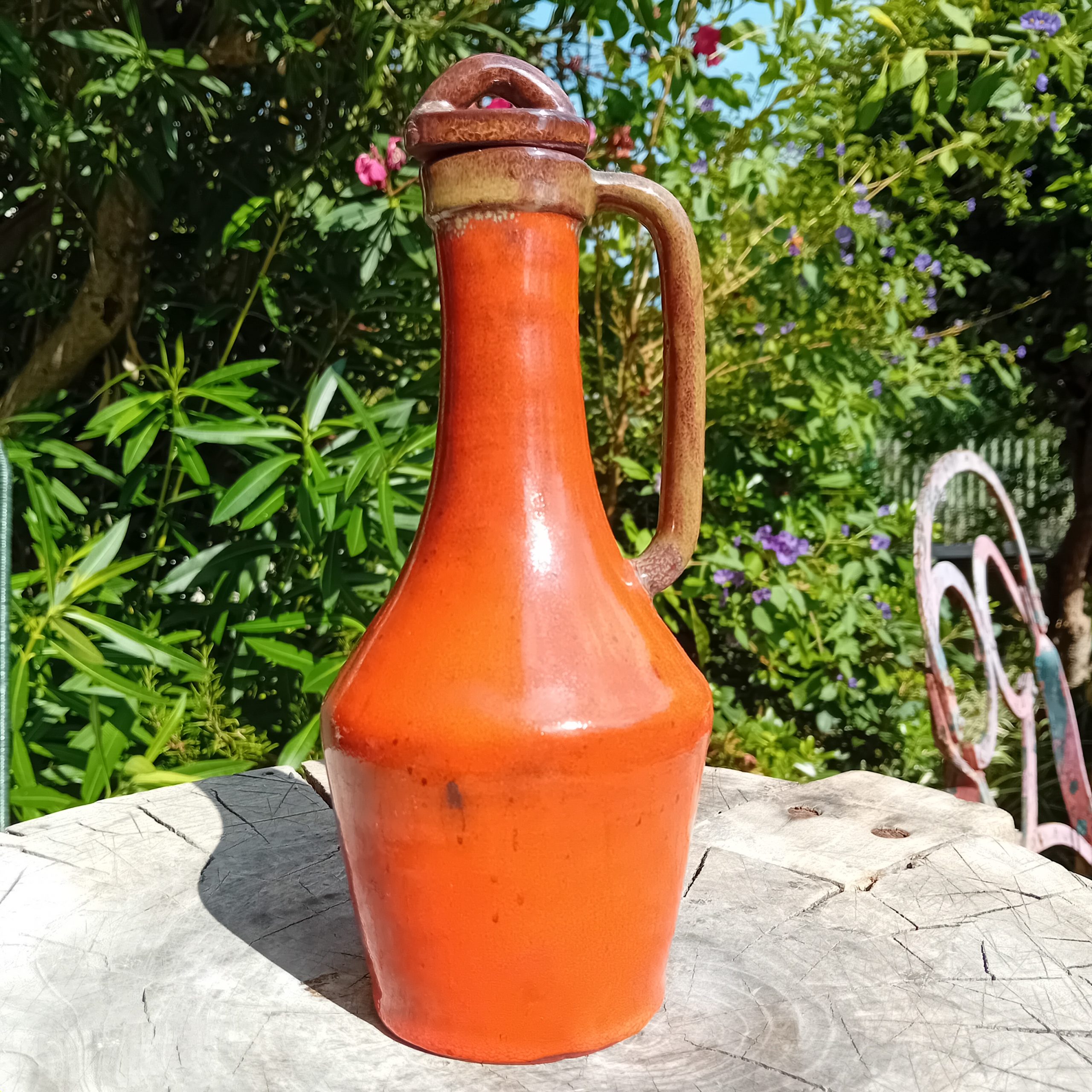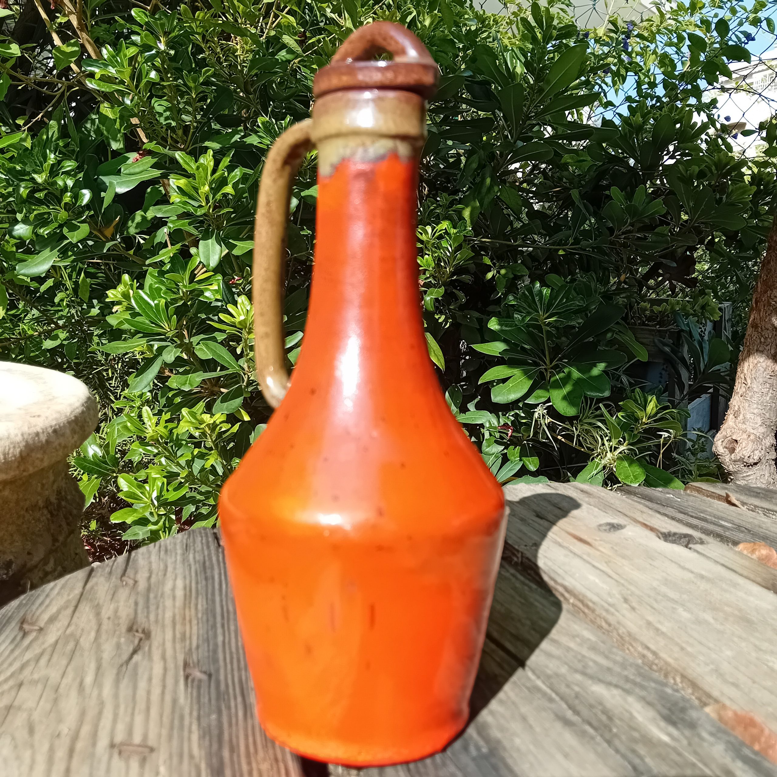Petit pichet orange signé Juliette Derel 1918-2007 – Forme abstraite dans l’émail