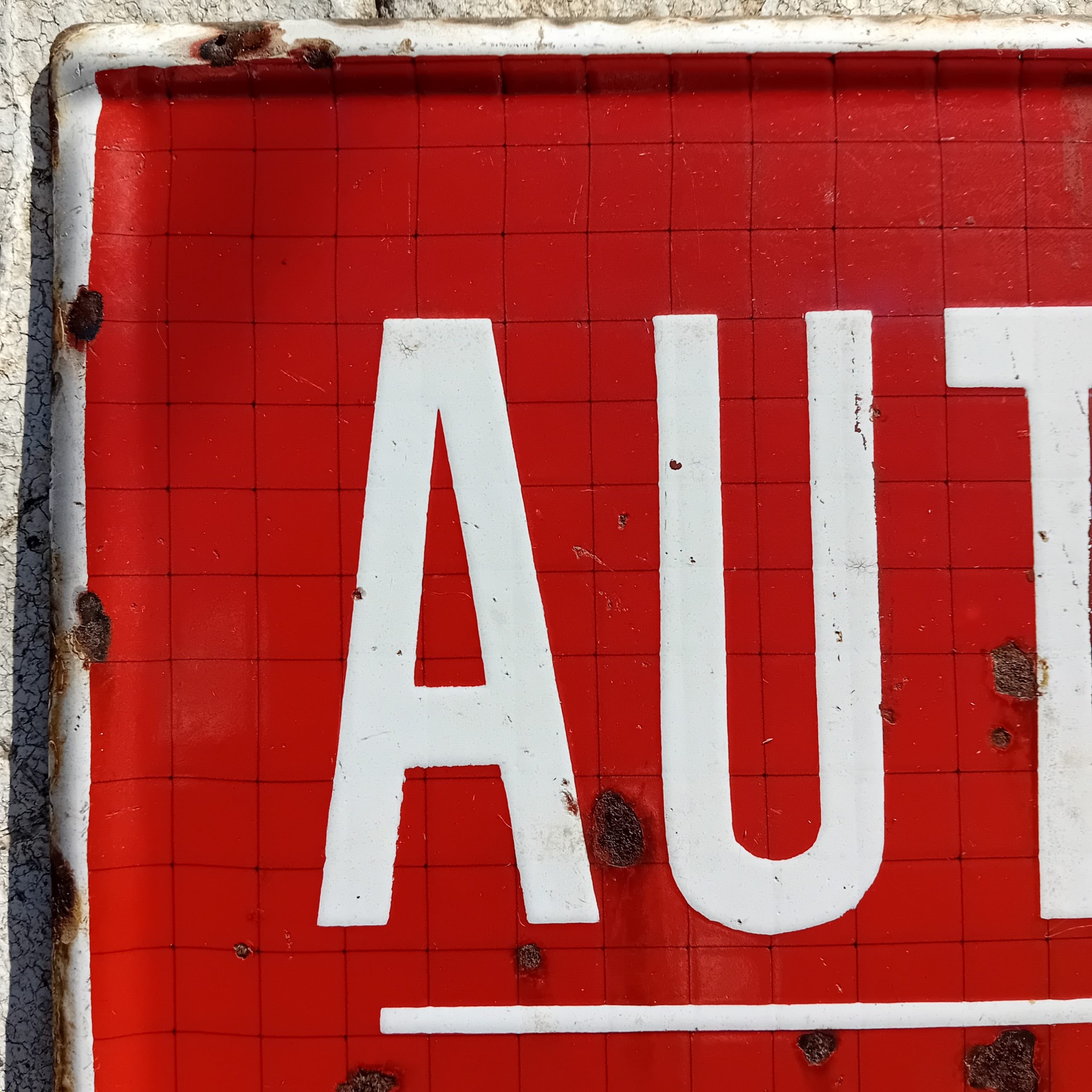 Plaque émaillée routière ancienne « Automobilistes soyez prudents » – Patine industrielle
