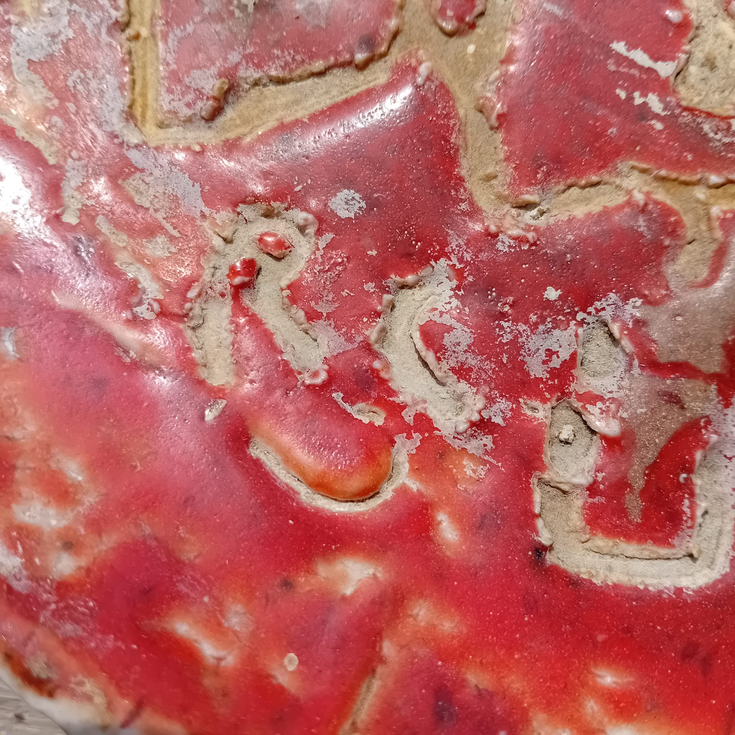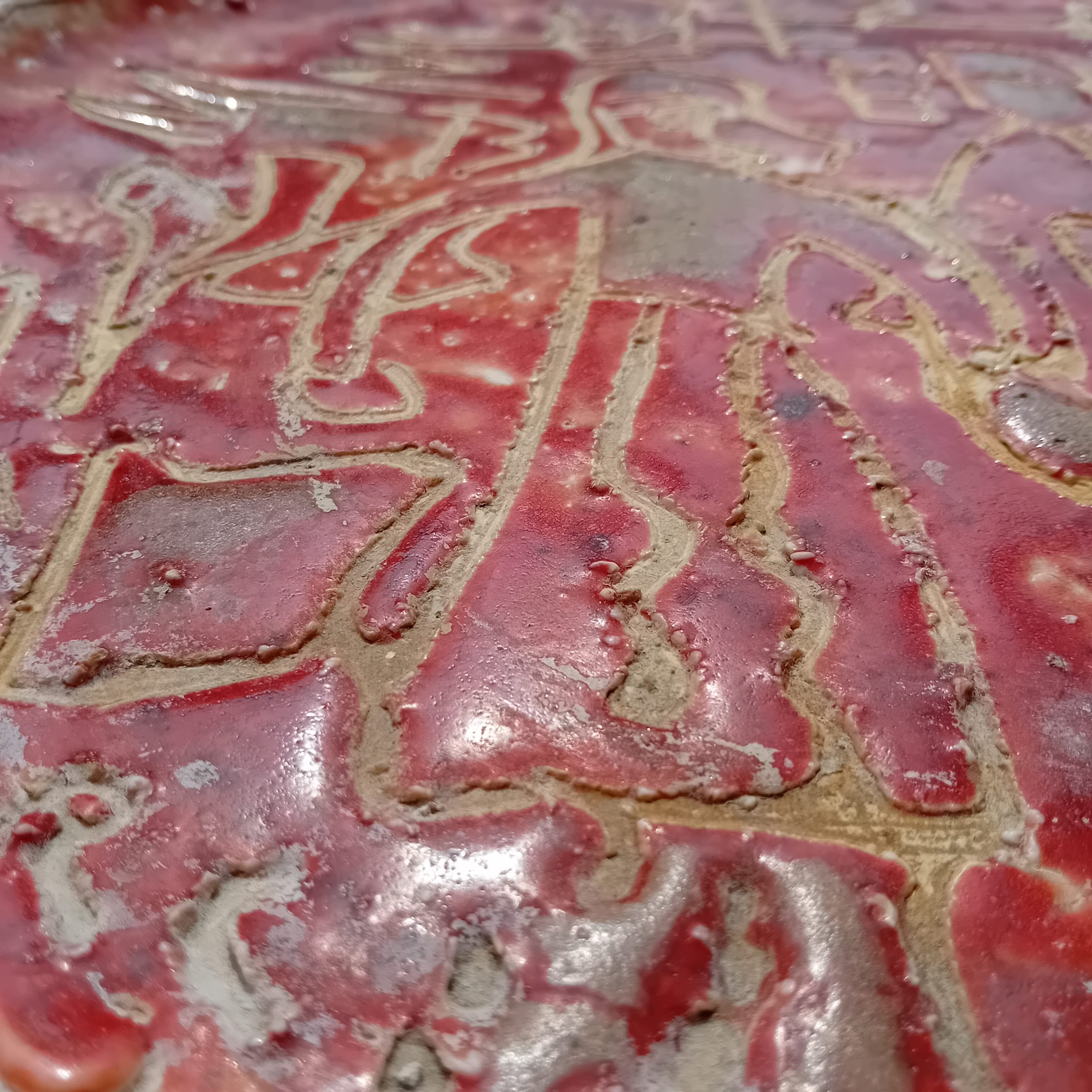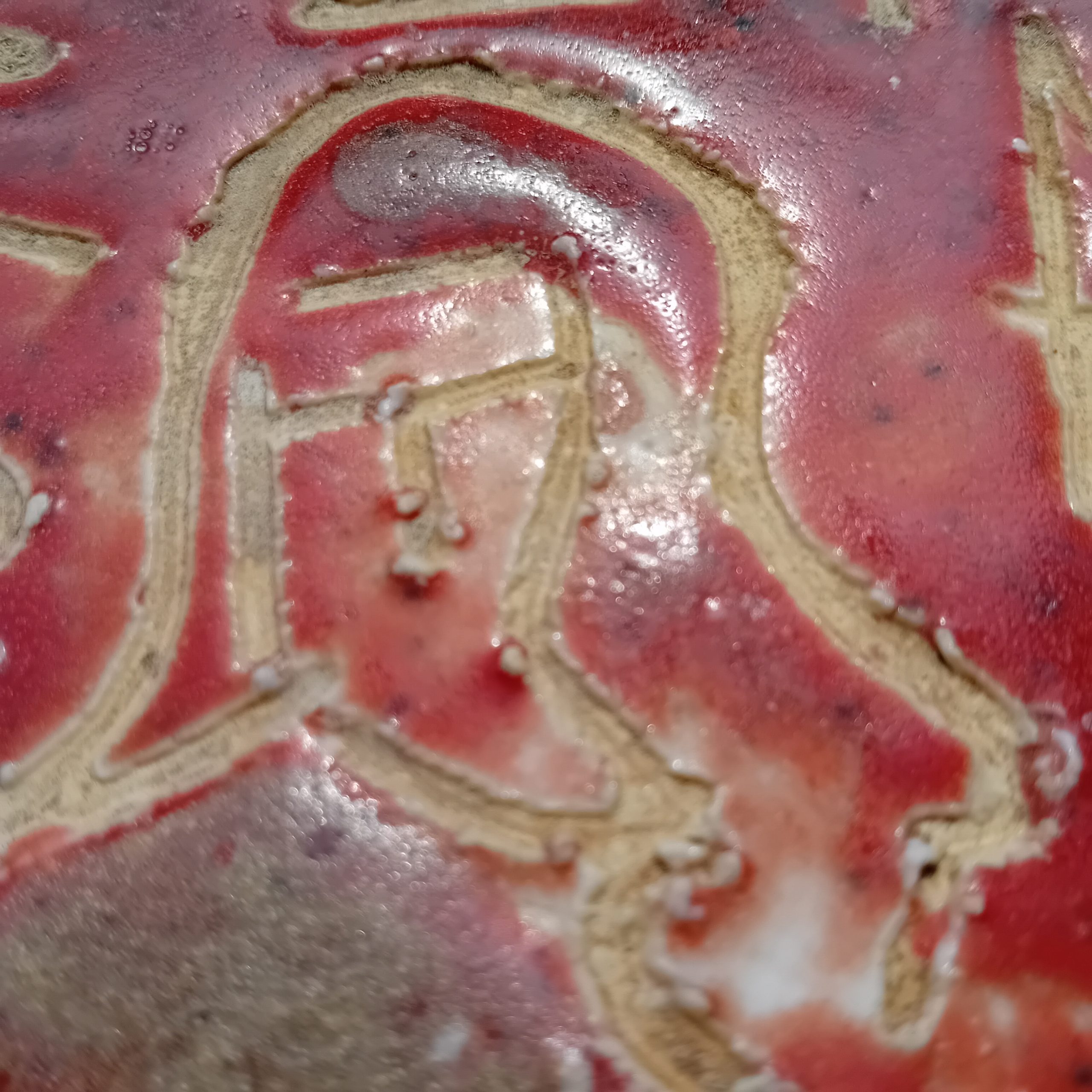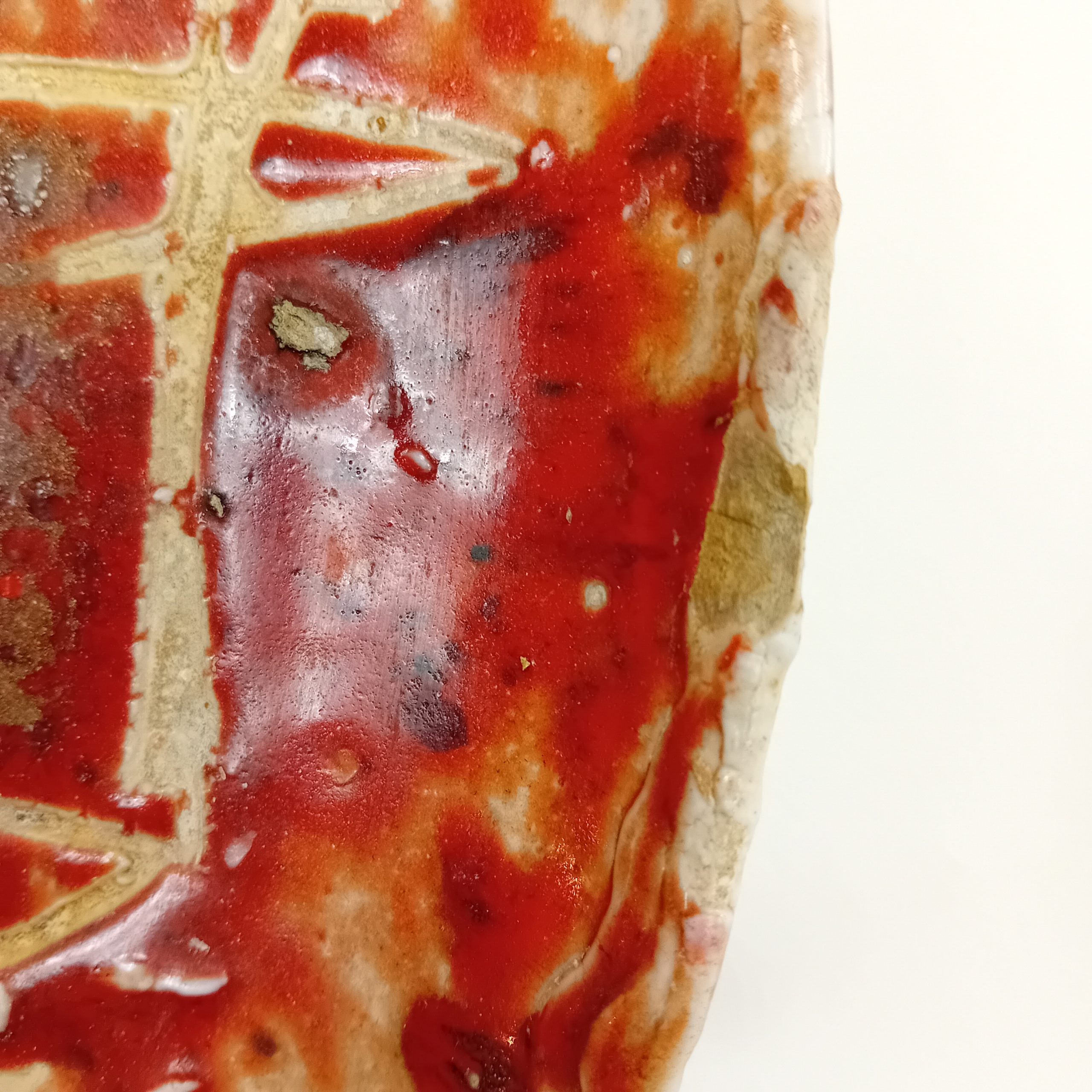 • Céramique émaillée rouge avec décor incisé