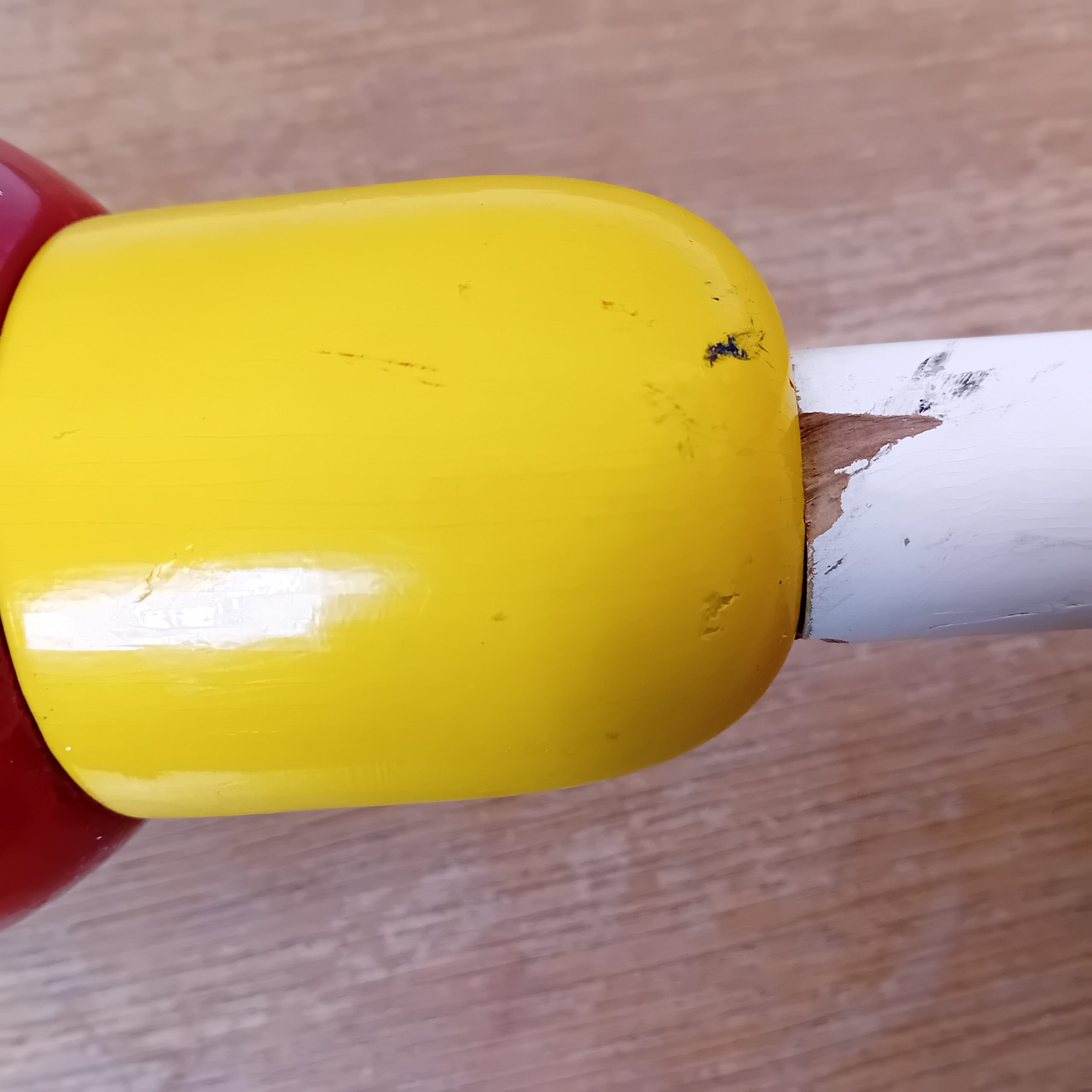 Dans son jus de trouvaille avec ses imperfections, rayures, éclats avec manques et rayures sur le peinture.