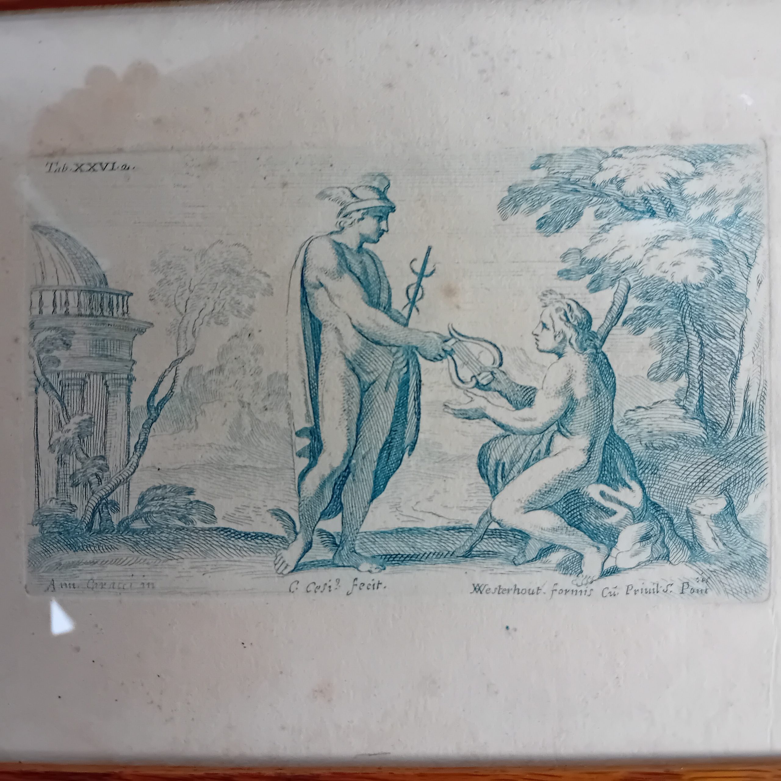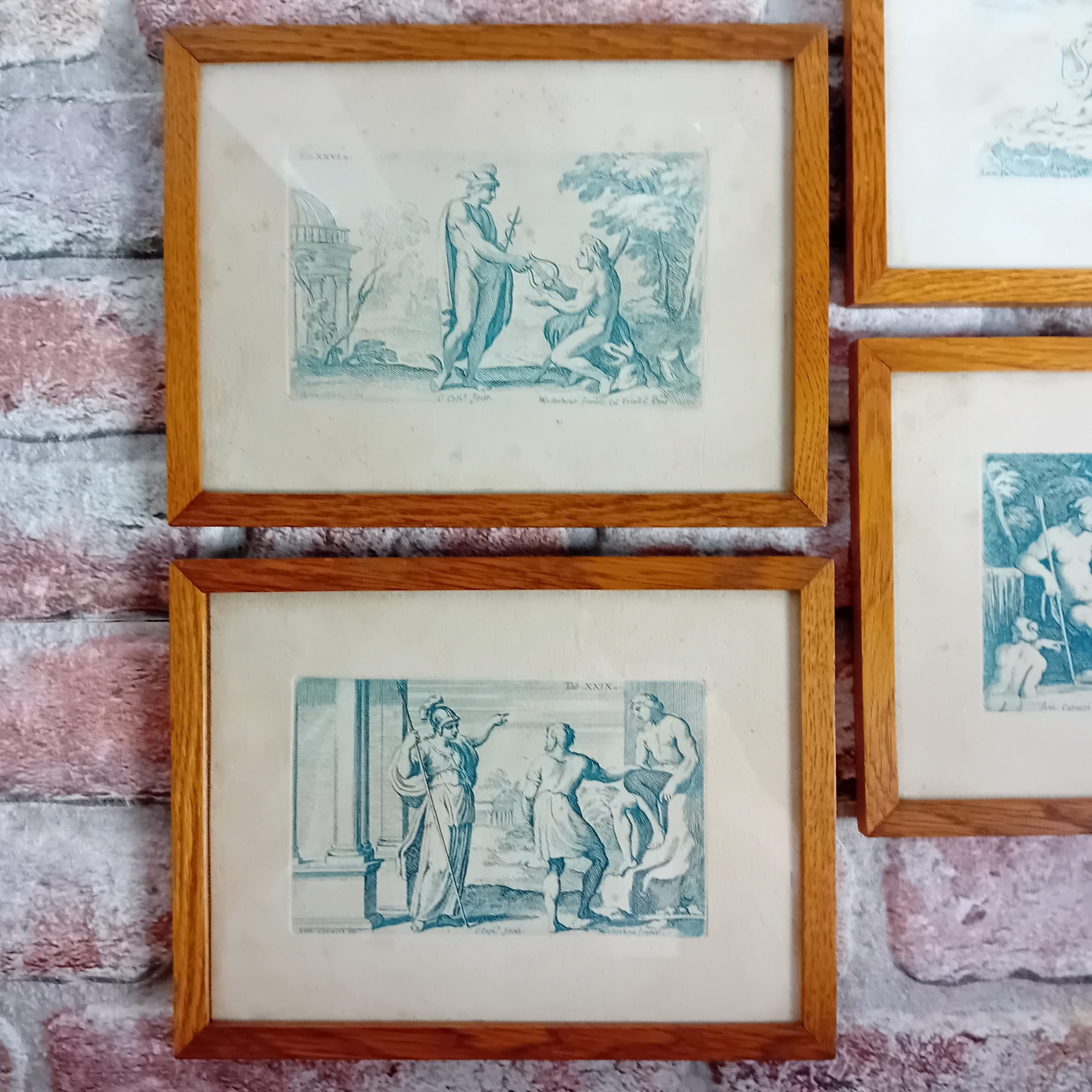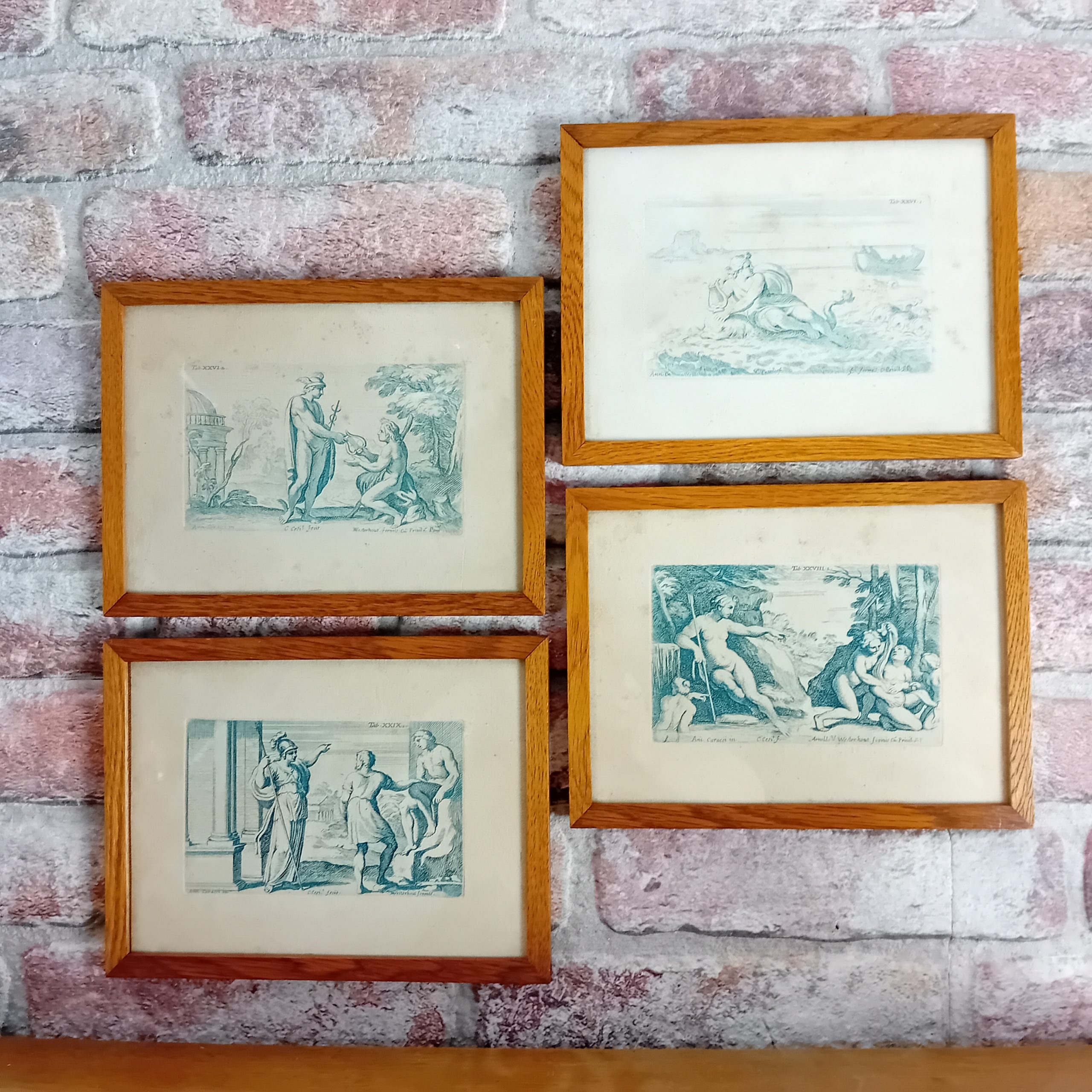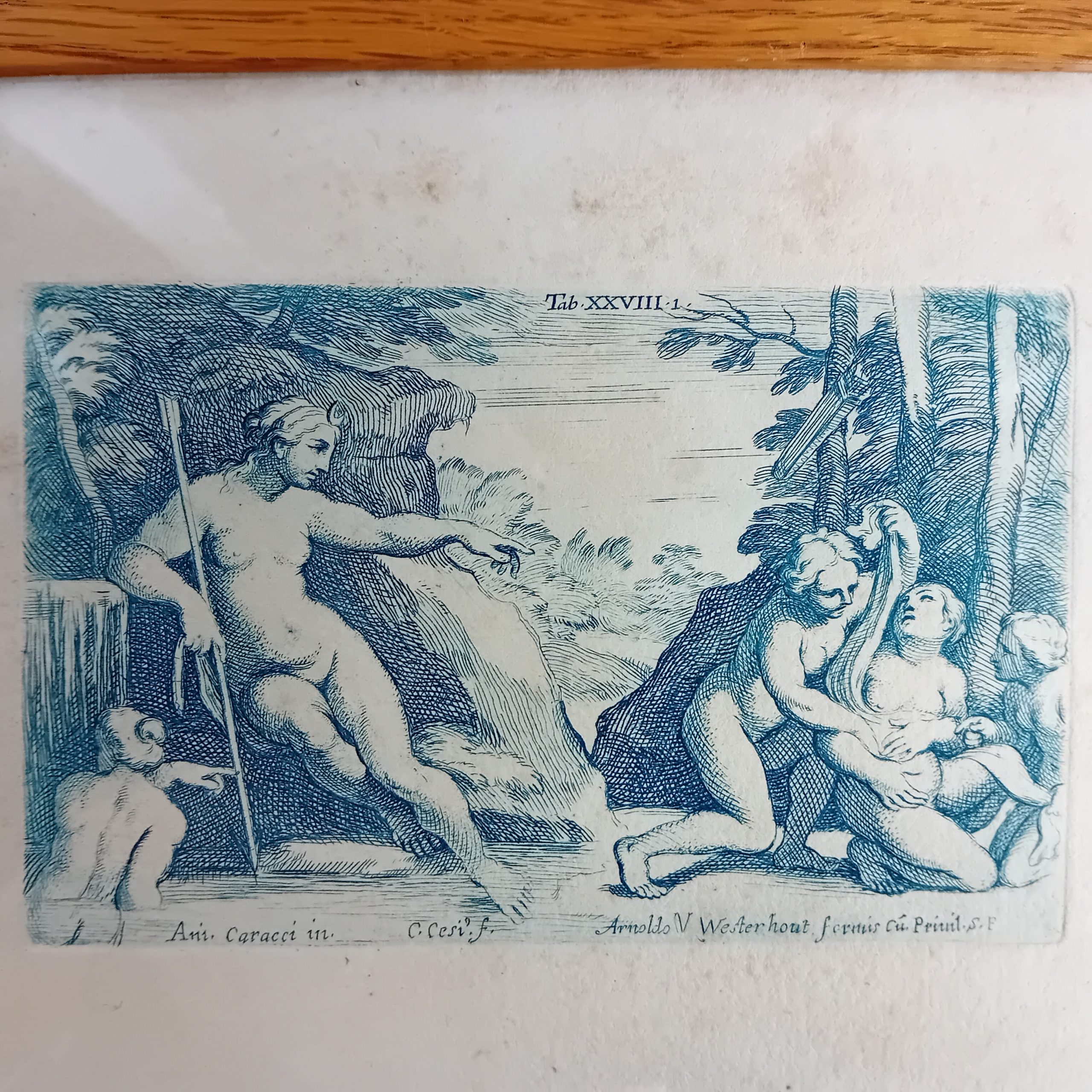 Quatre belles gravures à l’encre bleue gravées par Carlo Cesi d’après des œuvres d’Annibal Carrache.