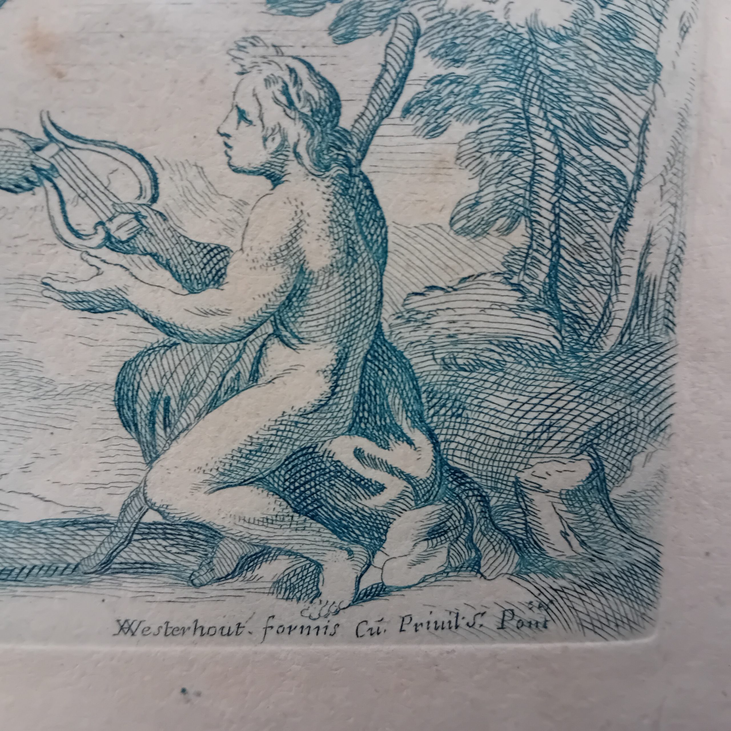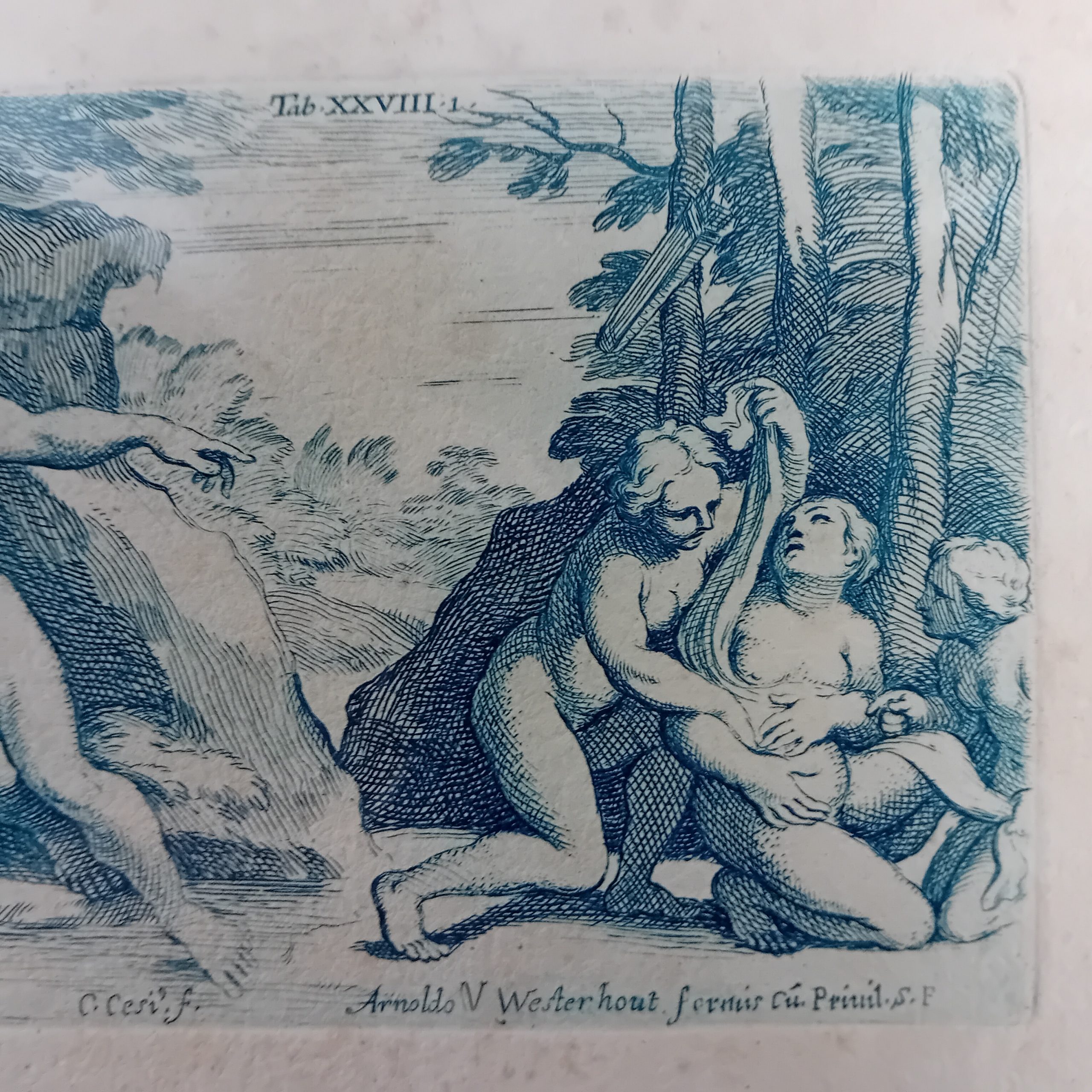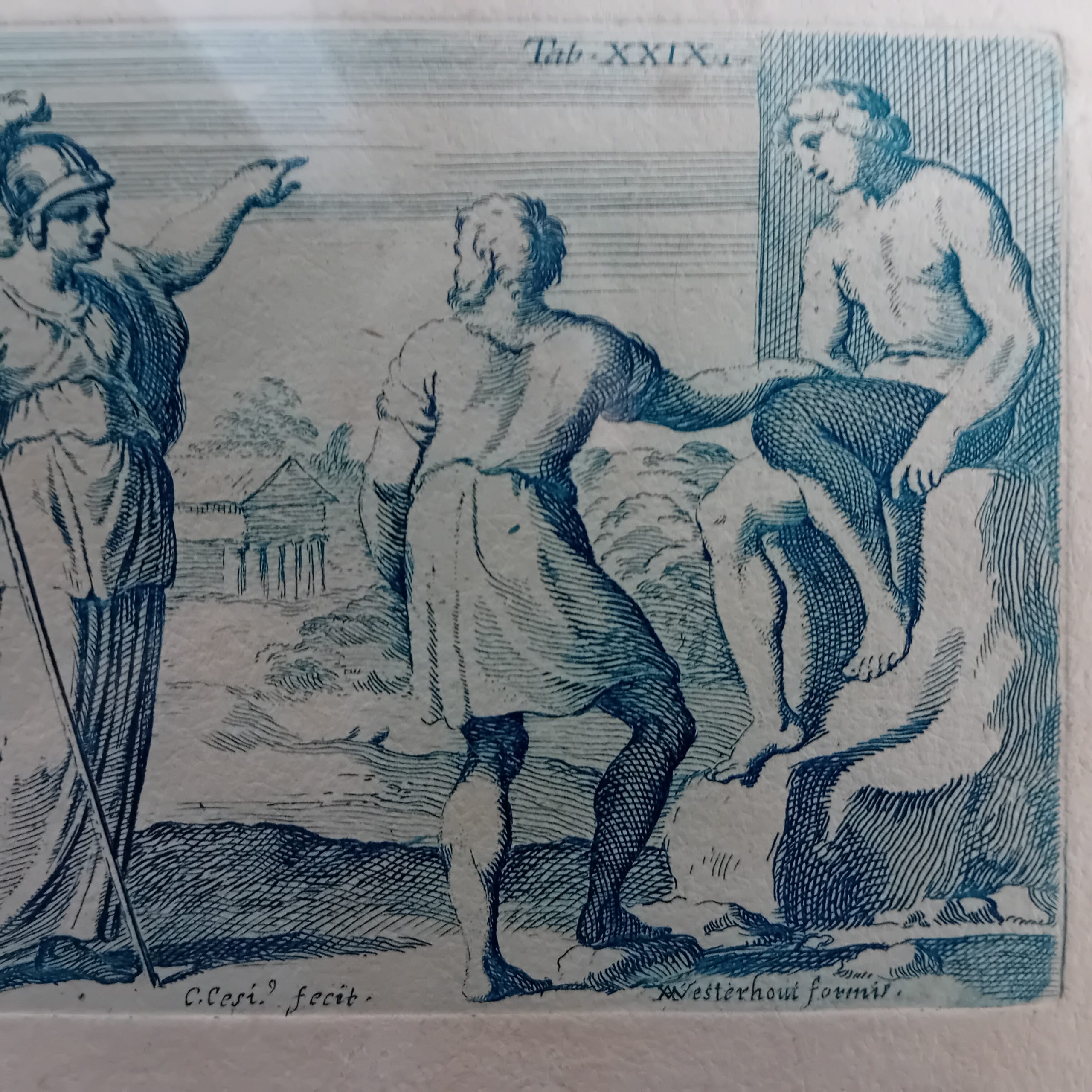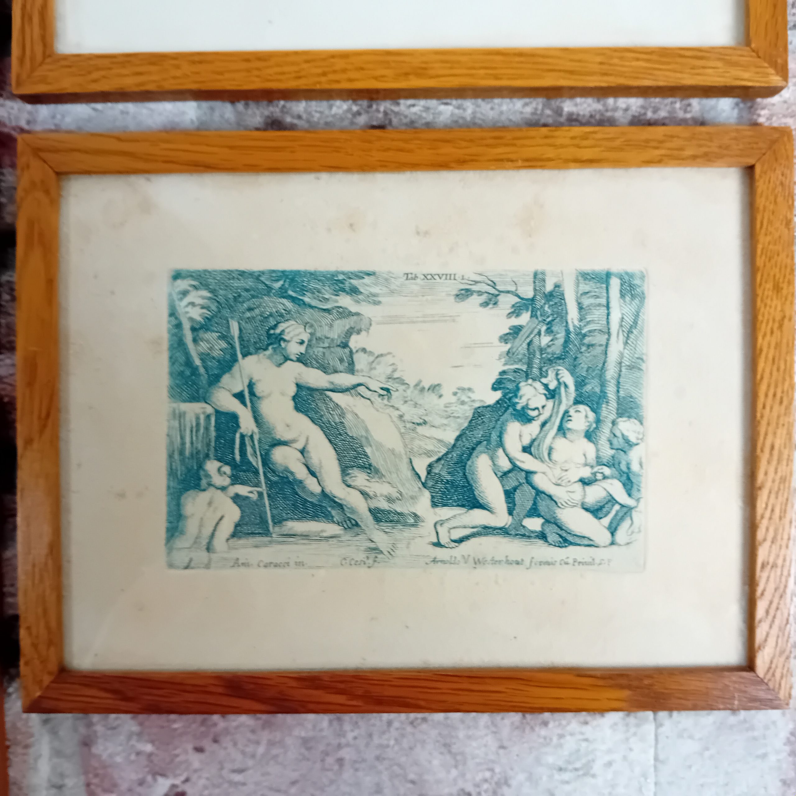 Quatre belles gravures à l’encre bleue gravées par Carlo Cesi d’après des œuvres d’Annibal Carrache.