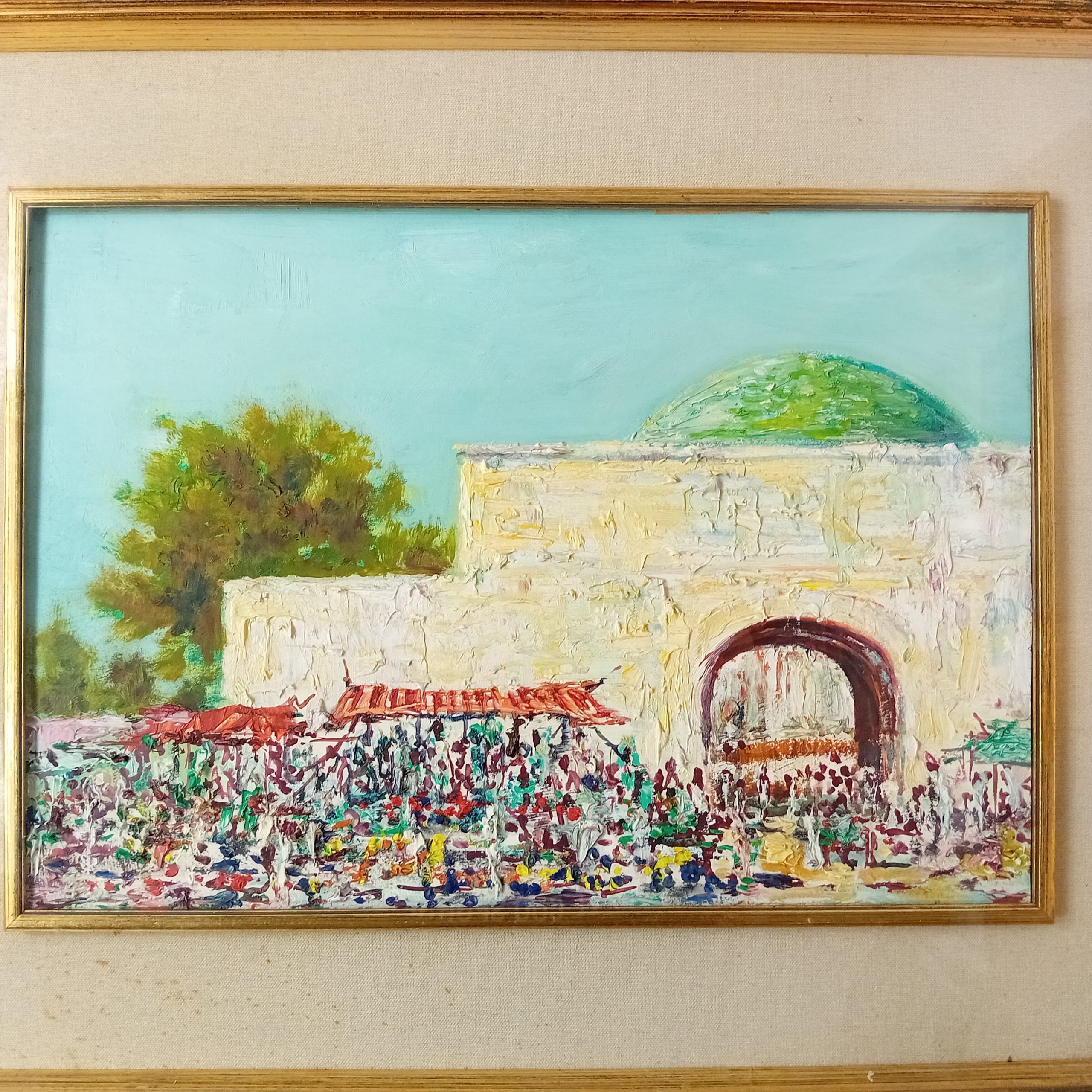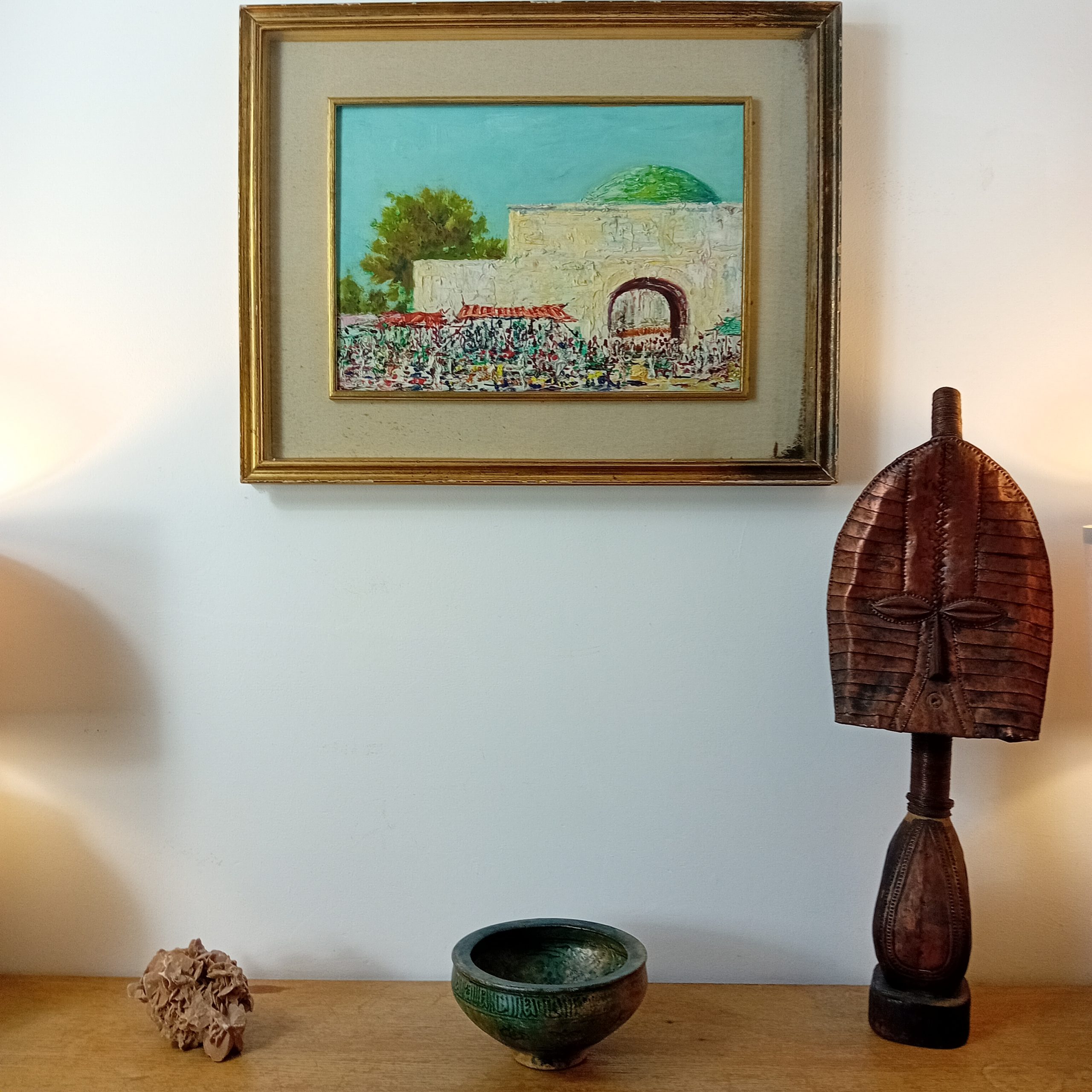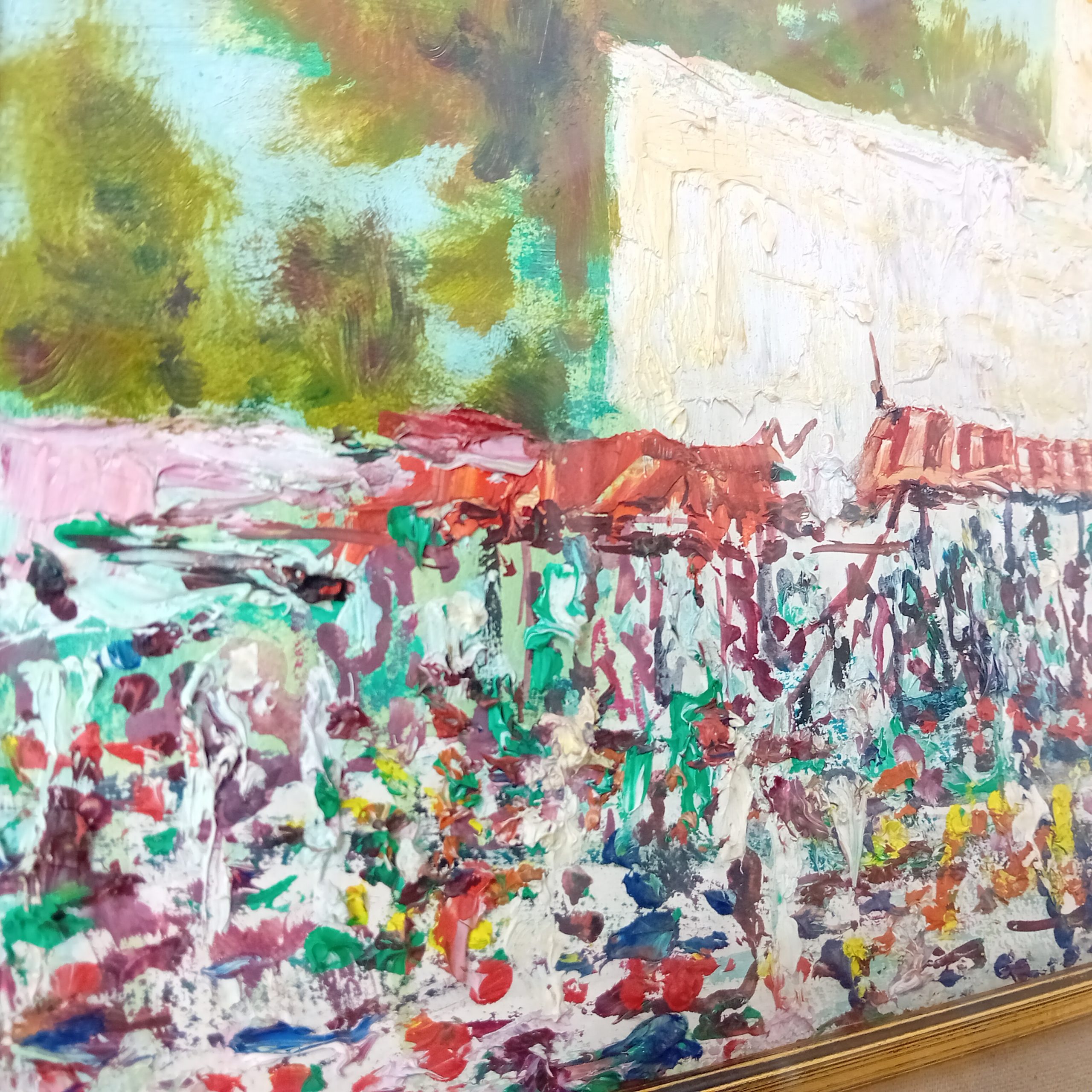 Un beau tableau orientaliste, une scène de marché traitée avec beaucoup de matières dans le style pointilliste.