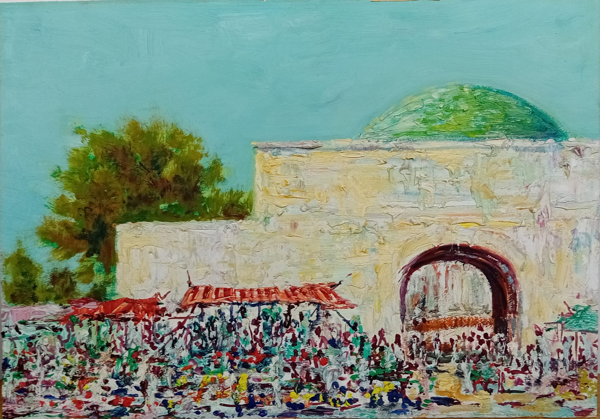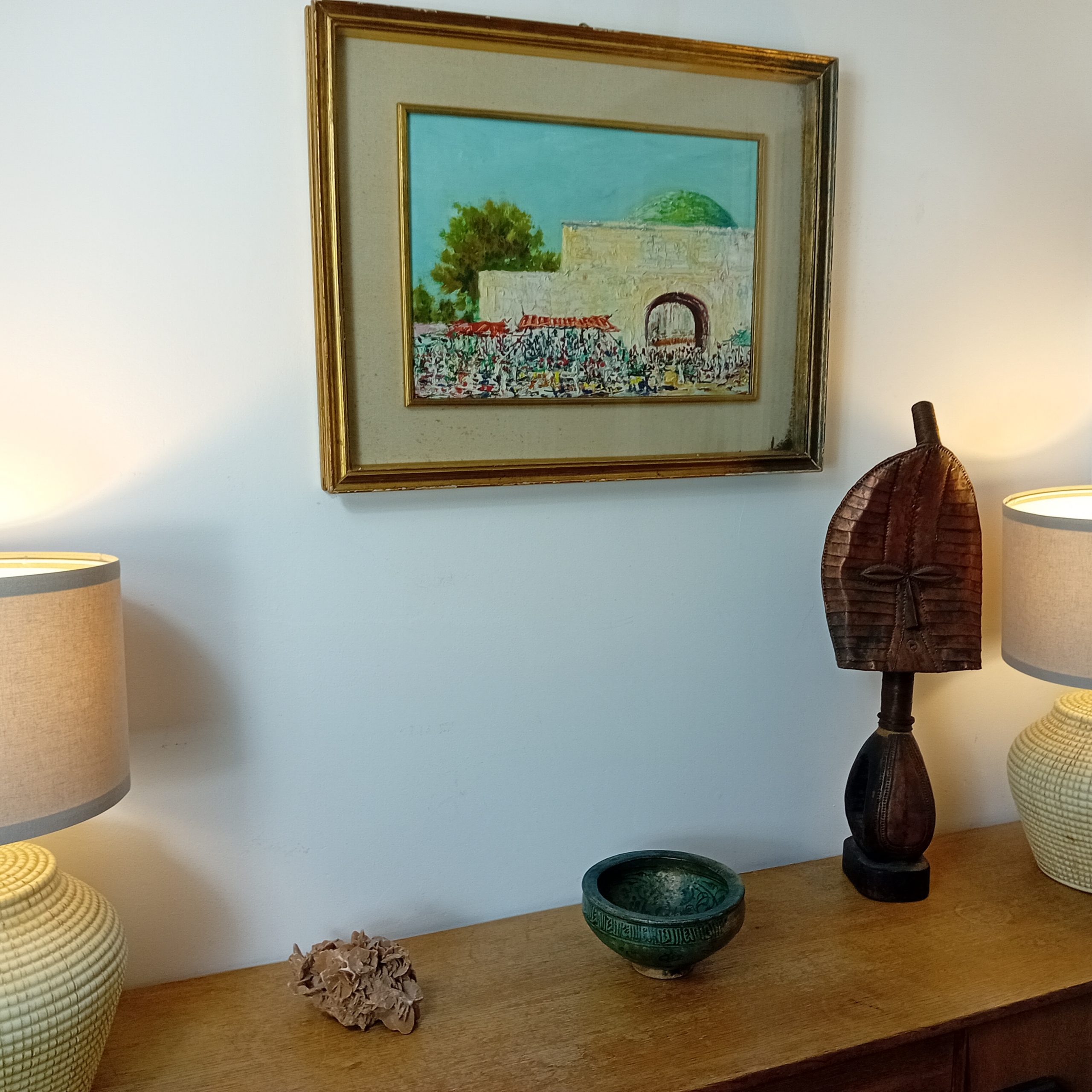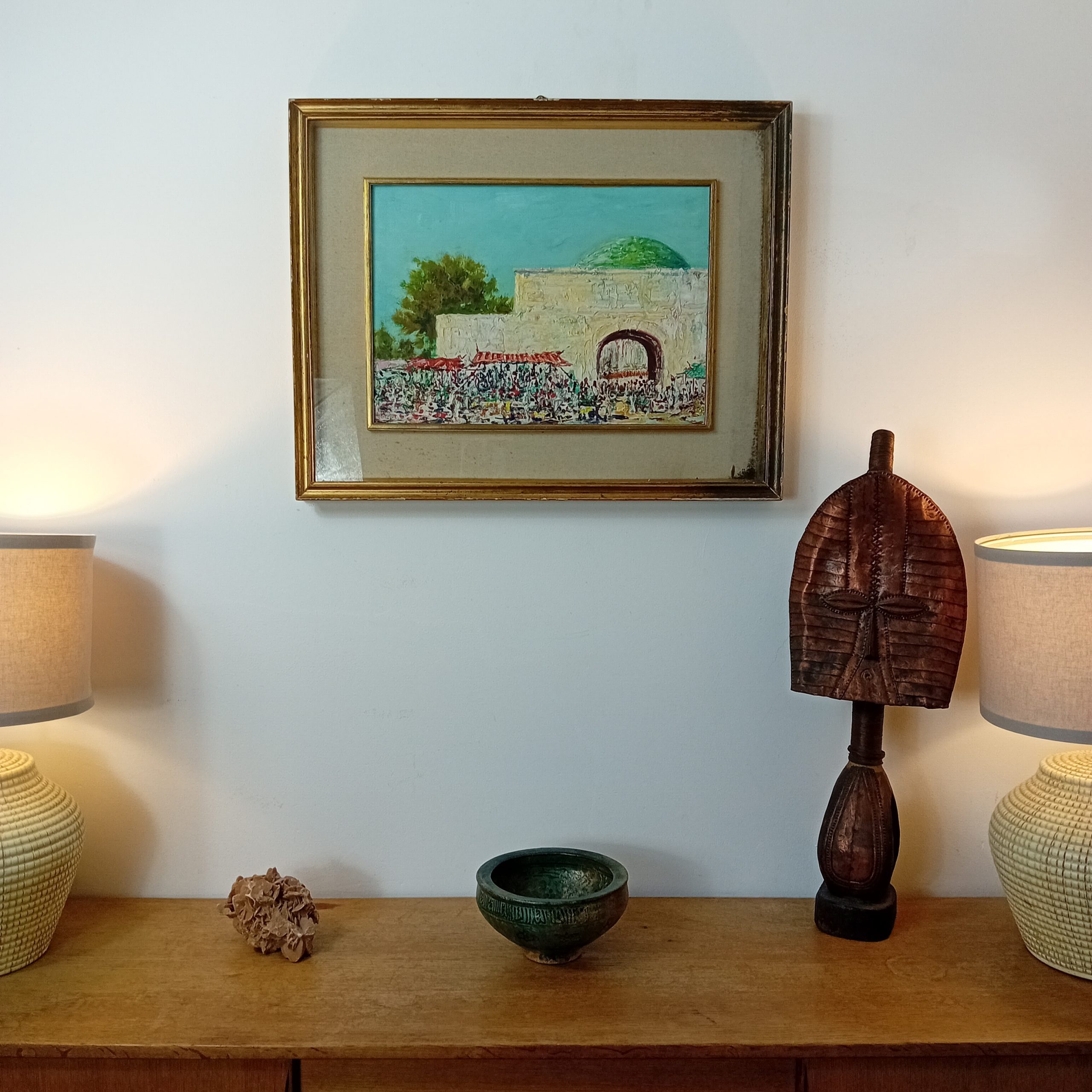 Un beau tableau orientaliste, une scène de marché traitée avec beaucoup de matières dans le style pointilliste.