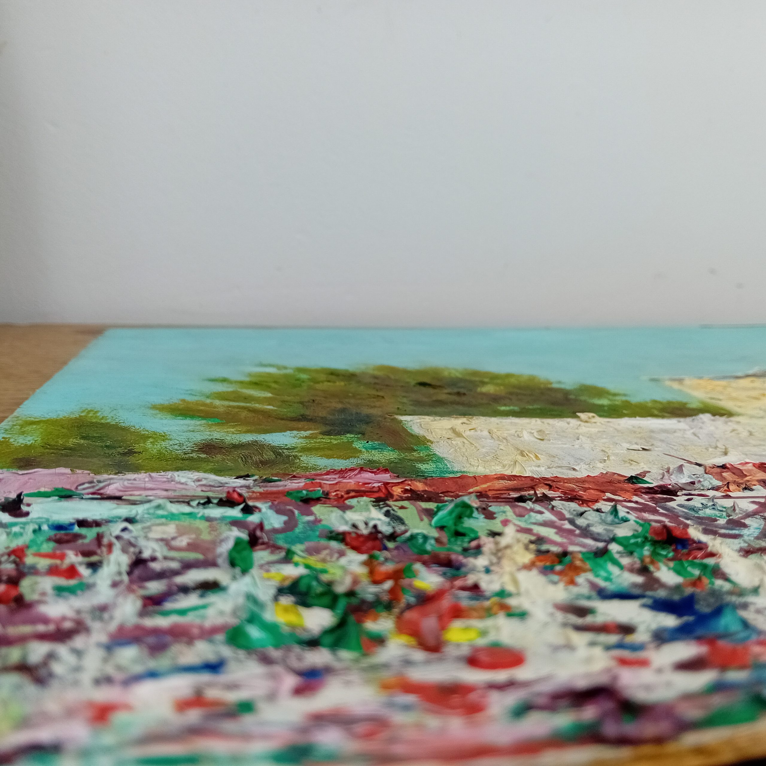 La peinture est sur carton fort, annotée au dos 35 x 50cm.