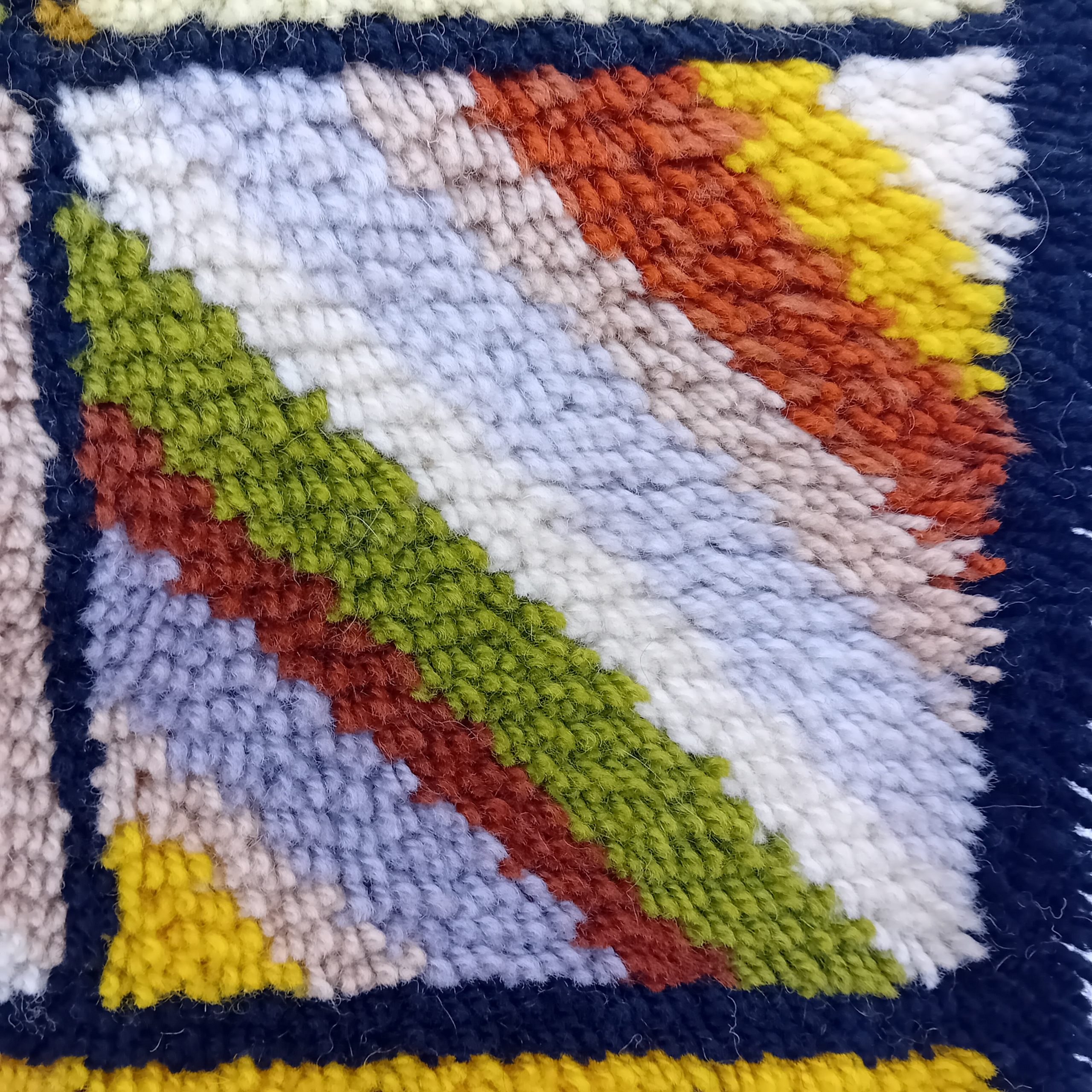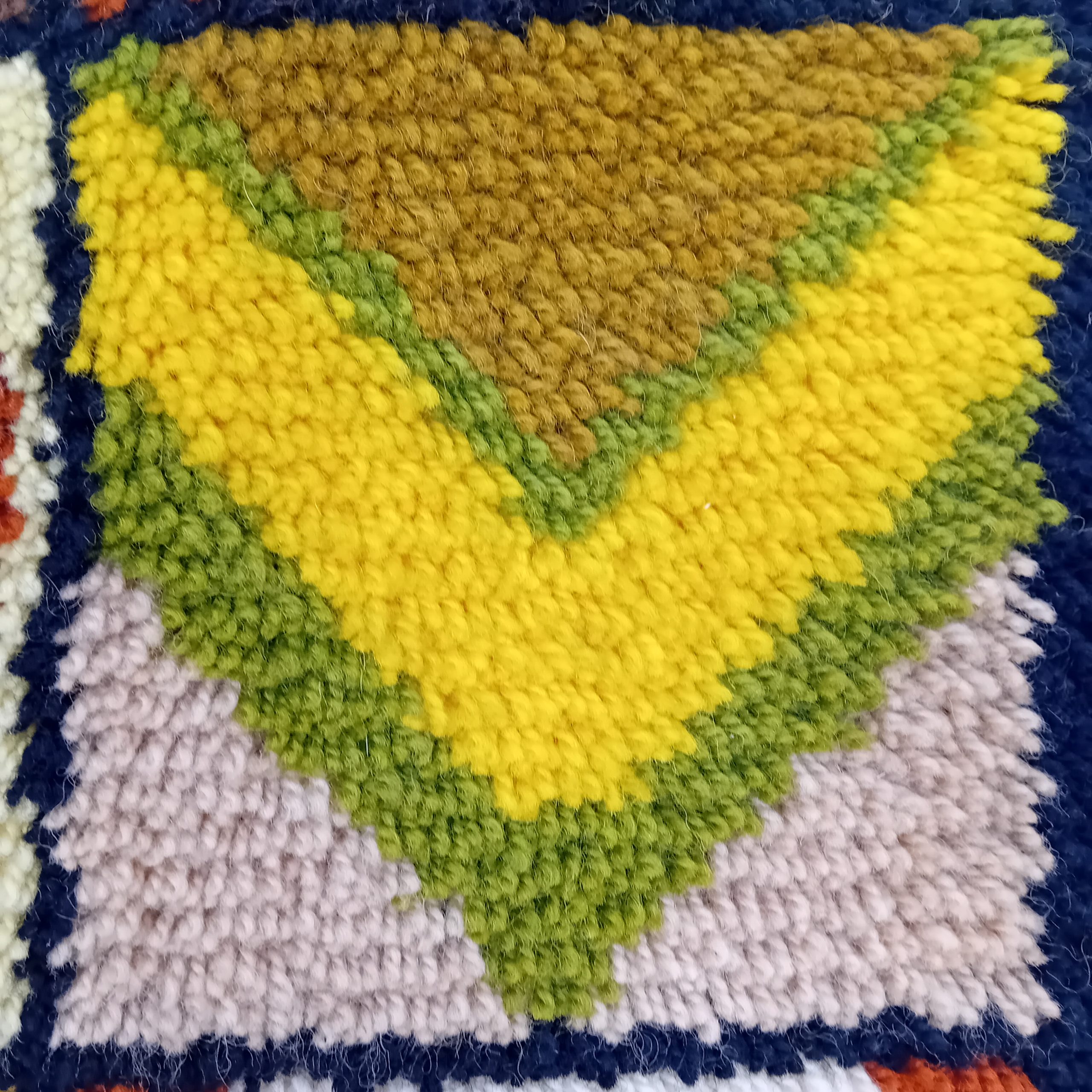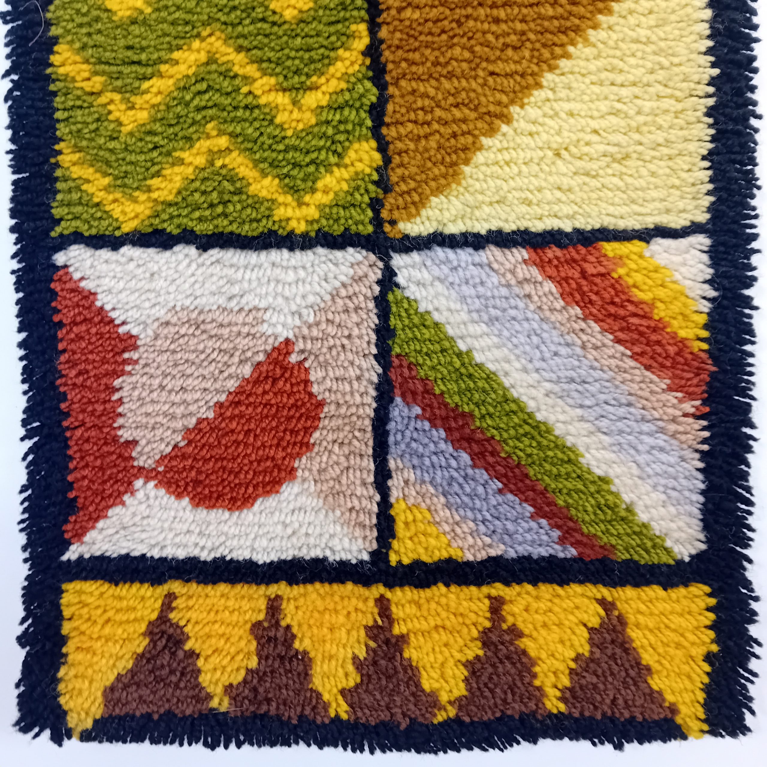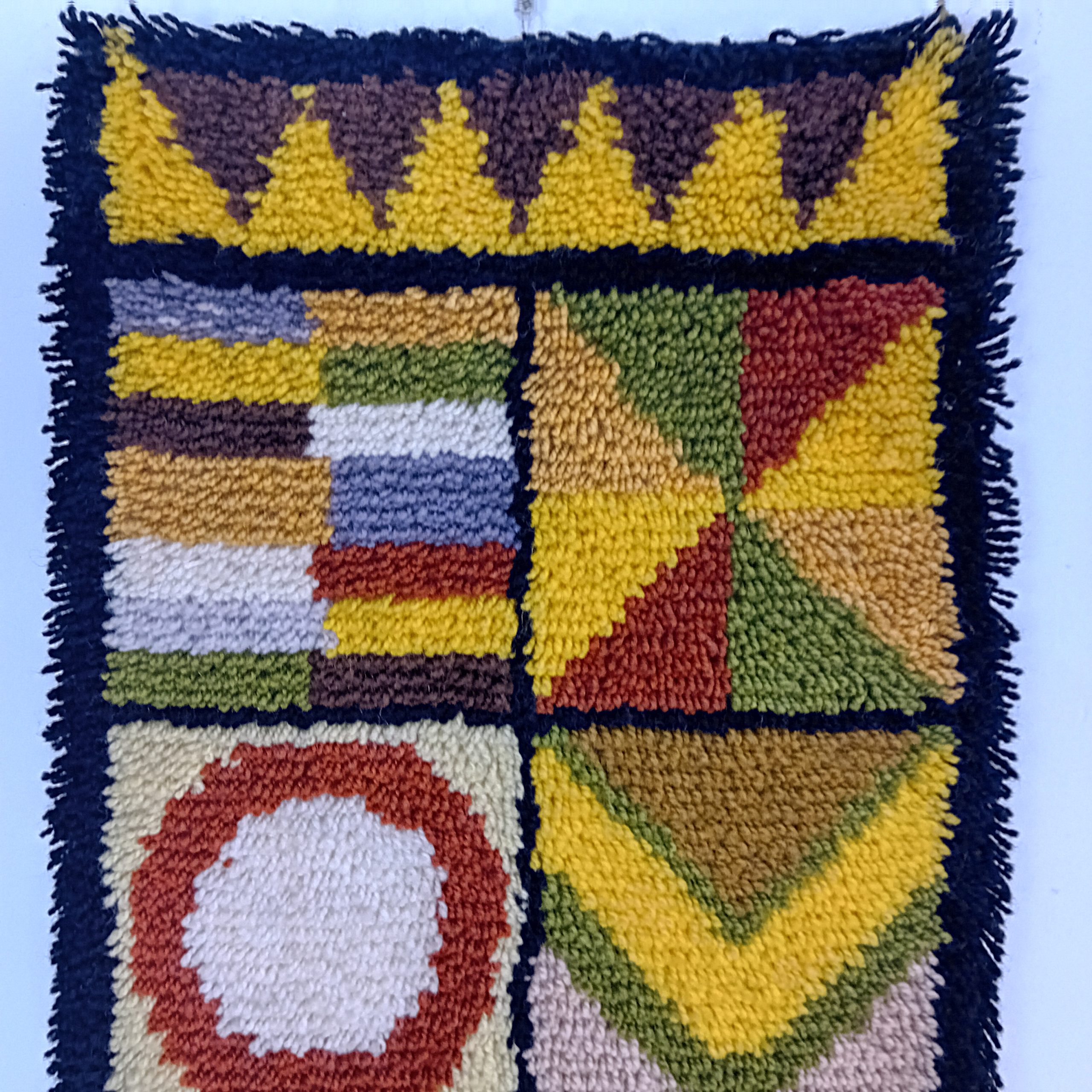 Une belle tapisserie Vintage aux couleurs marrons, jaunes, vertes et beiges.