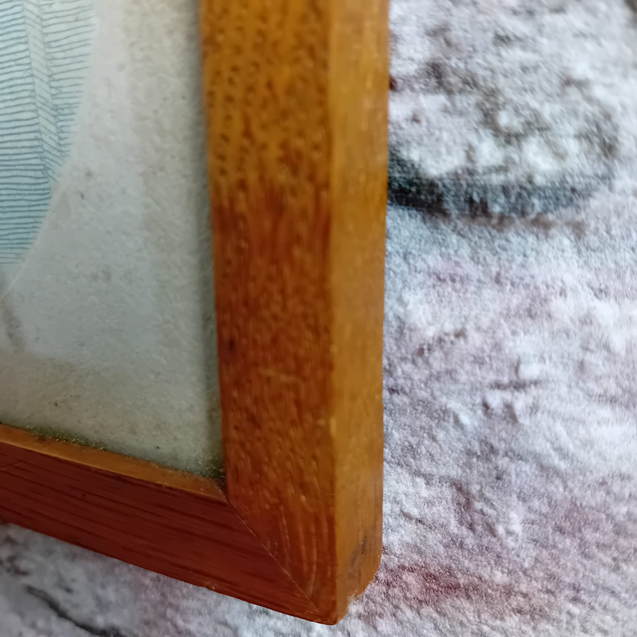 Joli cadre en bois naturel du fabricant Ernest Wheatley Picture Framer London.