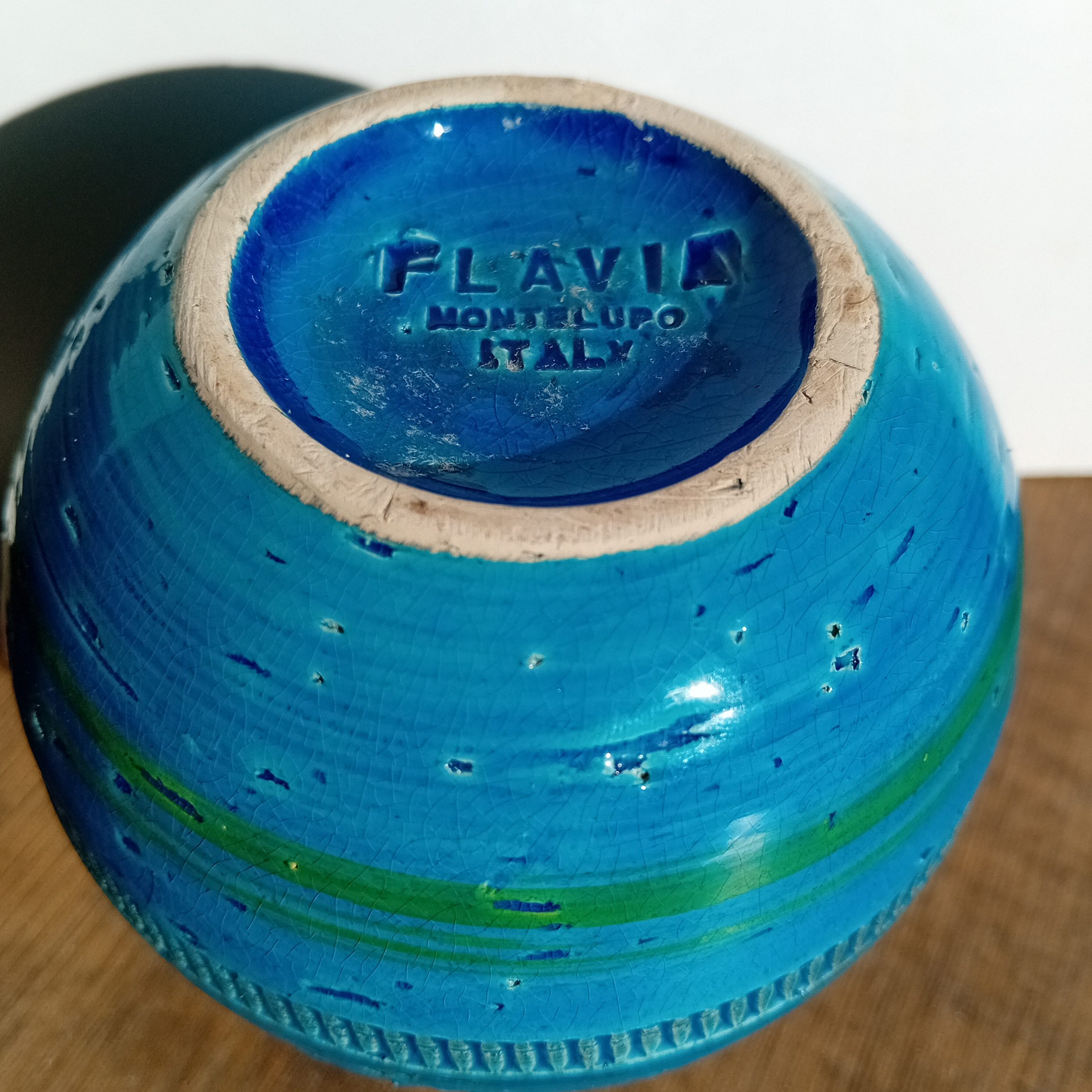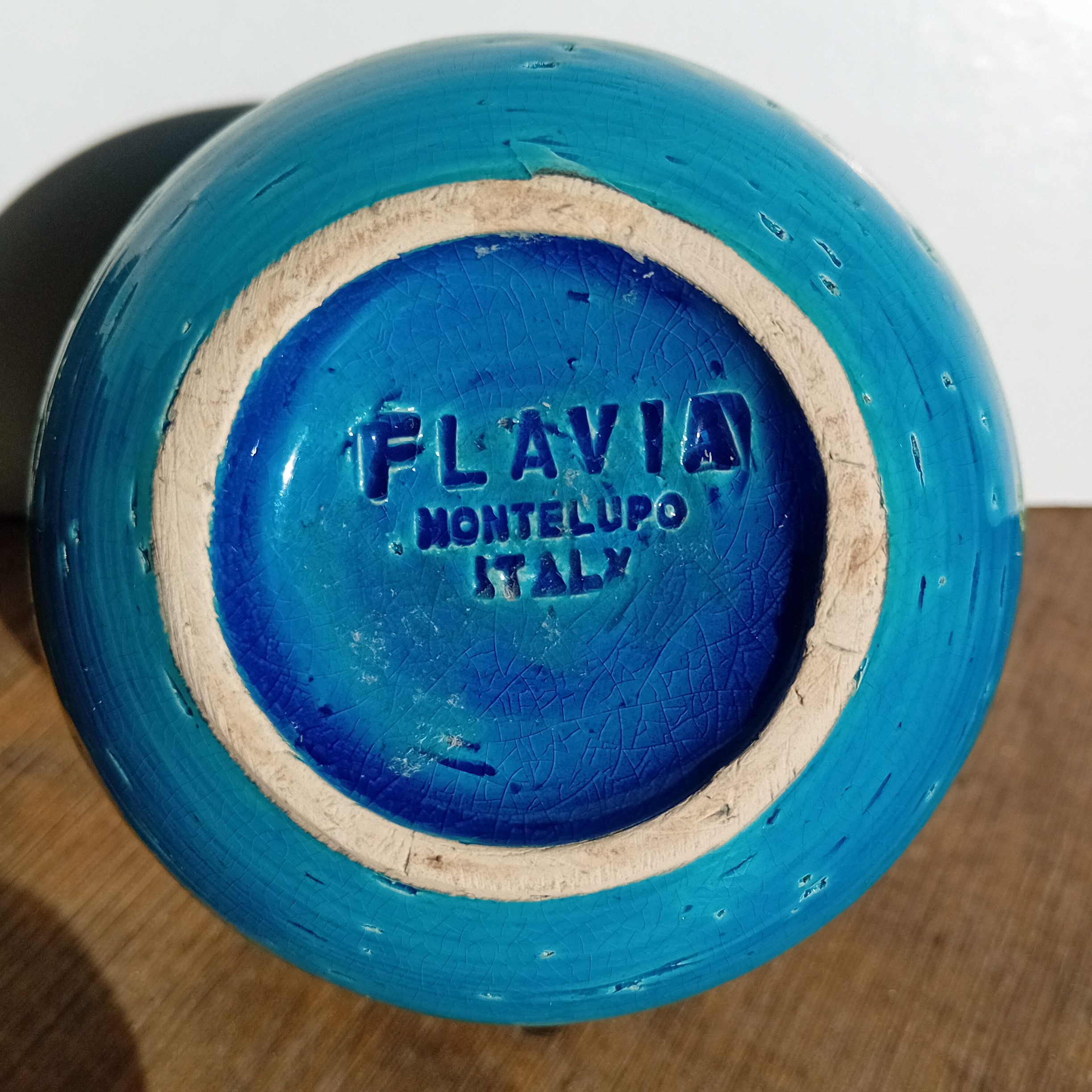 Le vase porte sous sa base la signature moulée Flavia – Montelupo – Italy, garantissant son authenticité et son origine.