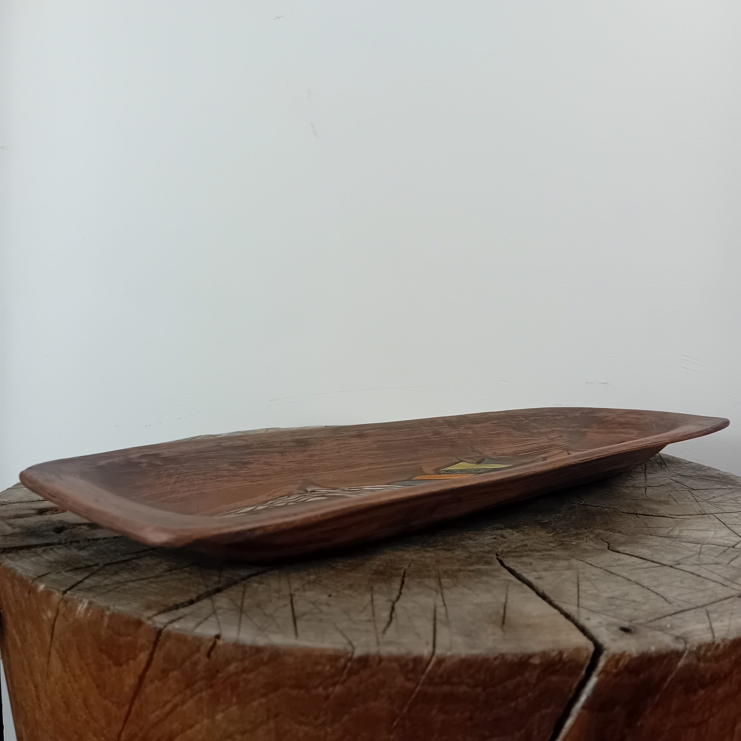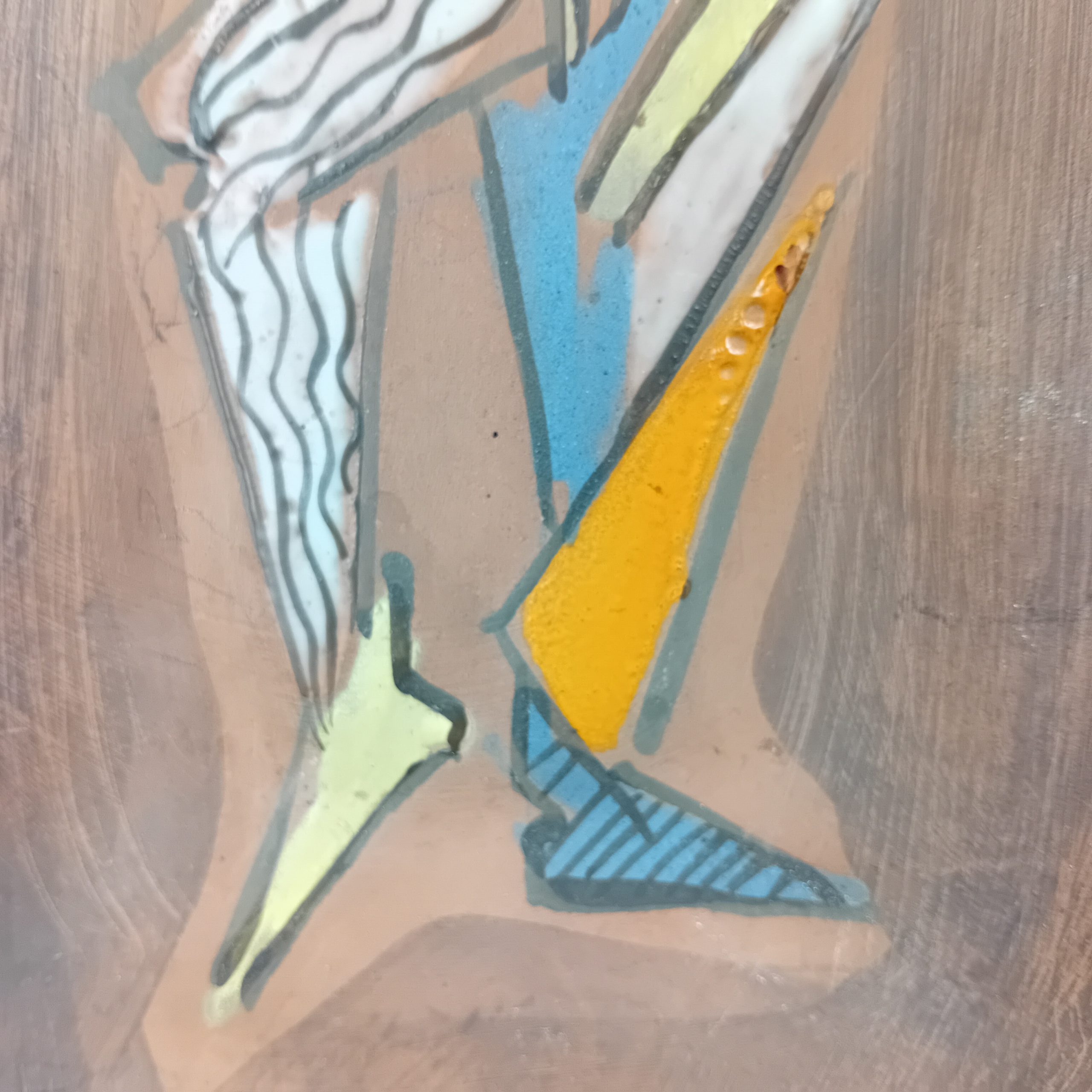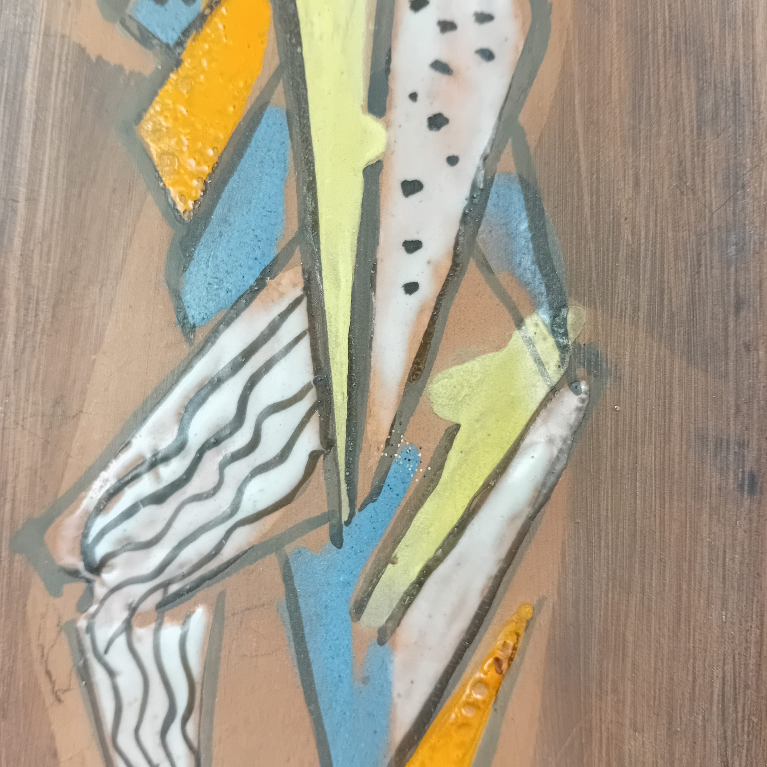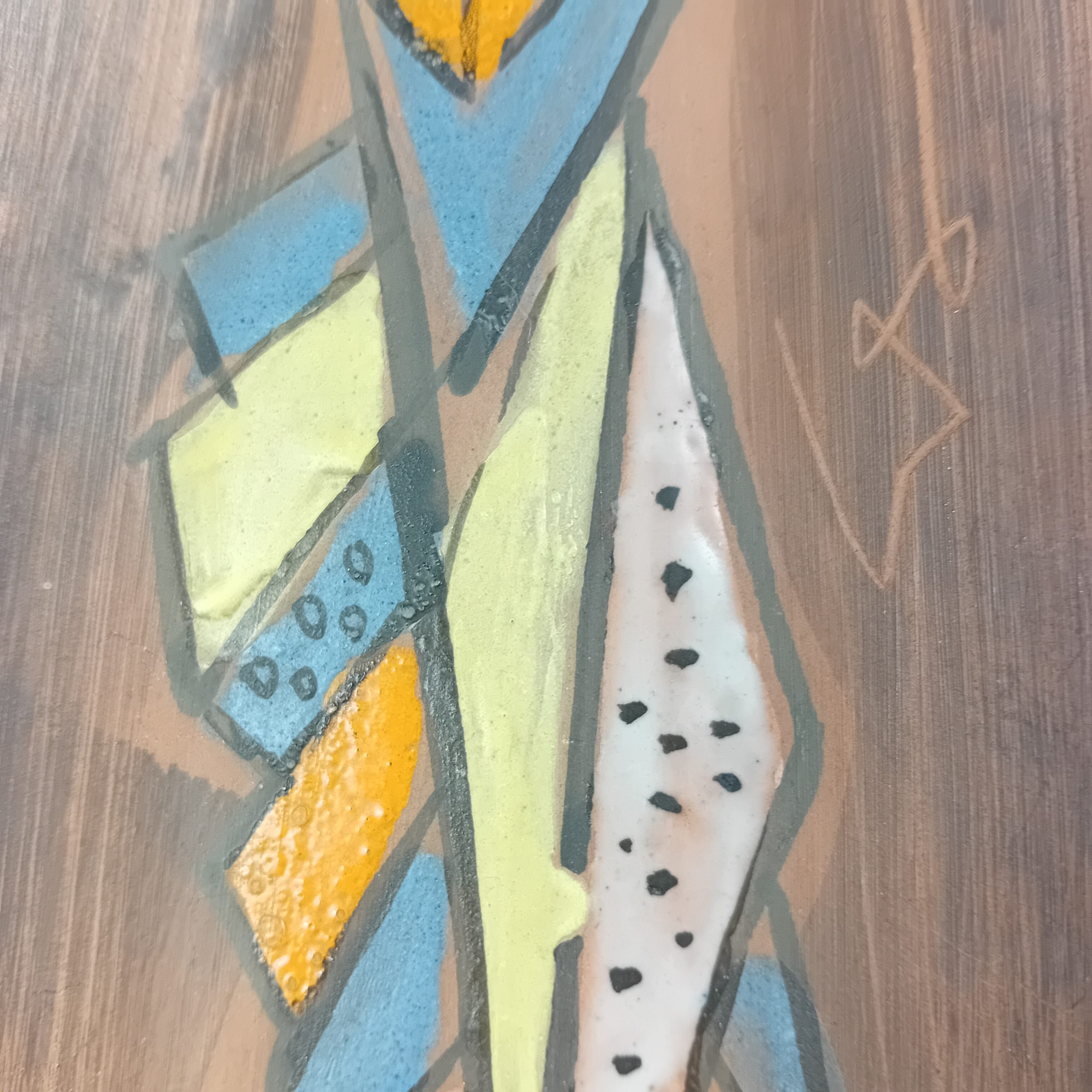 Un long vide poche en céramique avec décor de personnage cubiste émaillé.